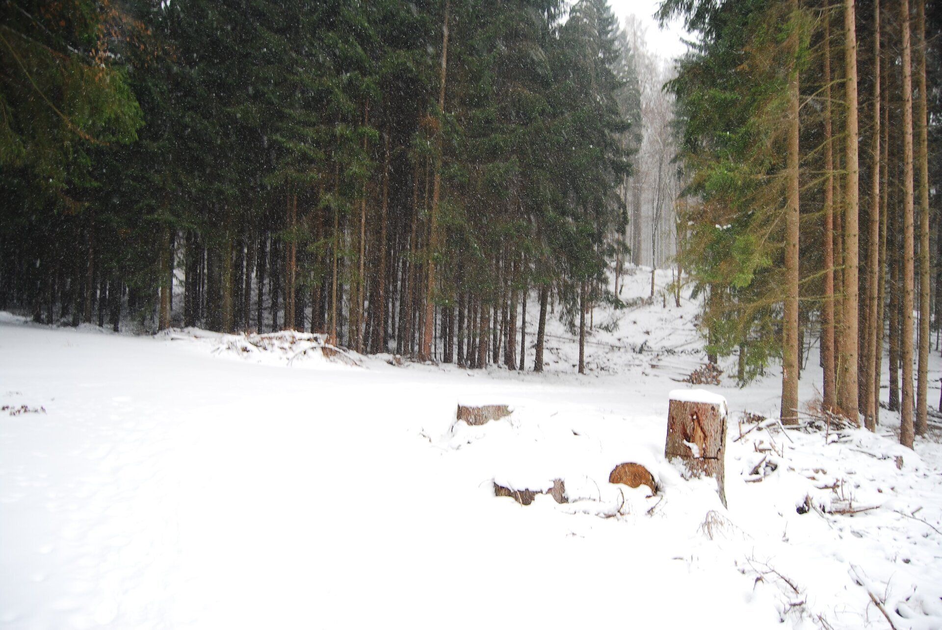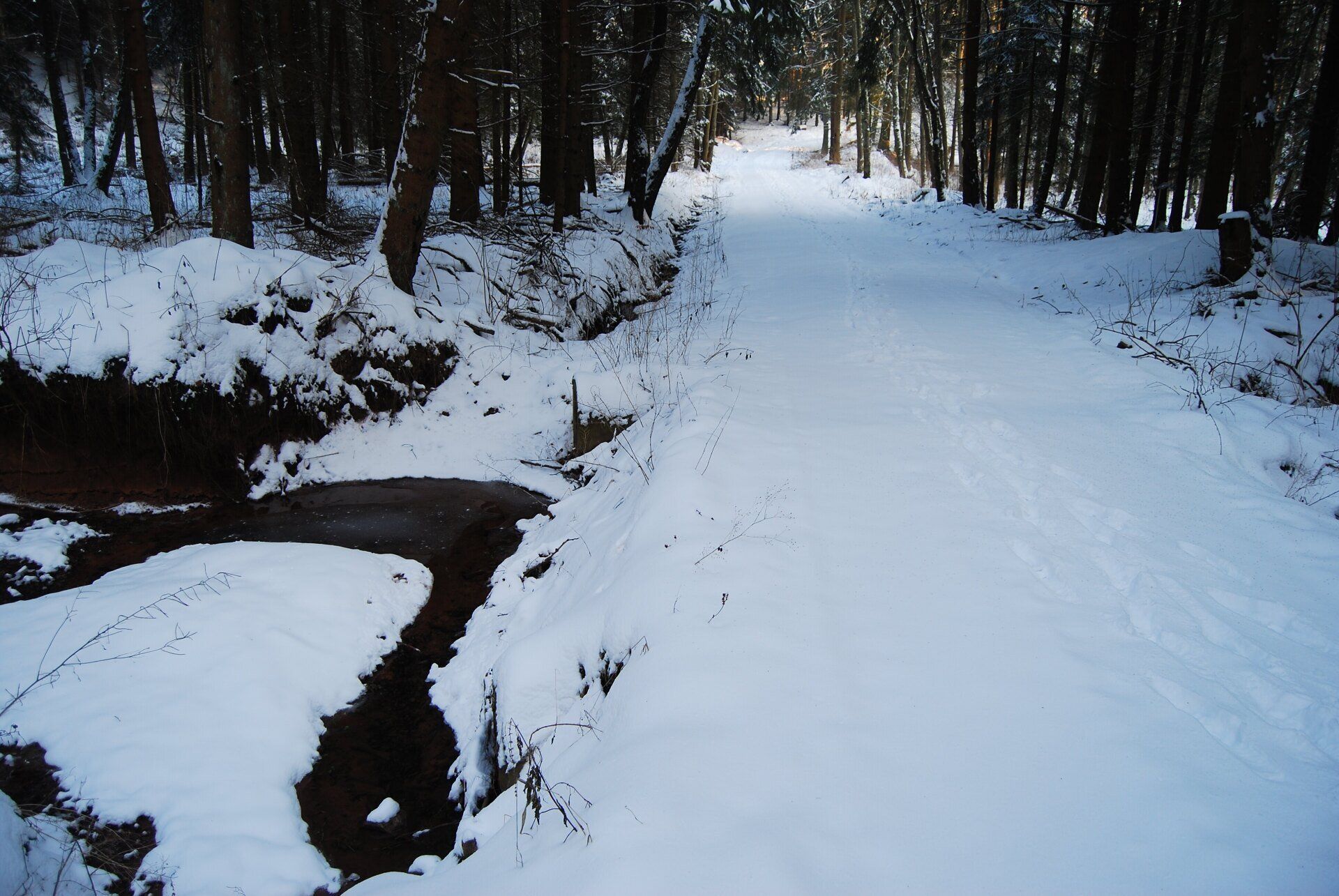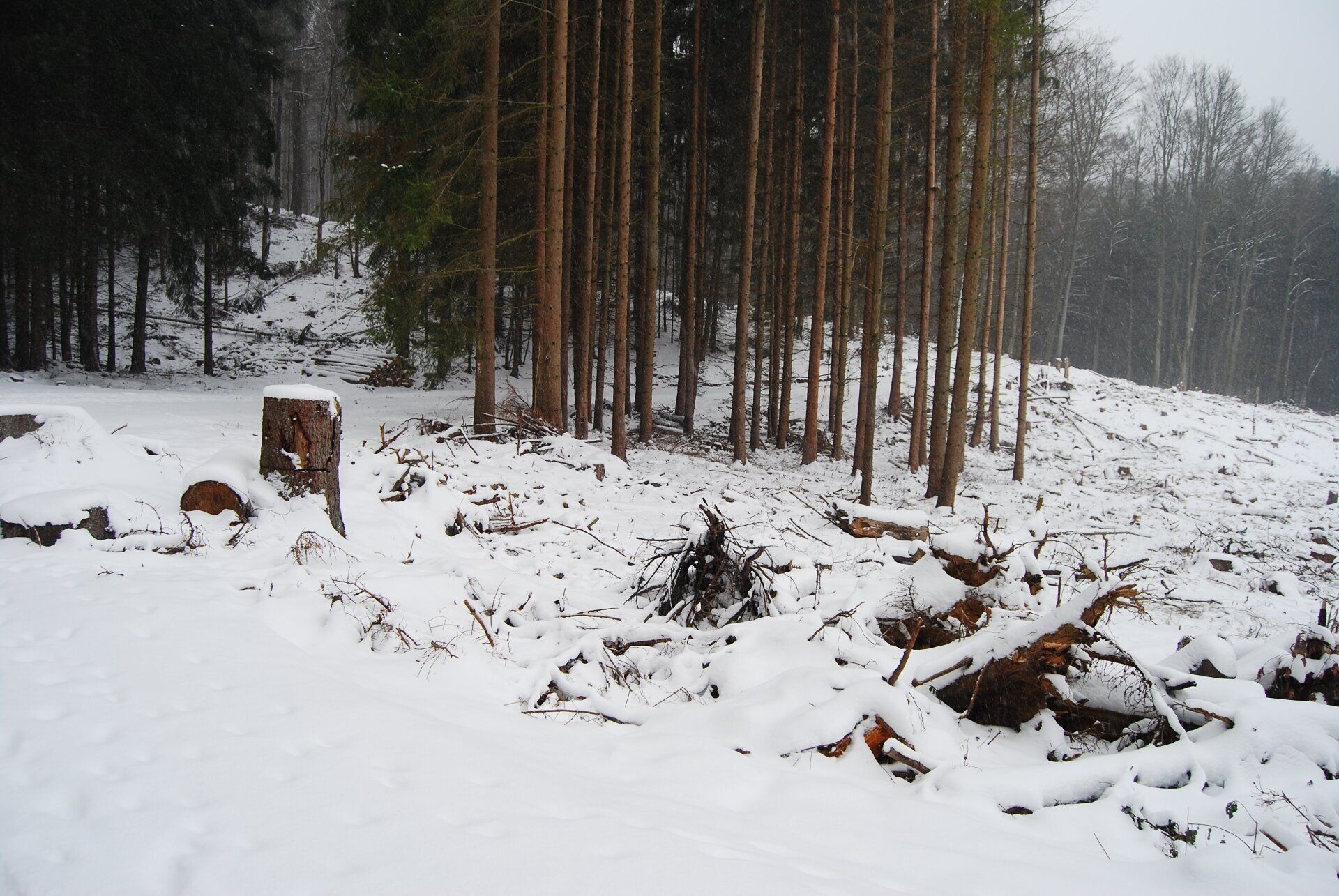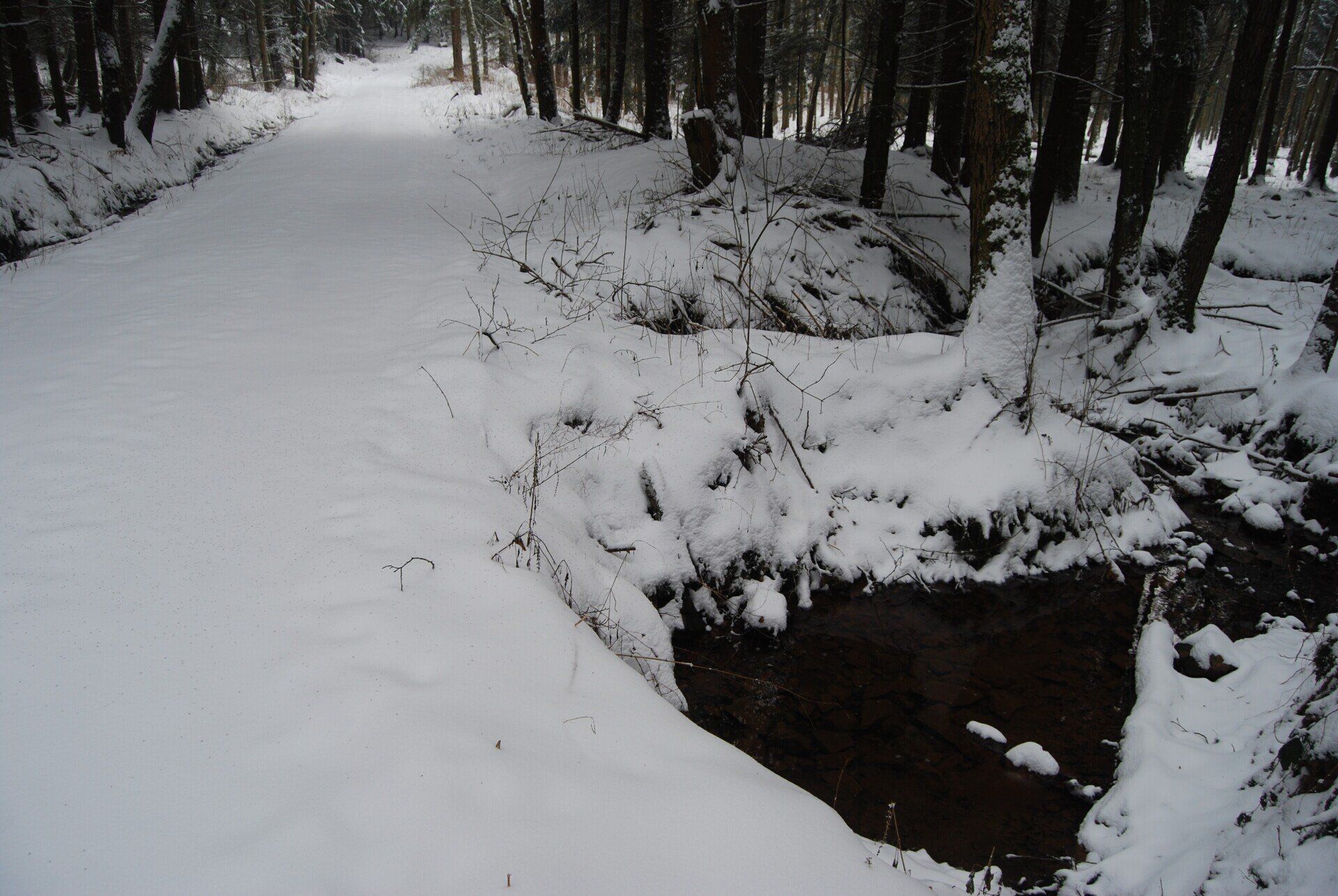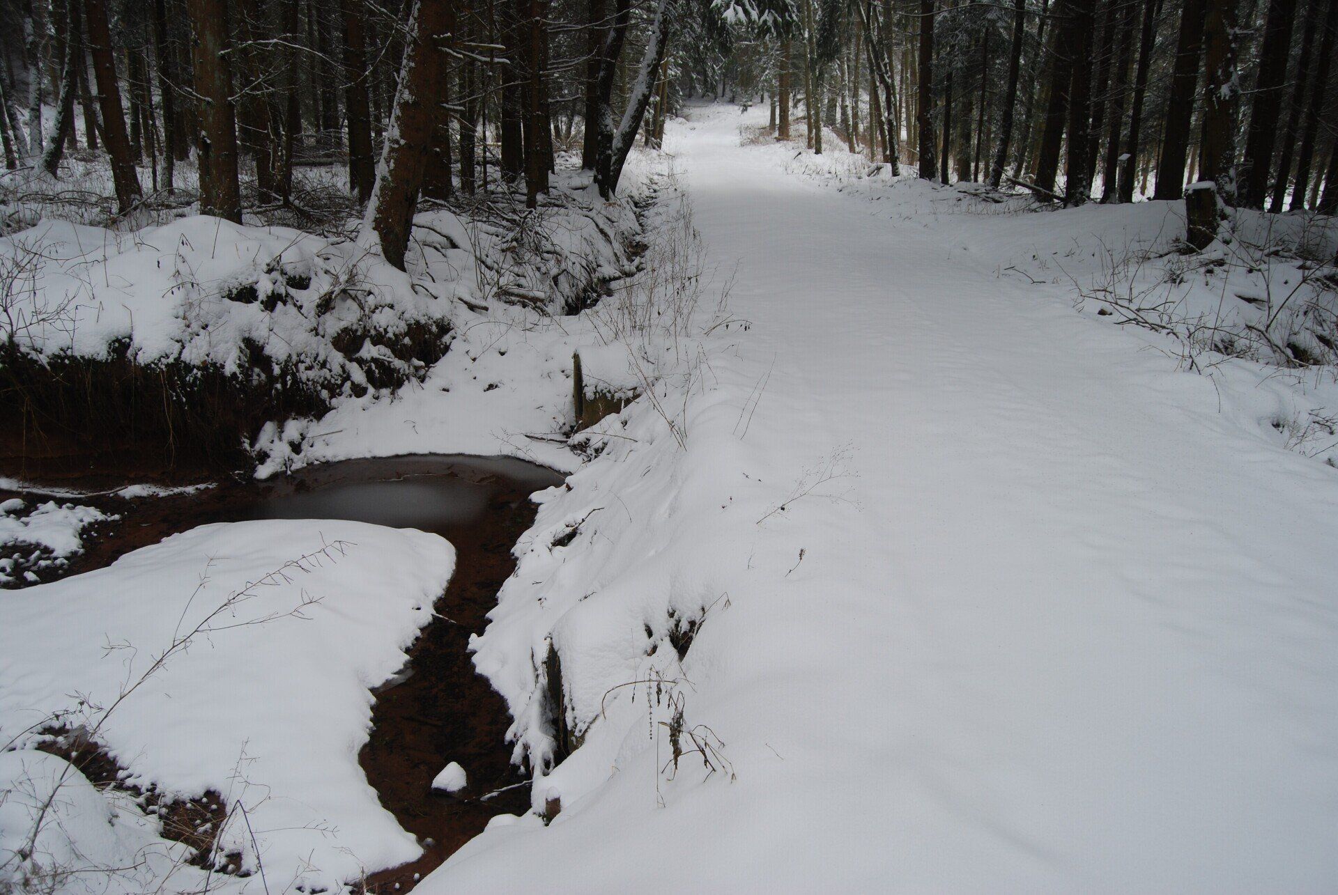 Der Fichtenwald rechts entlang des Tiefenbach wie im Foto vom 29 Januar 2010 zu sehen, der steht heute August 2021 nicht mehr.Kahlschlag Kahlschlag war da.