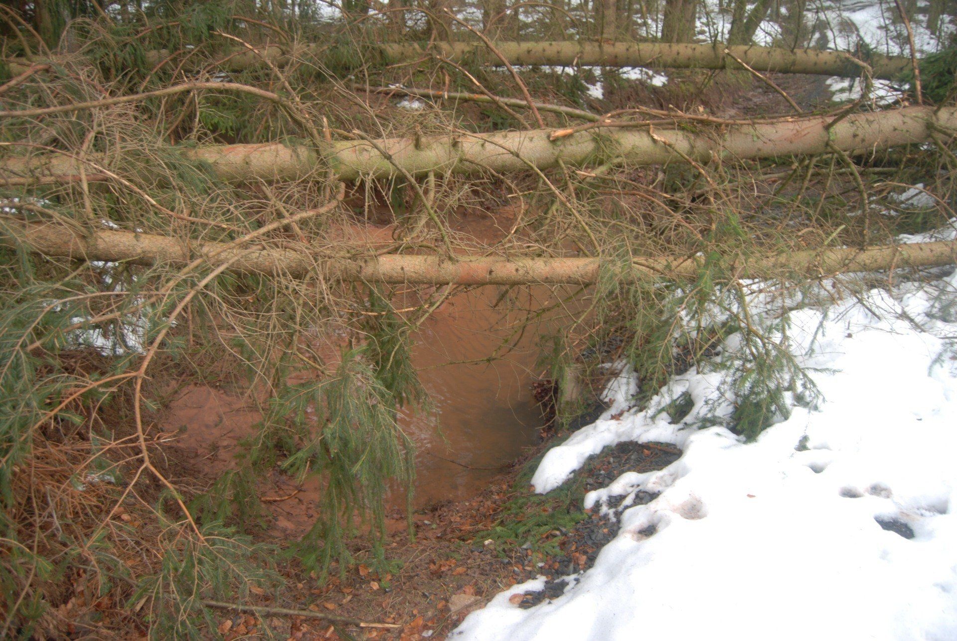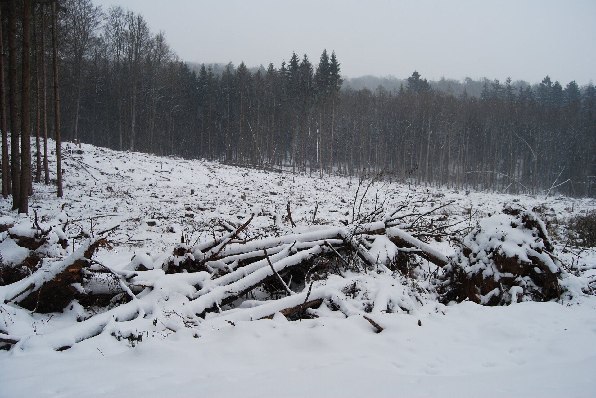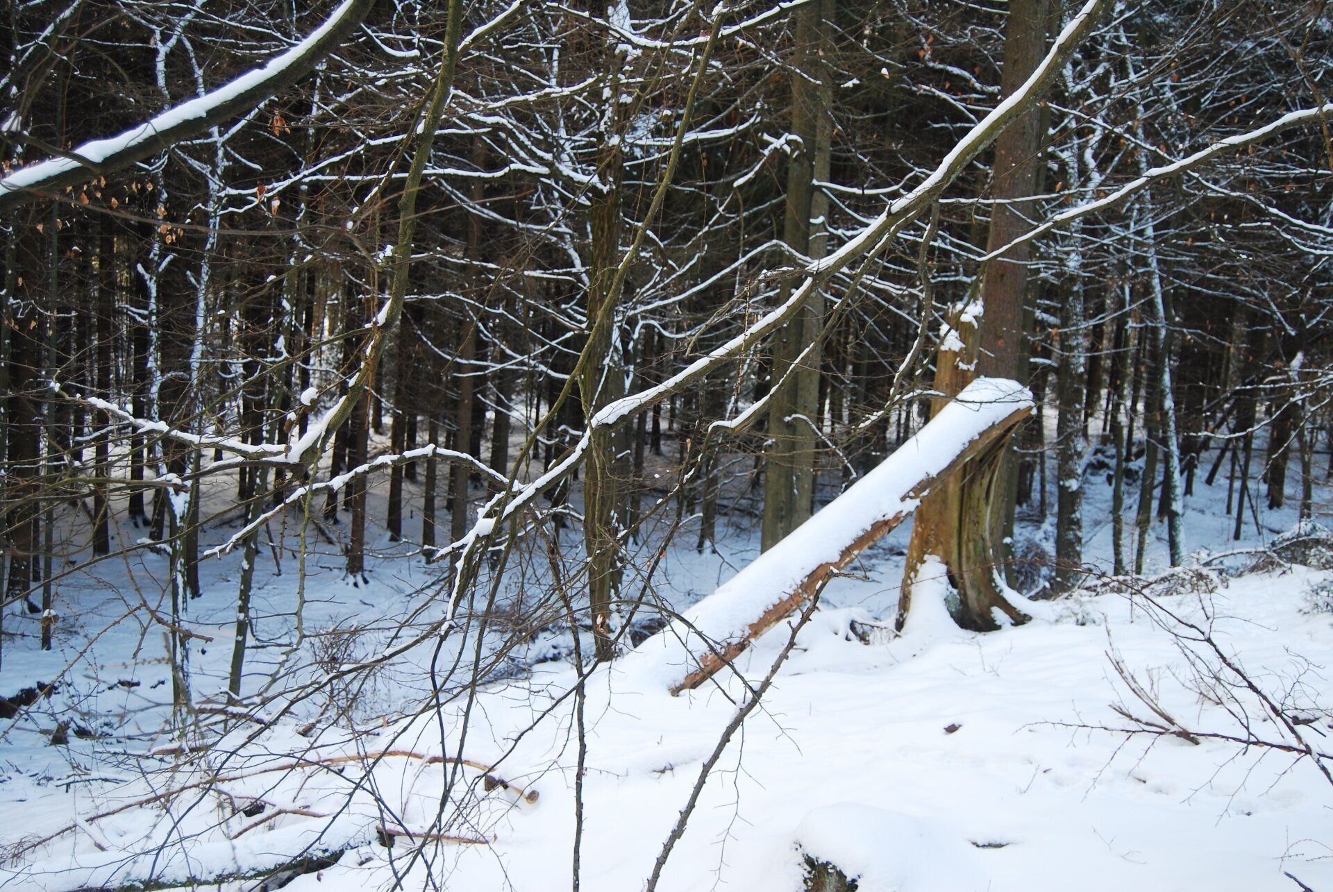 An diesem Tag liegen dann einige Winterstürme später die Flachwurzler die Schnellen die Gierigen GewinnEule Nachteulen der GeldGierWissenschaftler die Fichten queeeeer über dem Durchfluss des Tiefenbachs zum Waldschnepfen Refugium