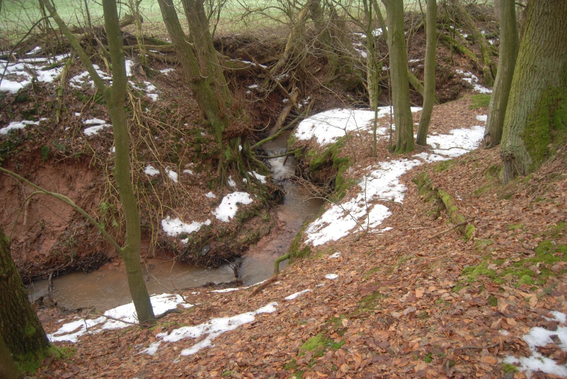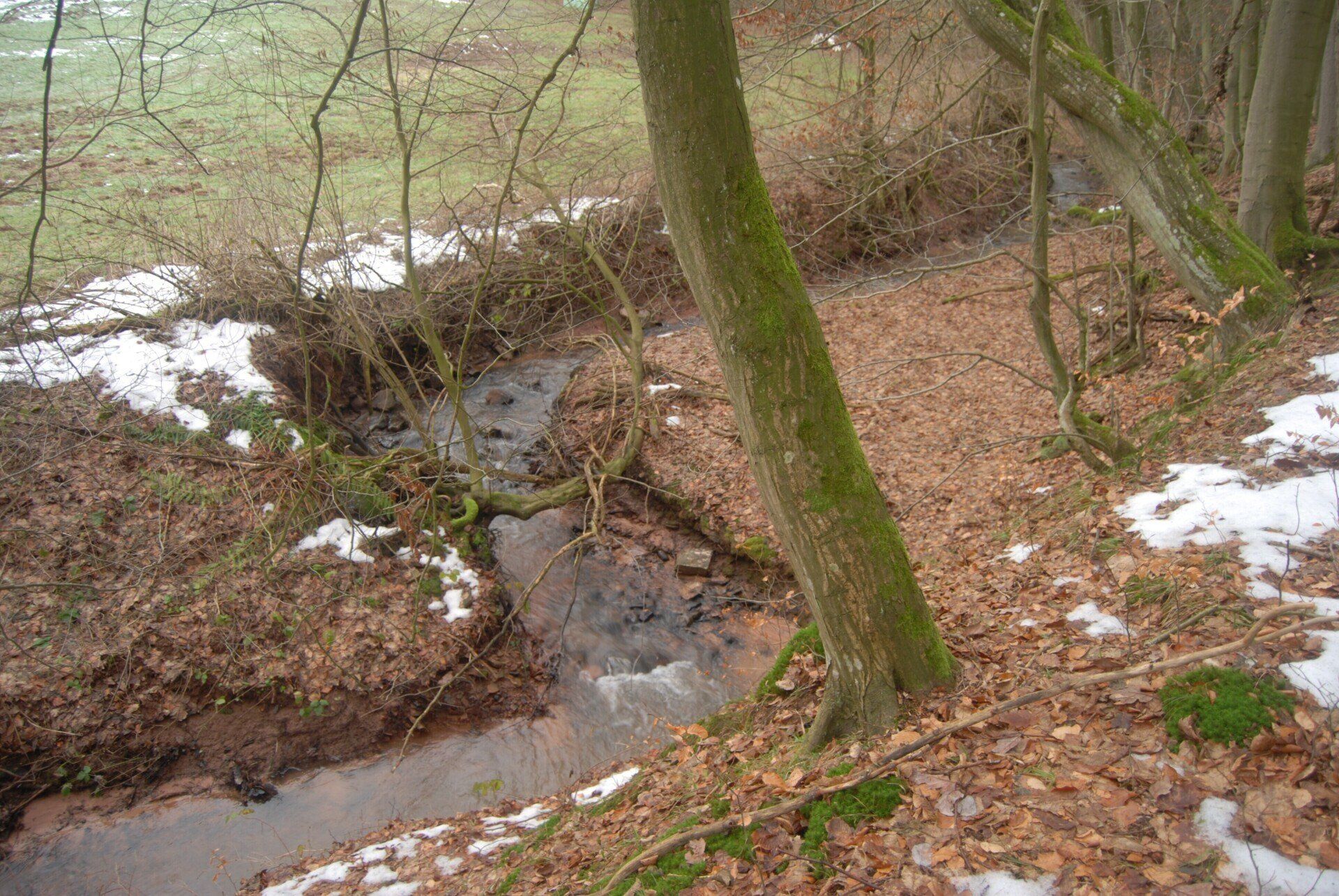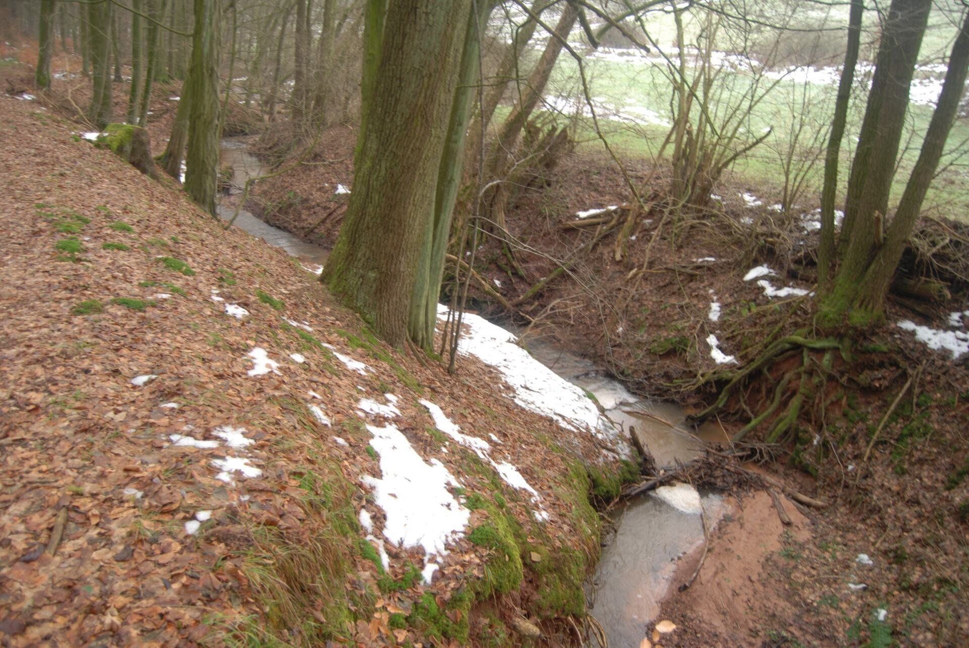 Links kommt der Tiefenbach von seiner Quellregion an der Schnitzer Eiche.