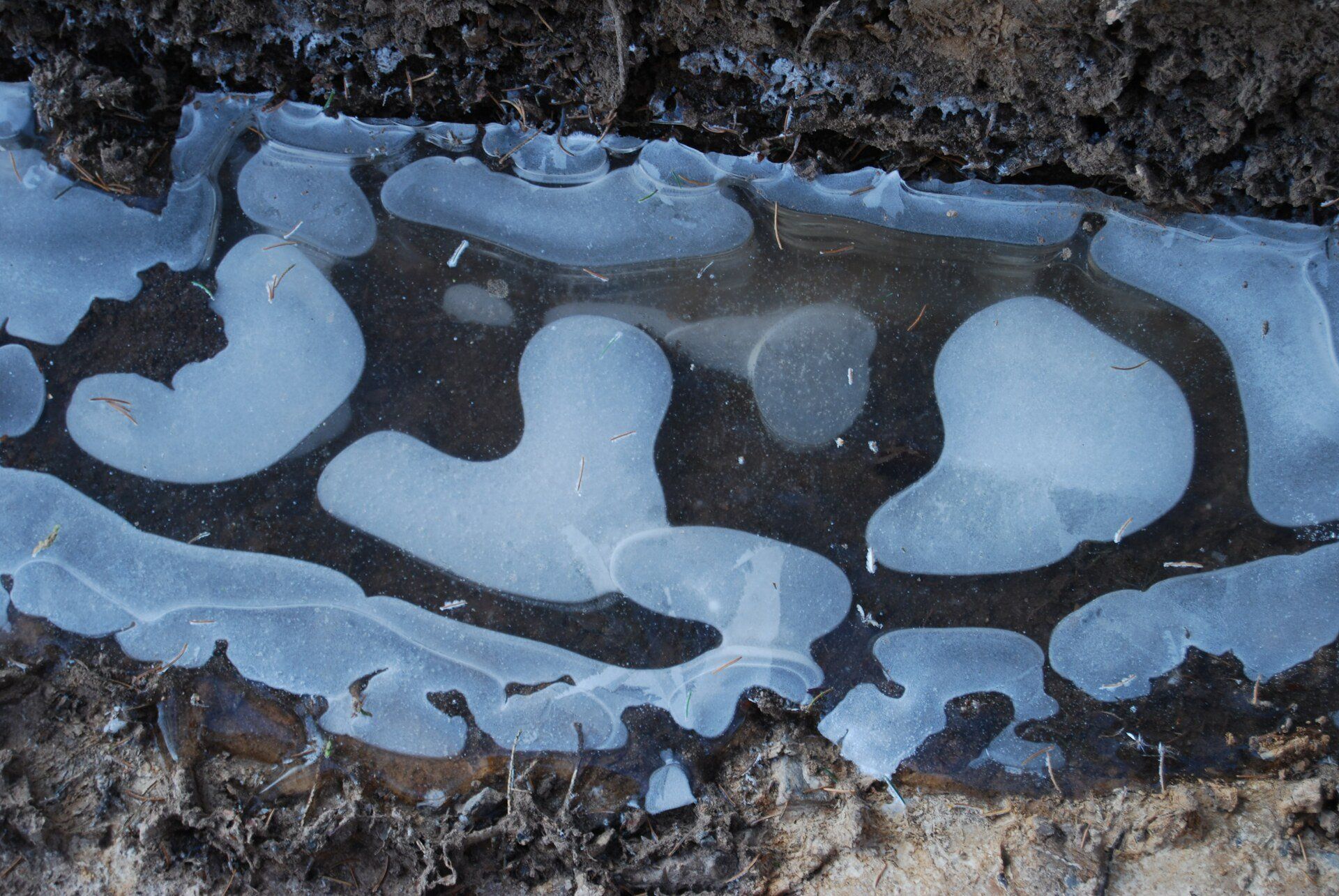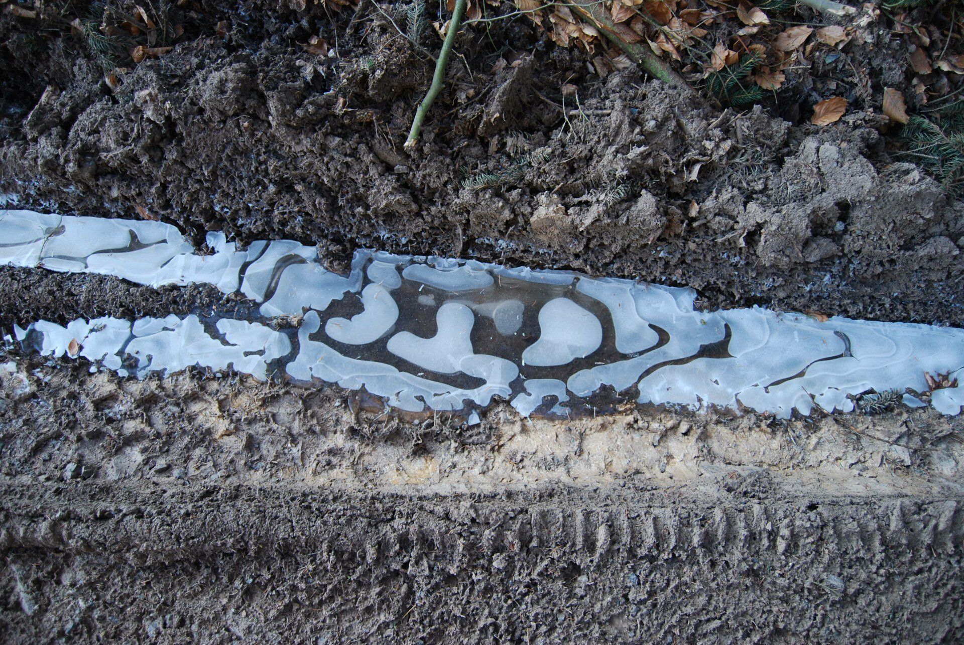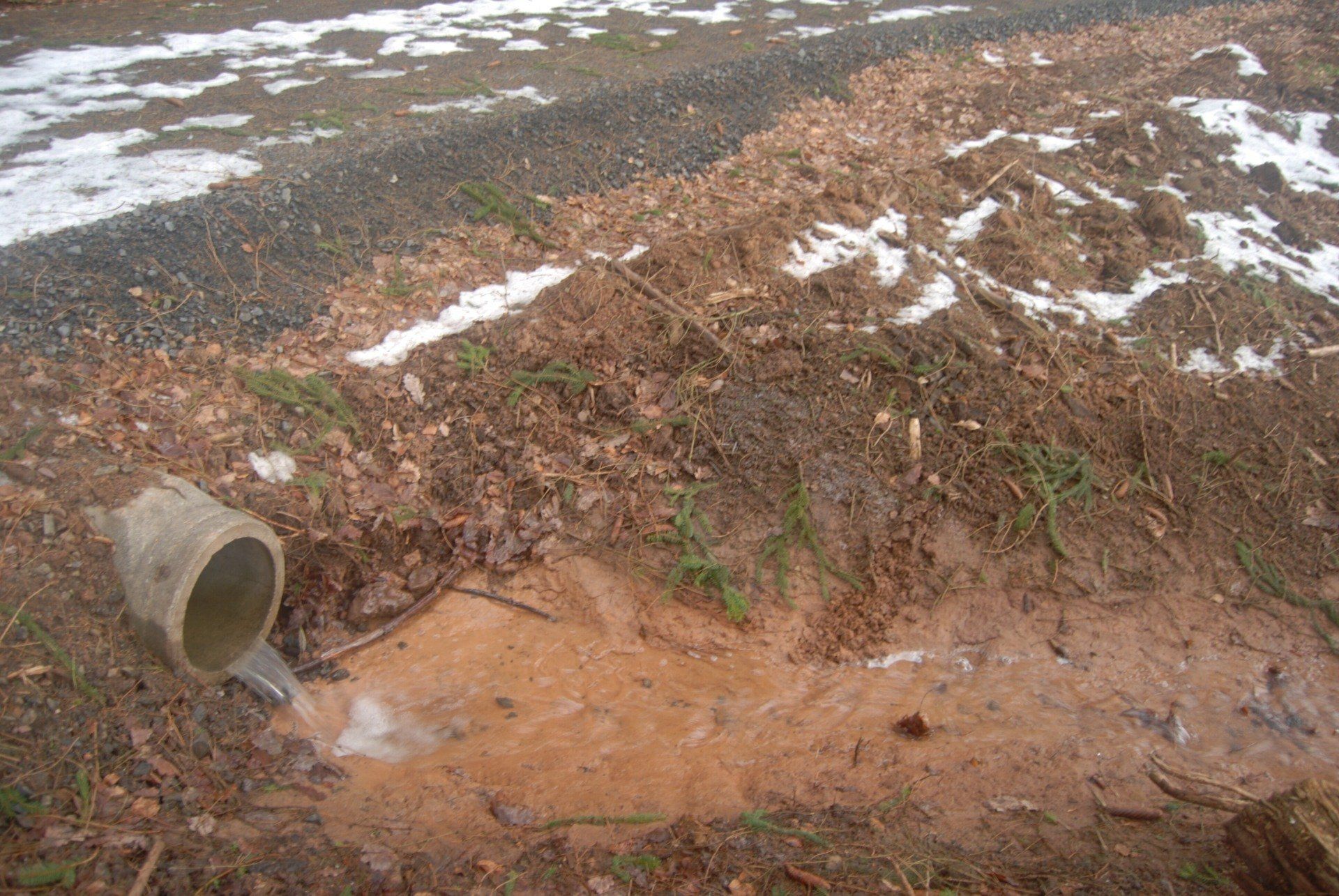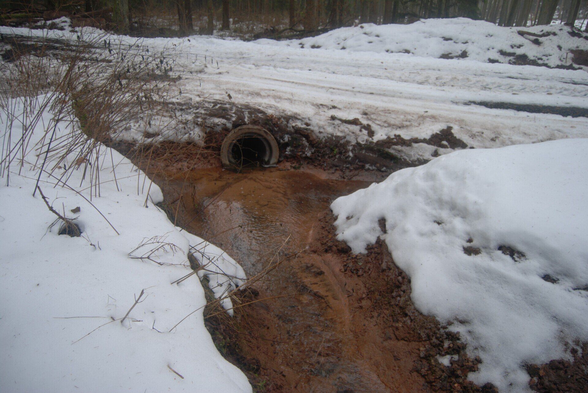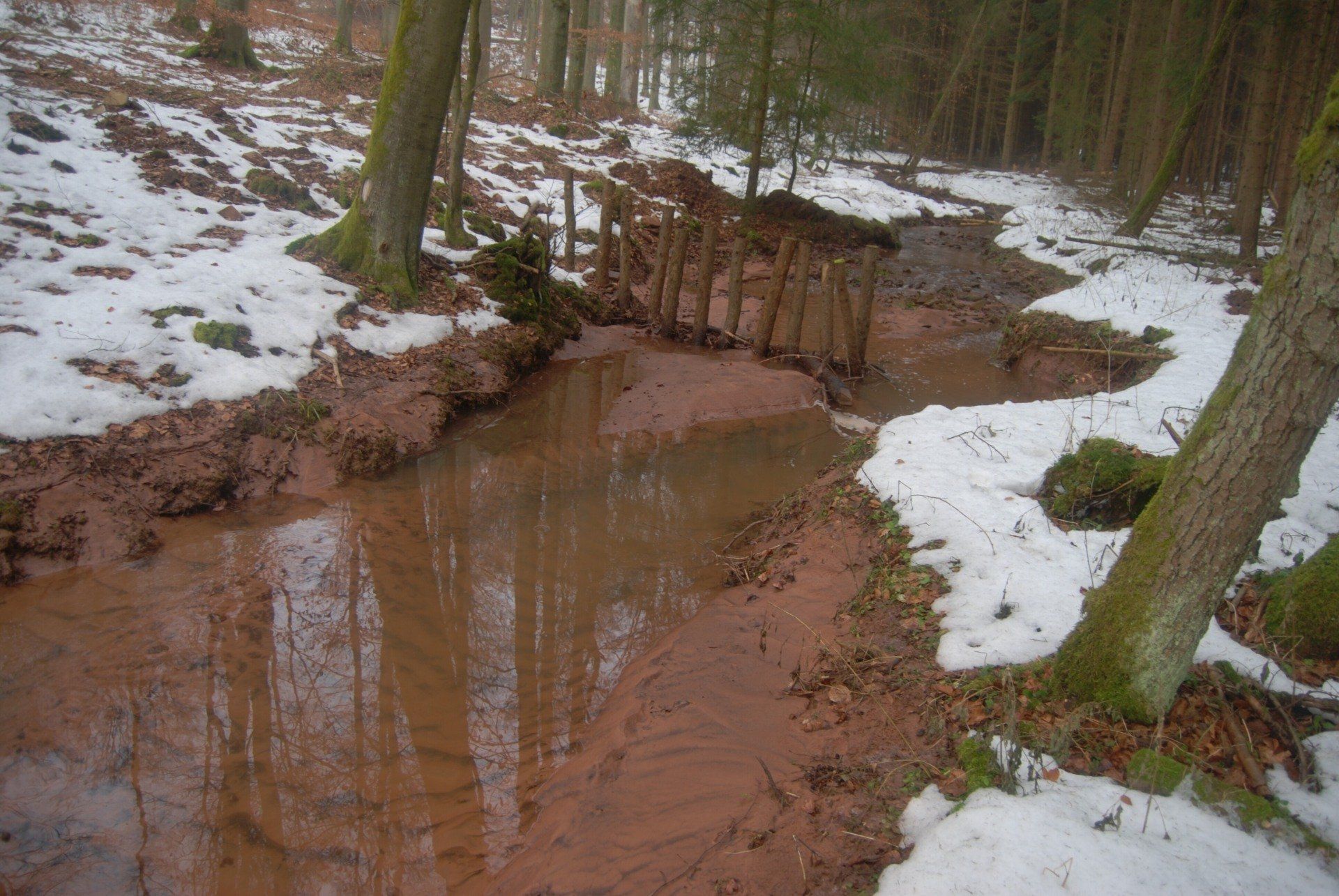 Er hat hier zwei Durchflüsse unter den Waldweg.