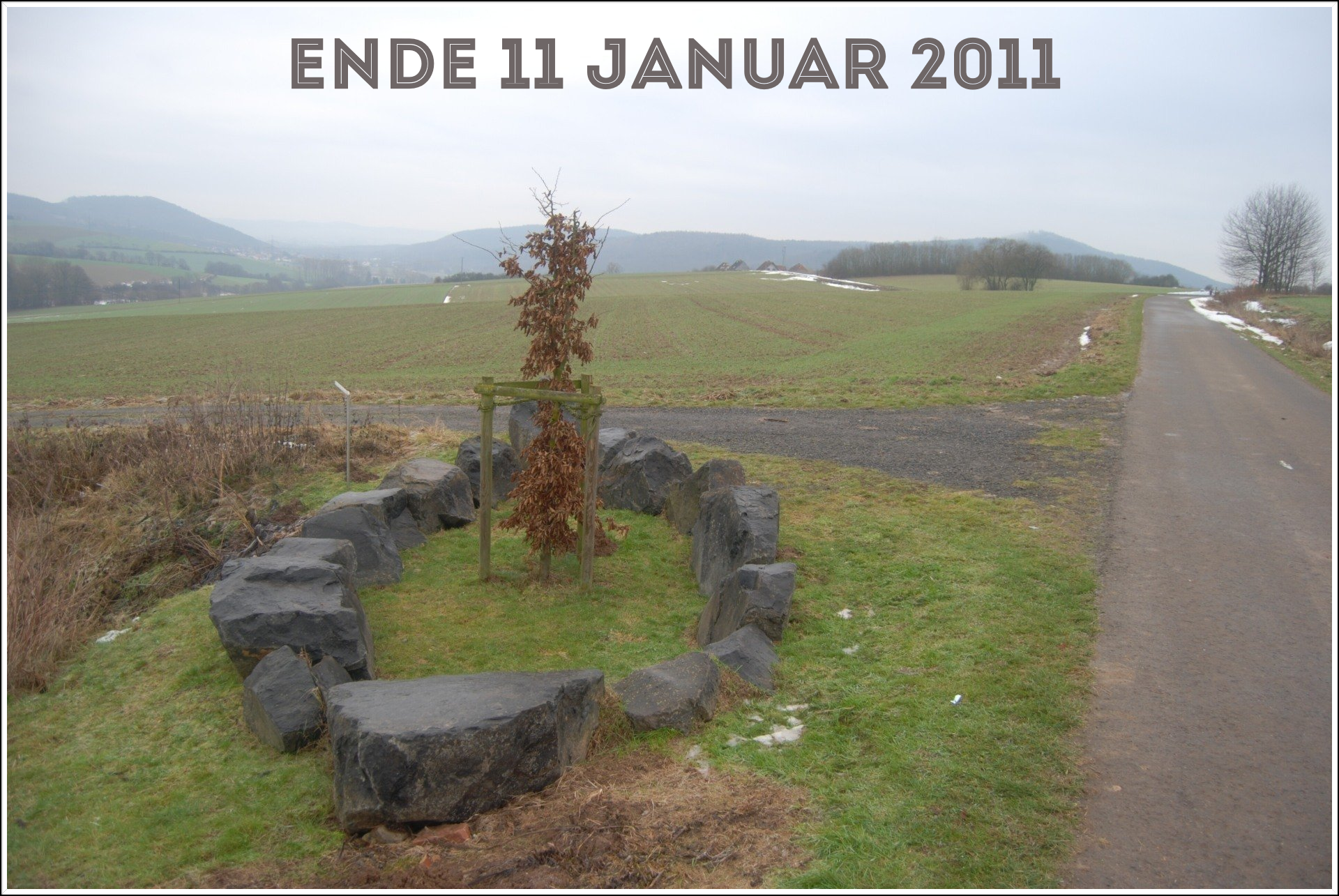 Die leicht blau getönten Steine symbolisieren ein Schiff mit einem lebendigen Baum als Segel, das scheinbar über die Wogen der Landschaft gleitet. Die Farbe Blau symbolisiert Weite, Himmel, Transzendenz. Ganz in der Nähe befindet sich die Sternwarte, mit der ein Blick in den Kosmos mit seinen „Himmelsschiffen“ möglich ist.