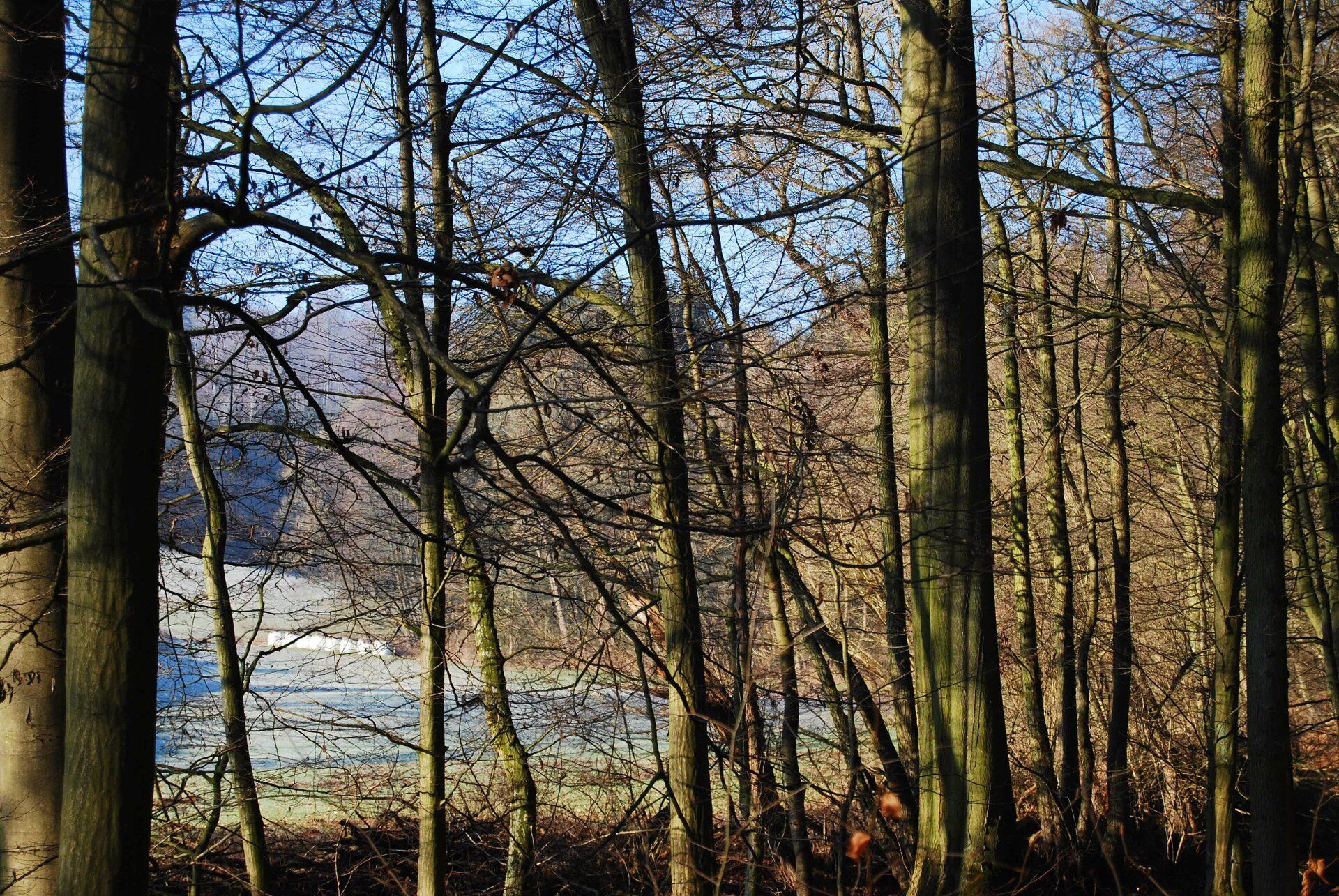Ab und an rasen einige Rehe vom Waldhang herunter oder aber sie kommen von der Wiese links und wollen in den Wald. Hier kreiste im Frühjahr für drei Jahre ein Schwarzstorch