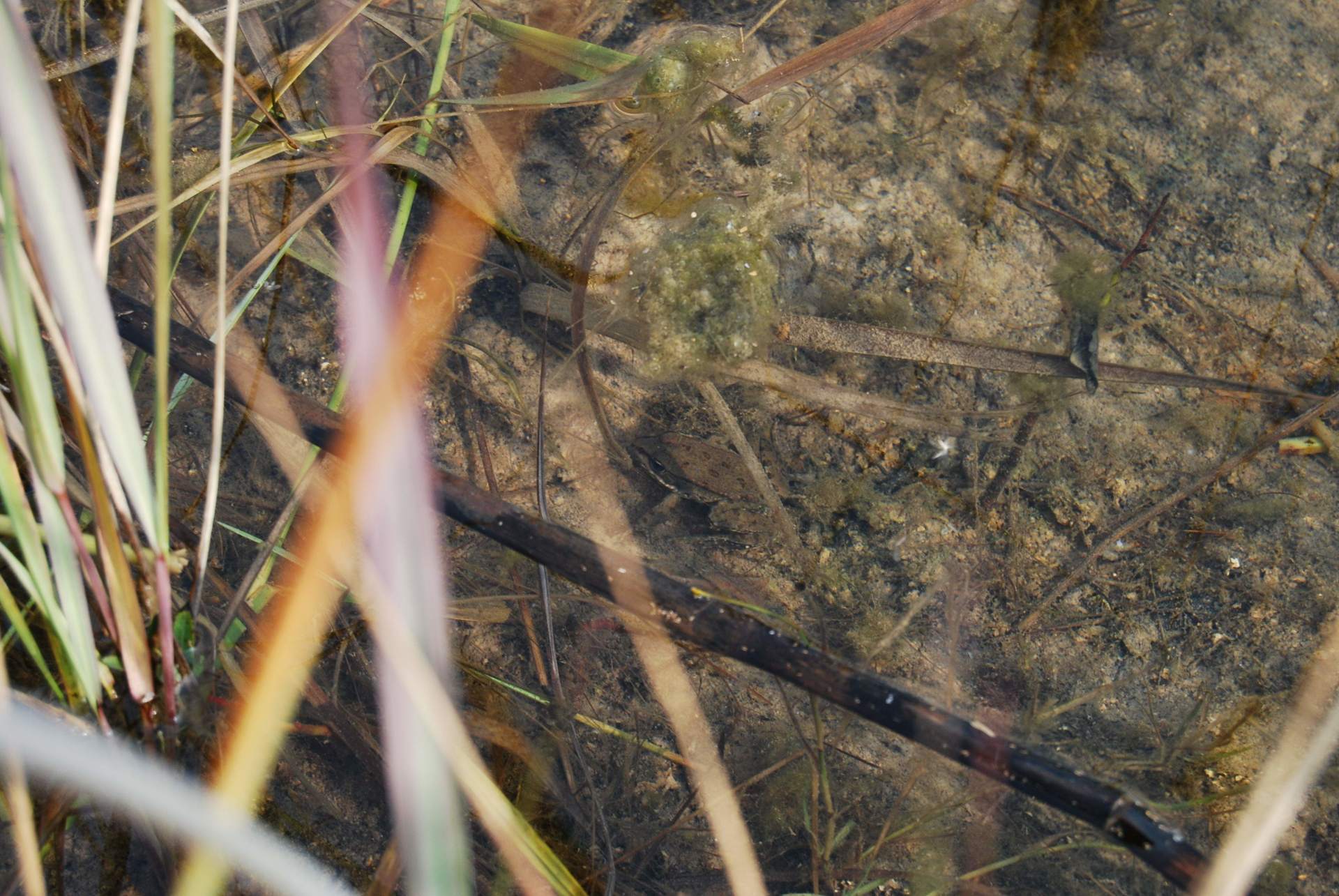 In den überschwemmten Grasflächen gab es die ersten Kaulquappen. Die gibt es im Singliser See noch nicht. Und das Froschkonzert am wachsenden GombethSee wurde von Jahr zu Jahr intensiver. Und das war natürlich für die GrauReiher und Silberreiher sozusagen der Weckruf sich hier an diesem wachsenden See mal nach Froschschenkel umzusehen.