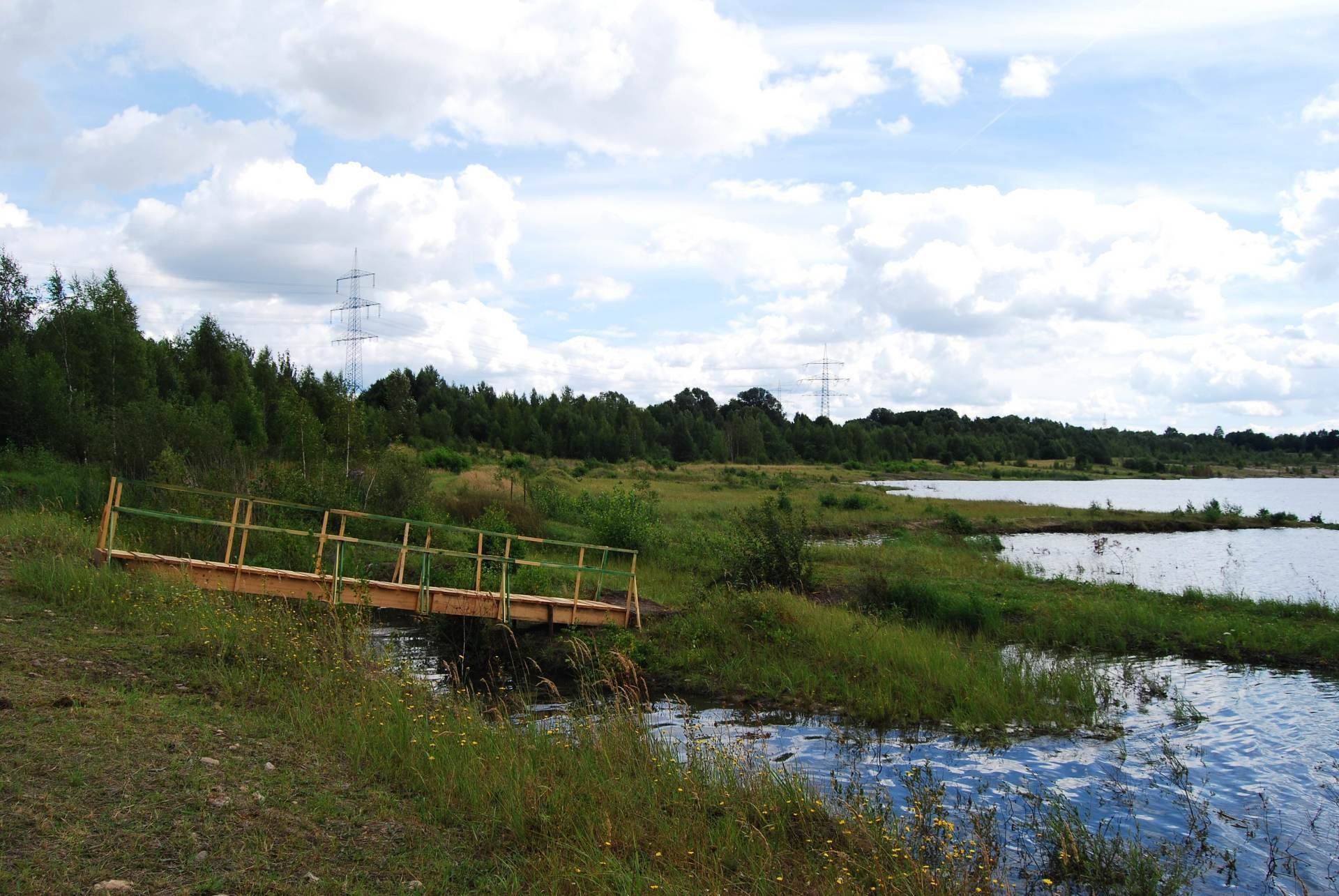 Oben, der Blick von der OstSeite zur WestSeite des wachsenden GombethSees.Und dann stand eines Tages diese neugebaute Holzbrücke dort.Sie gehörte zu einem Projekt das Kunst am Wasser zumindest in diese Richtung des Themas hieß, las ich später auf Hinweistafeln die dort