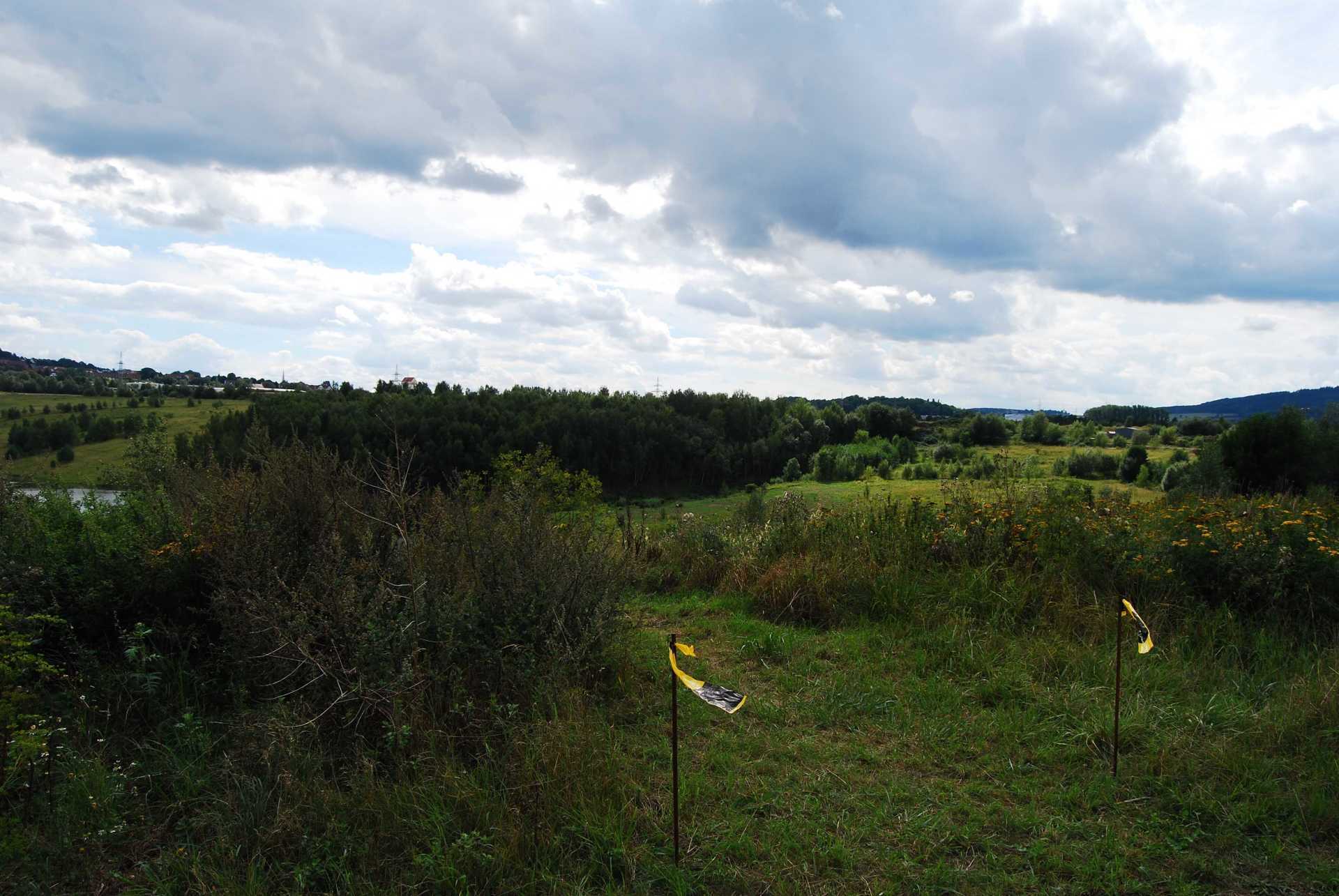 Das Birkenwäldchen mit vielen kleinen Schluchten in dem der Bussard viele Jahre brütete und einige Krähen. Und später war auch der Pirol dort zu hören, aber nur durchgangsweise. Das Birkenwäldchen ist in der WestSüdseite. Und wird von Jahr zu Jahr schrumpfen da die Bäume abgeholzt werden wenn das Wasser zu nahe kommt.