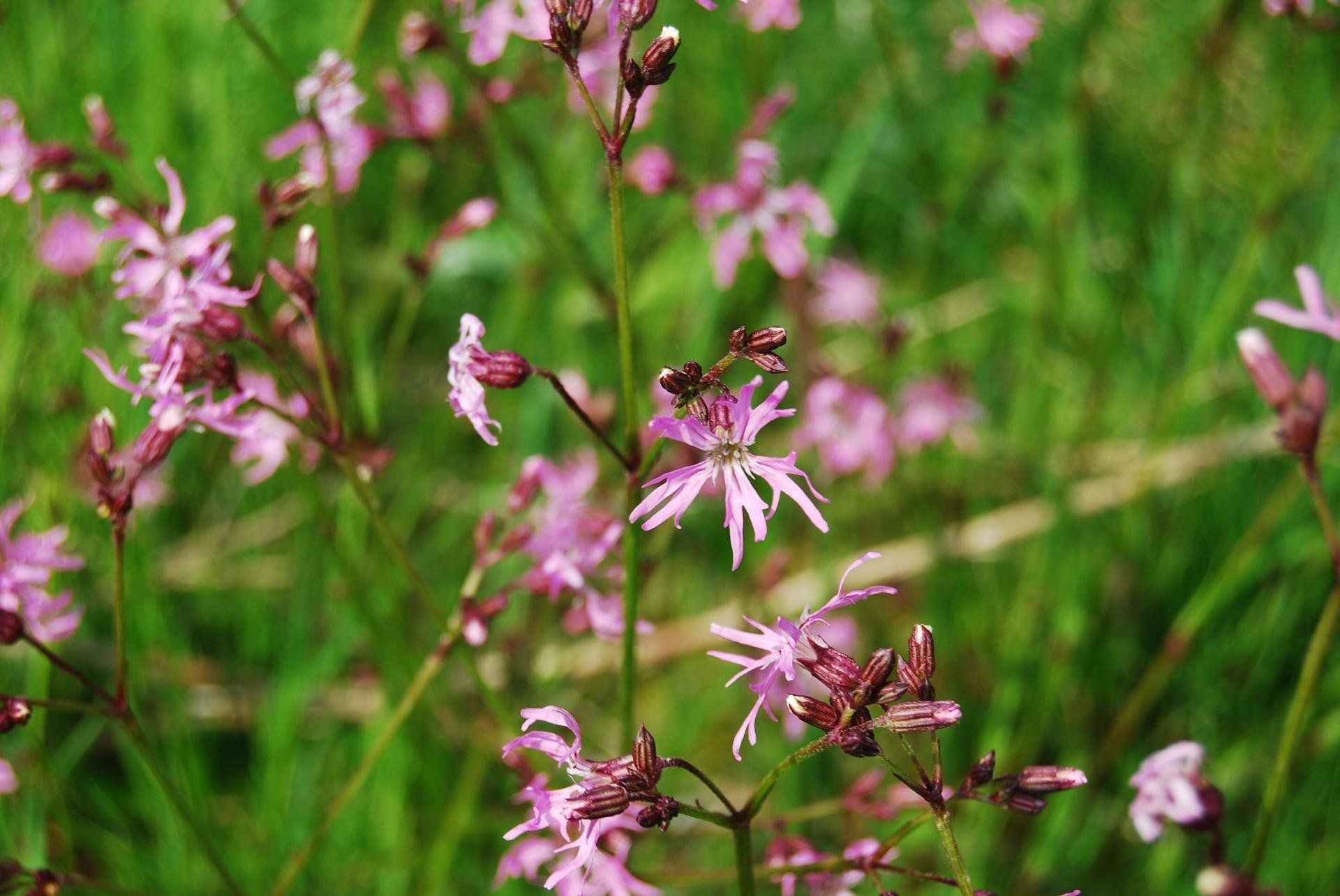 Kuckuckslichtnelke, wuchsen sehr oft an den Hängen und blühender Merrettich,oben.