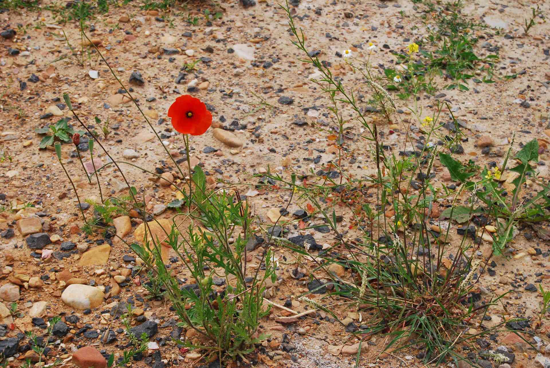 Spitzwegerich war auf dem kargen Erdboden nicht abwesend wenn er blühte.