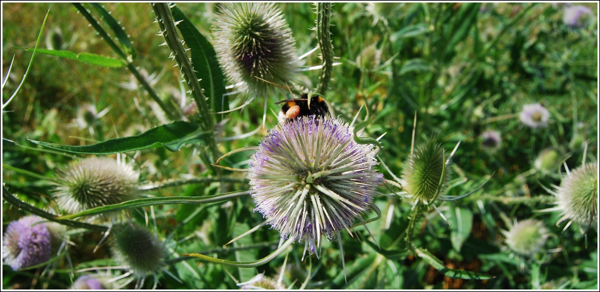 An der SüdSeite der Weg der unten am GombethSee vorbeiführte.Die Wilde Karde wuchs da groß und später voller HummelgesummelBlüten.