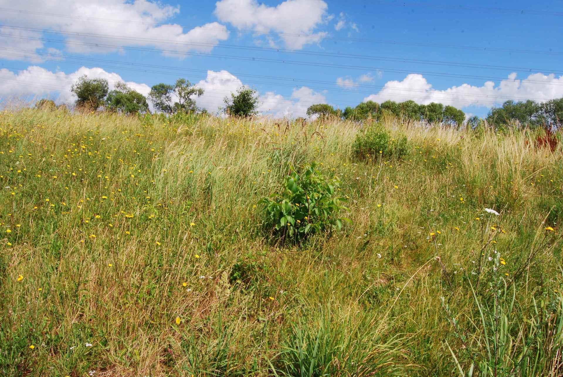 Damals setzten sie Bäume an diese trockene Stelle auf der SüdWestSeite. Die wurden kurzweilig als Aussichtsbaum von den durchziehenden Braunkehlchen benutzt, starben aber sehr schnell ab.
