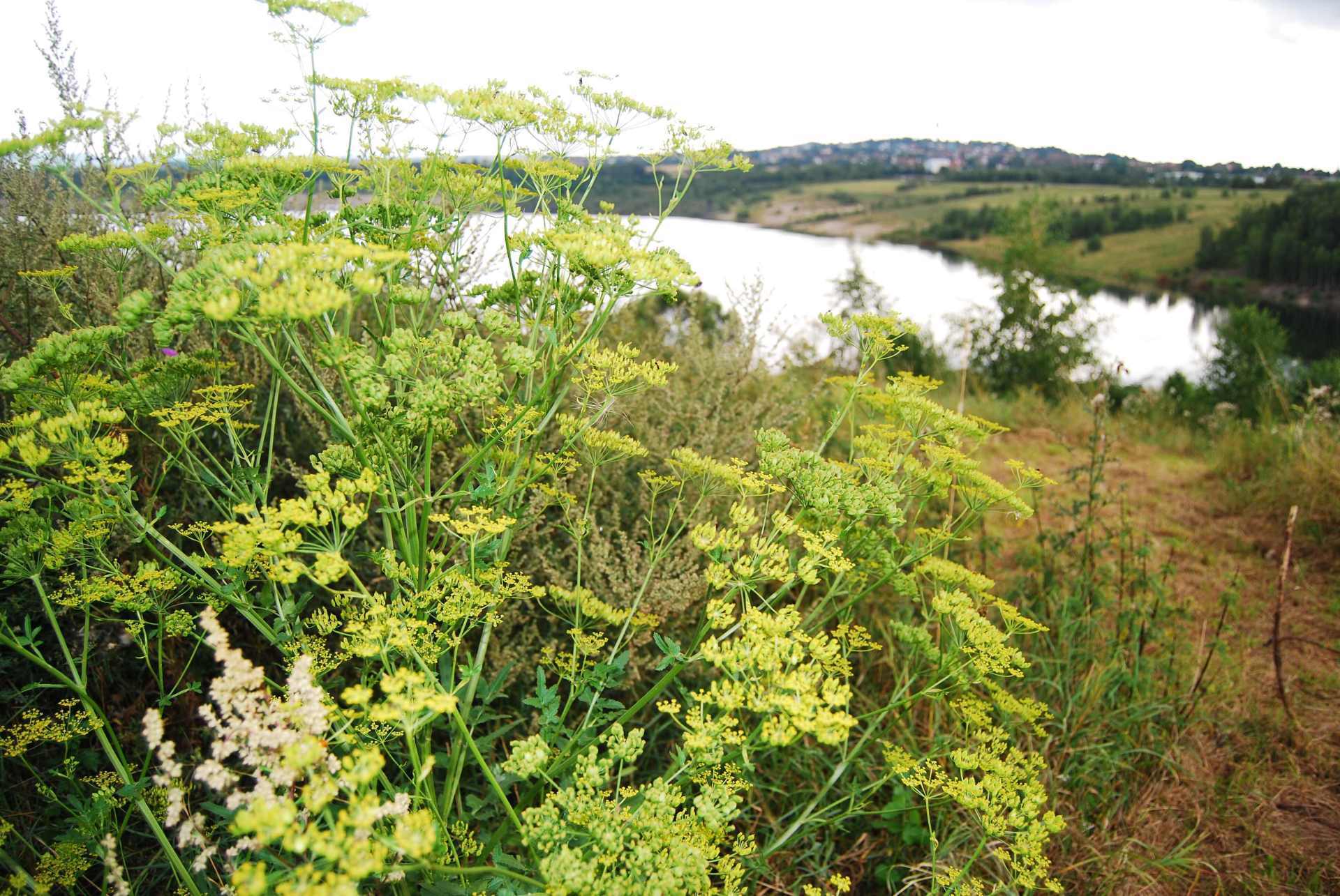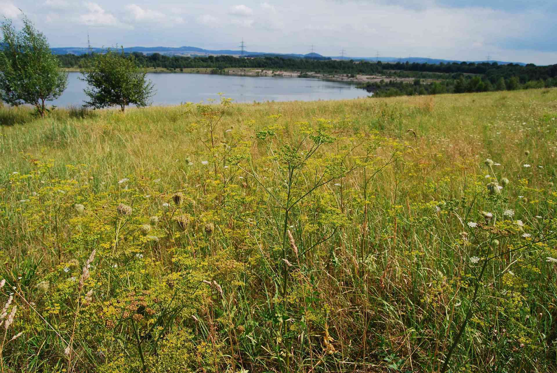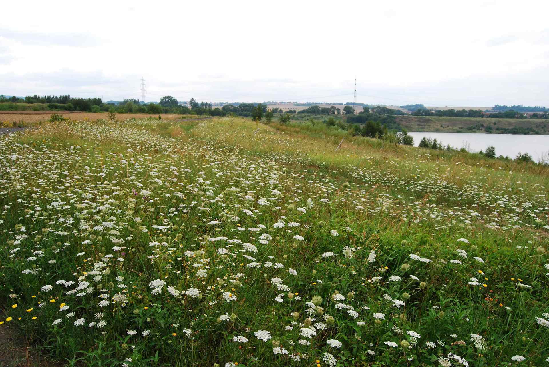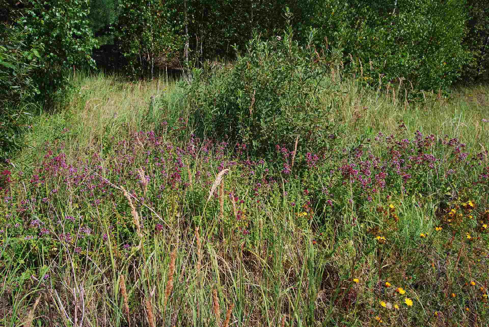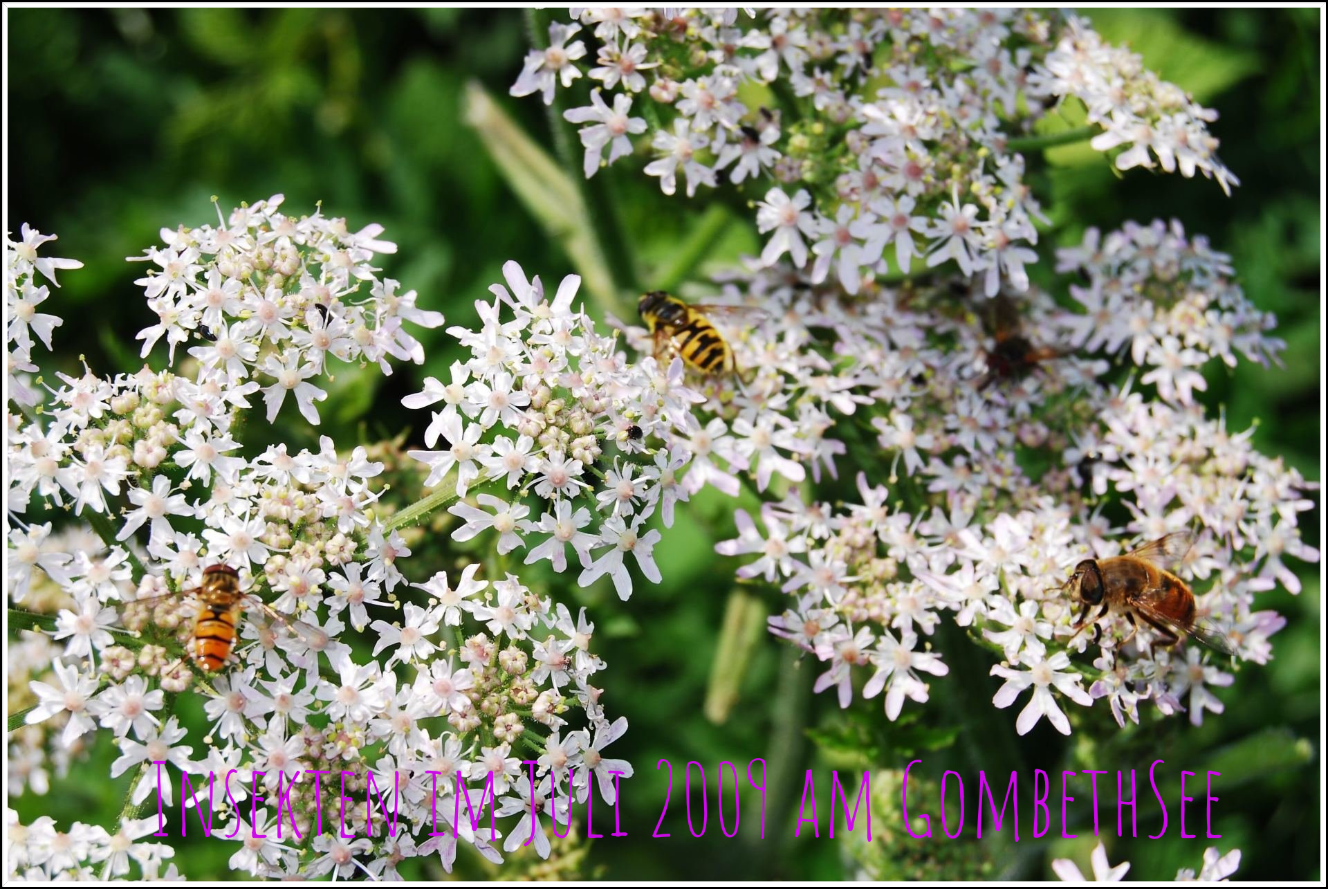 Hier an der SüdWestSeite des GombethSees wuchsen sehr viele Sorten , Wiesenkerbel, Geißfuß, Wiesenbärenklau, Wilde Möhre und viele andere Pflanzen auch die gewöhnliche Schafgarbe , Margerite, Echte Kamille, geruchlose Kamille, Weißkleee oder andere Kleesorten, Weidenröschen, Klatschmohn,Echter Baldrian, und die ganze Palette der wilden Nelkensorten und viele mehr.Und unten in der Nähe des Wassers der Blutweiderich und der gemeine Wasserdost und vieles mehr.