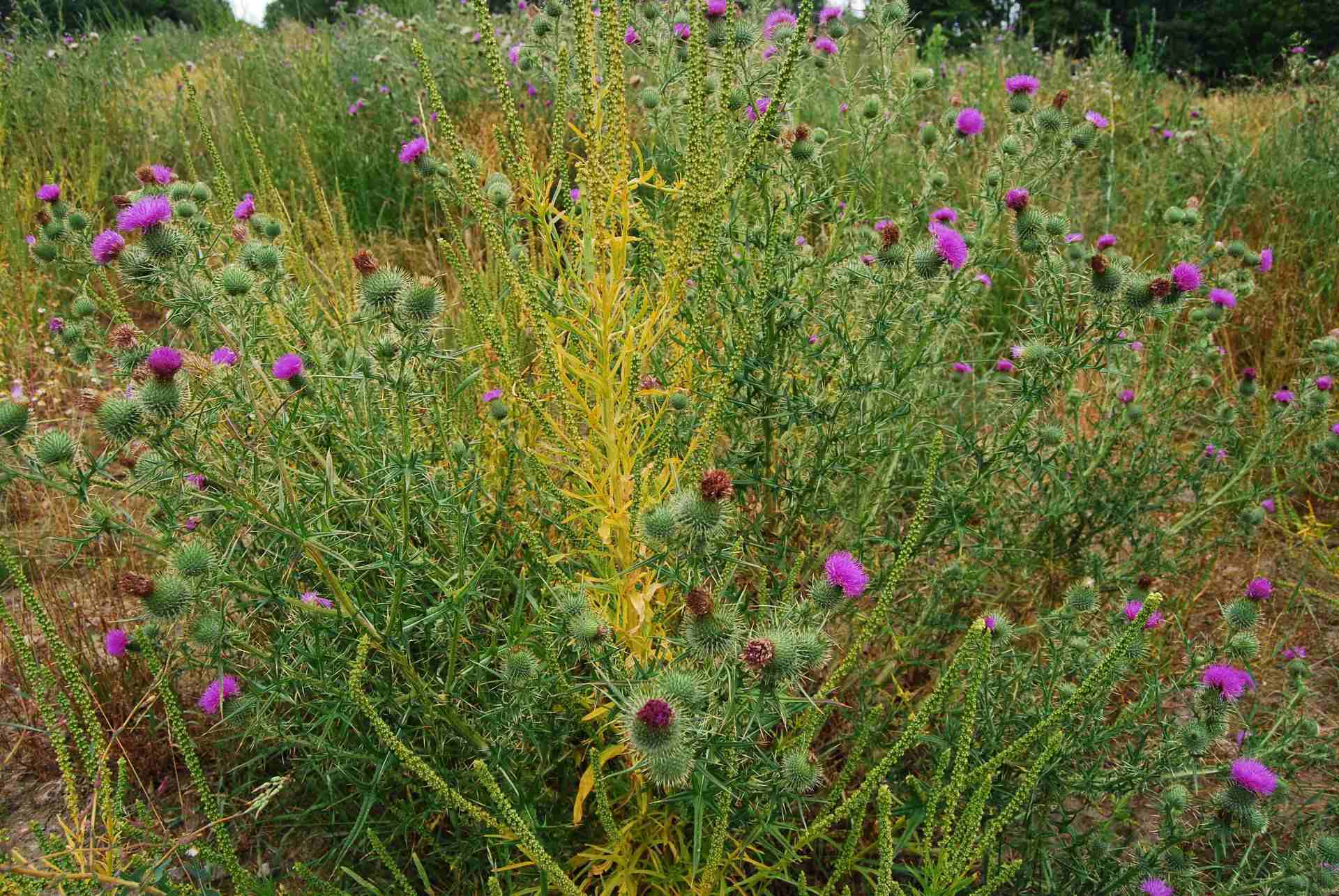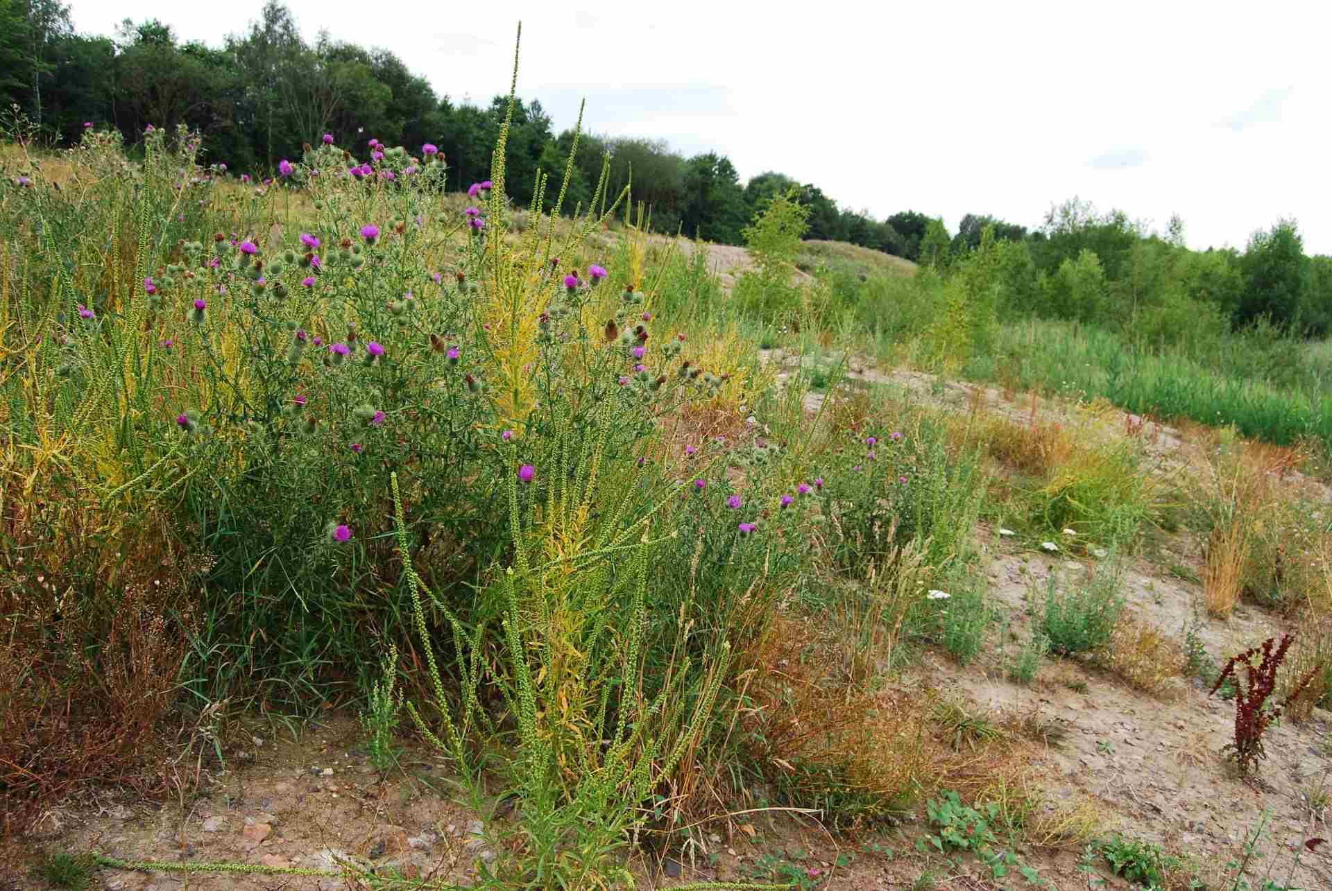 Gewöhnliche Kratzdistel denke ich mal.Obwohl es da die Englische und andere Kratzdistelsorten gibt.Aber der SchuttGombethSee war ein DistelCountry für Distelfinken die heiter bunt winken.