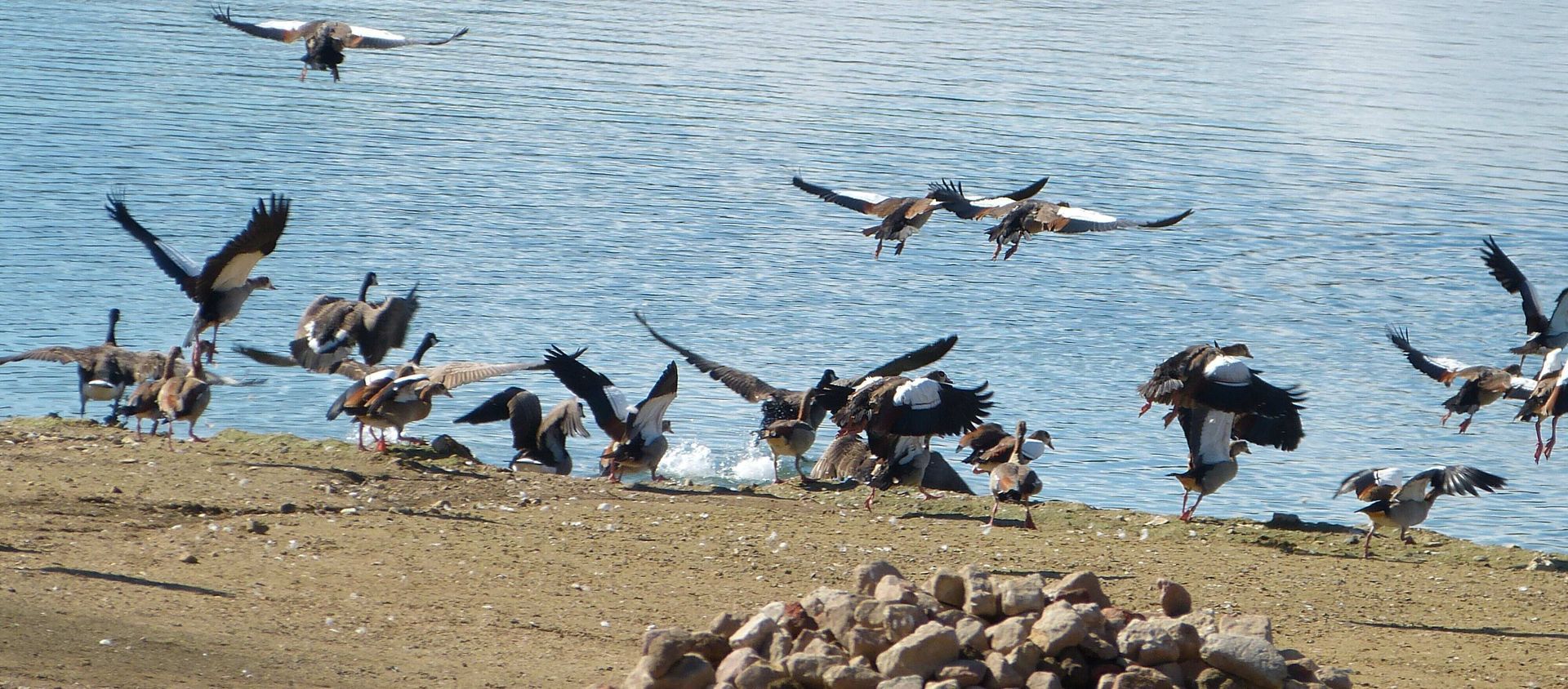 Ostufer im September 2022 mit fliegenden Nilgänsen