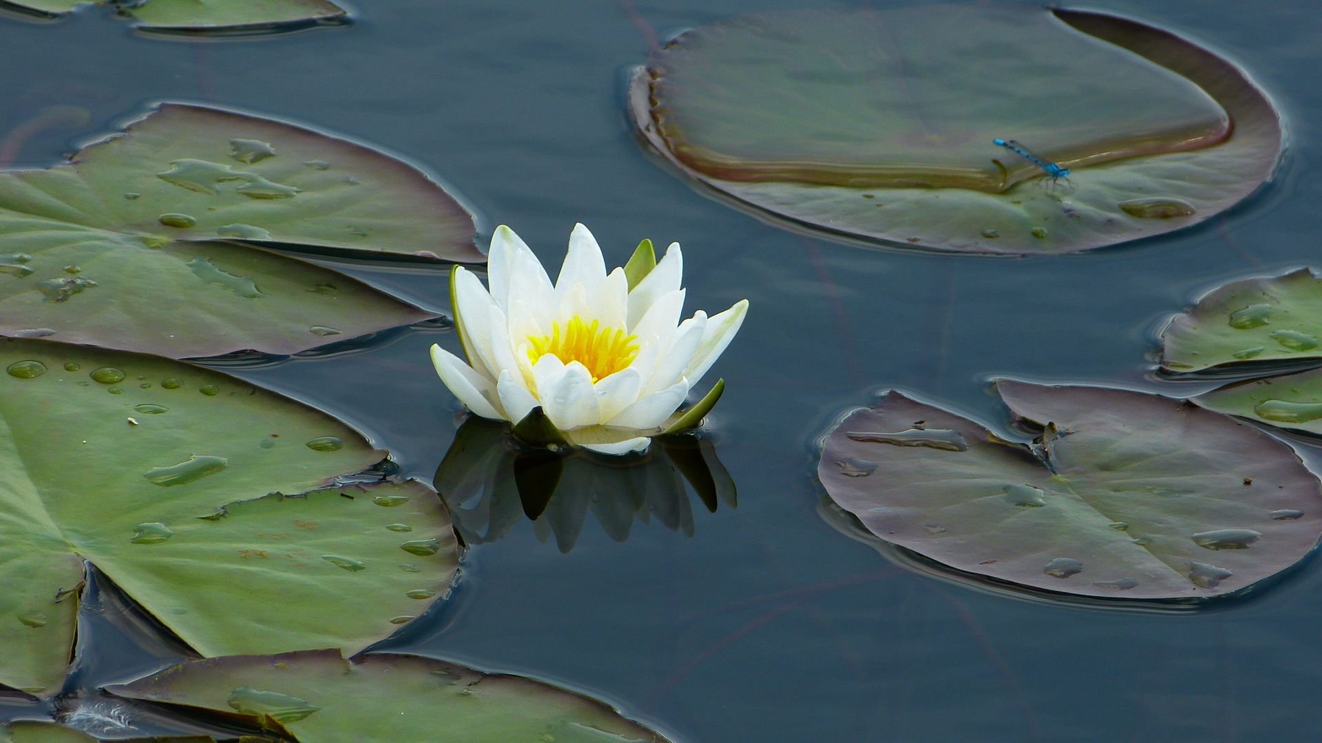 Diese Seerose, zwei Stück, die waren am Südufer gepflanzt. Es wurden Stöcke um die Pflanzen gesteckt, das half, zwei Monate, dann wurden auch diese beiden zerfleddert und abgerissen, aber auch wieder nicht die Blätter gefressen, bloß abgerissen. Es ist schwierig hier SeeRosen zu etablieren, die den See verschönern, bereichern würden.