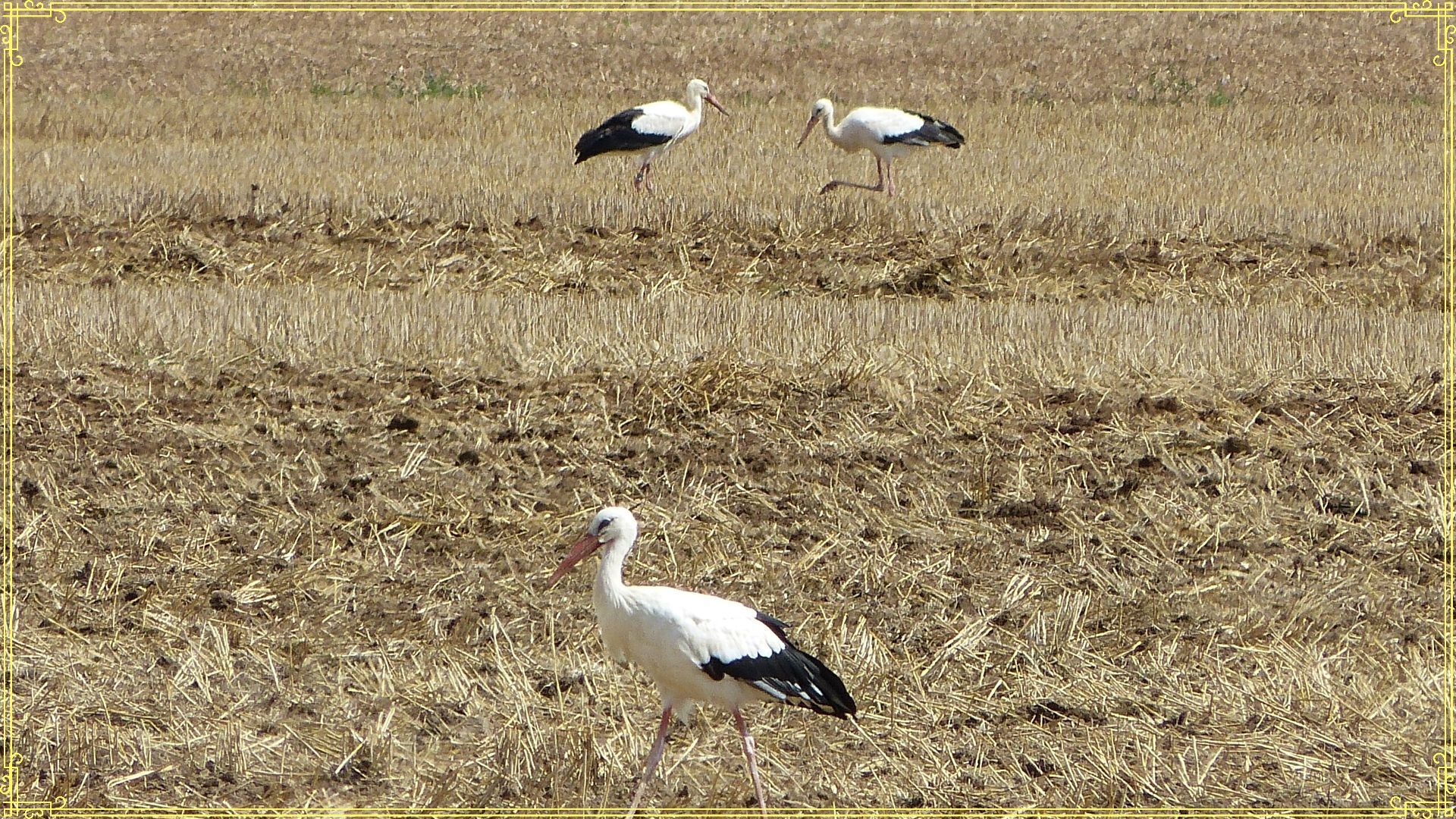 Es gab ja über die letzten Jahre immer wieder mal einen oder zwei Störche in der Nähe an der vorbeifließenden Schwalm. Sie waren auf den Wiesen und suchten frische Heuschrecken die immer weniger werden oder Frösche die es da nicht gab aber meistens suchten sie Mäuse und warteten vor dem Mauseloch. Einmal im August 2020 waren mehrere Störche am nördlichen Rand von Gombeth als ein Bauer dort sein Feld bearbeitete.