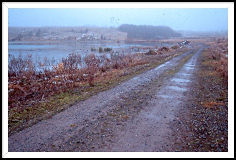 Rechts gut zu sehen die Straße, die einmal nach unten zum See und oben herum zurück zum Anfang führte. Damals fing der Strauch und Baumbewuchs erst an,