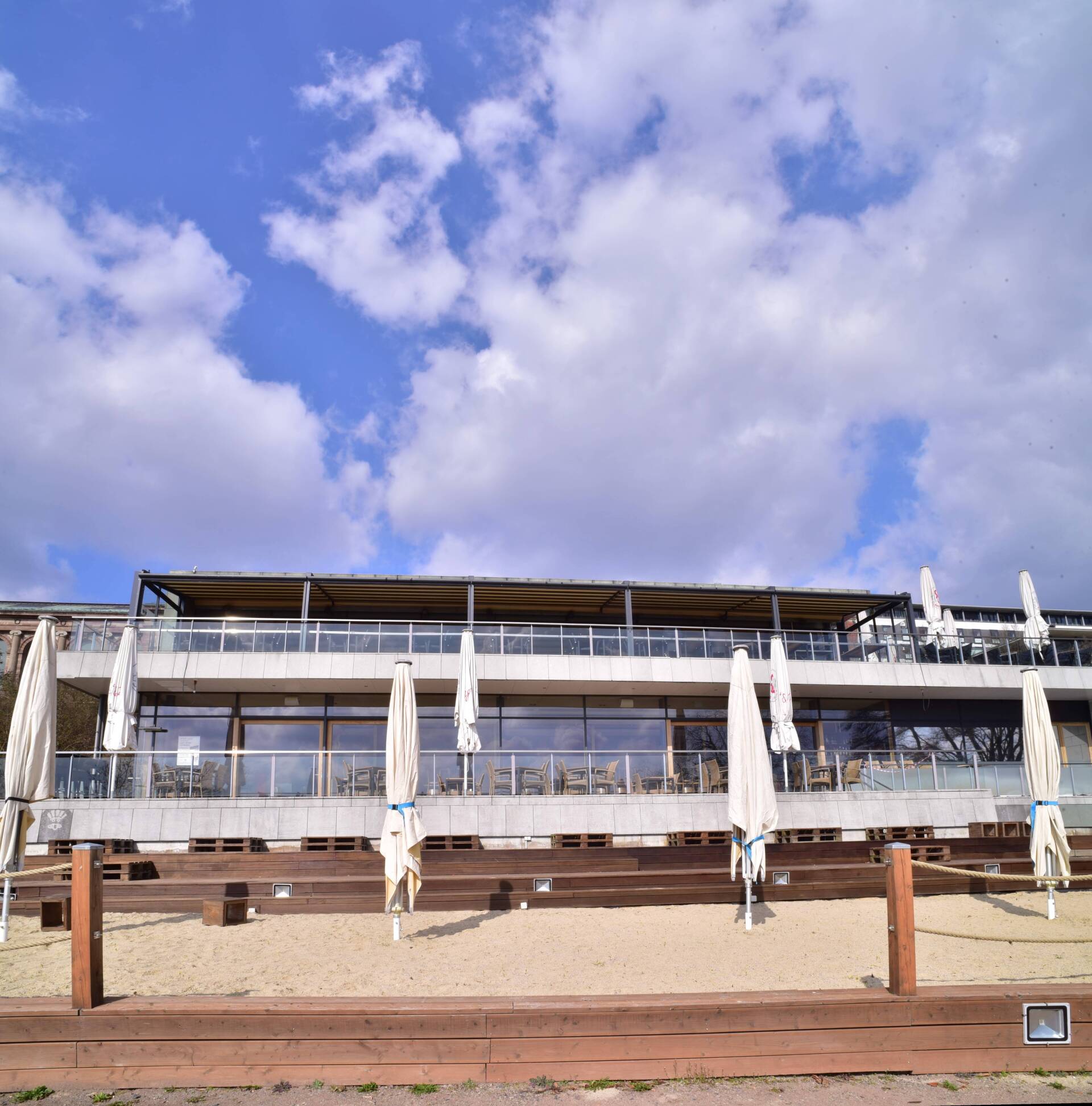 Dahinten da ist dann das AueBad mit Sauna Saunah Saunah.