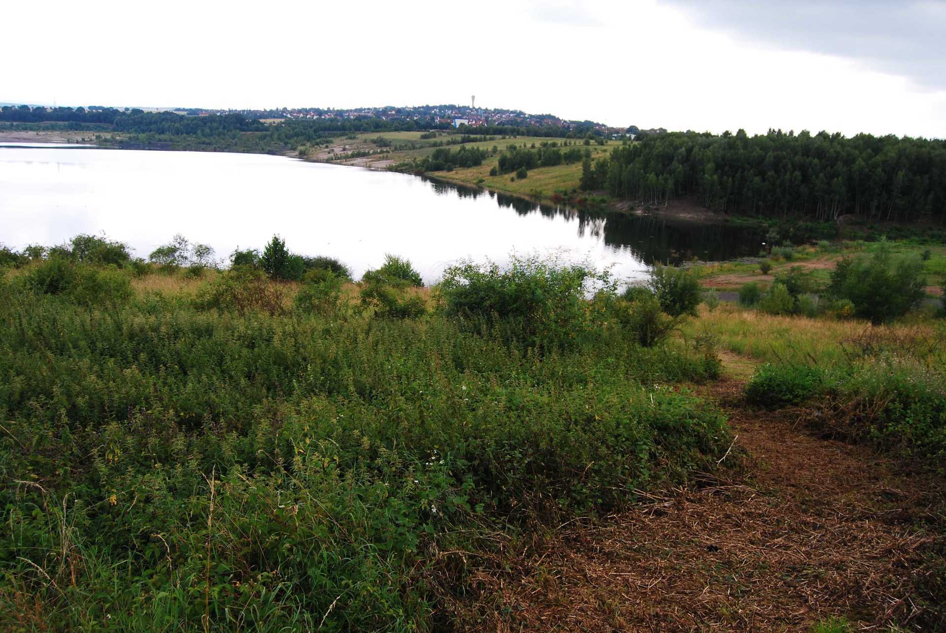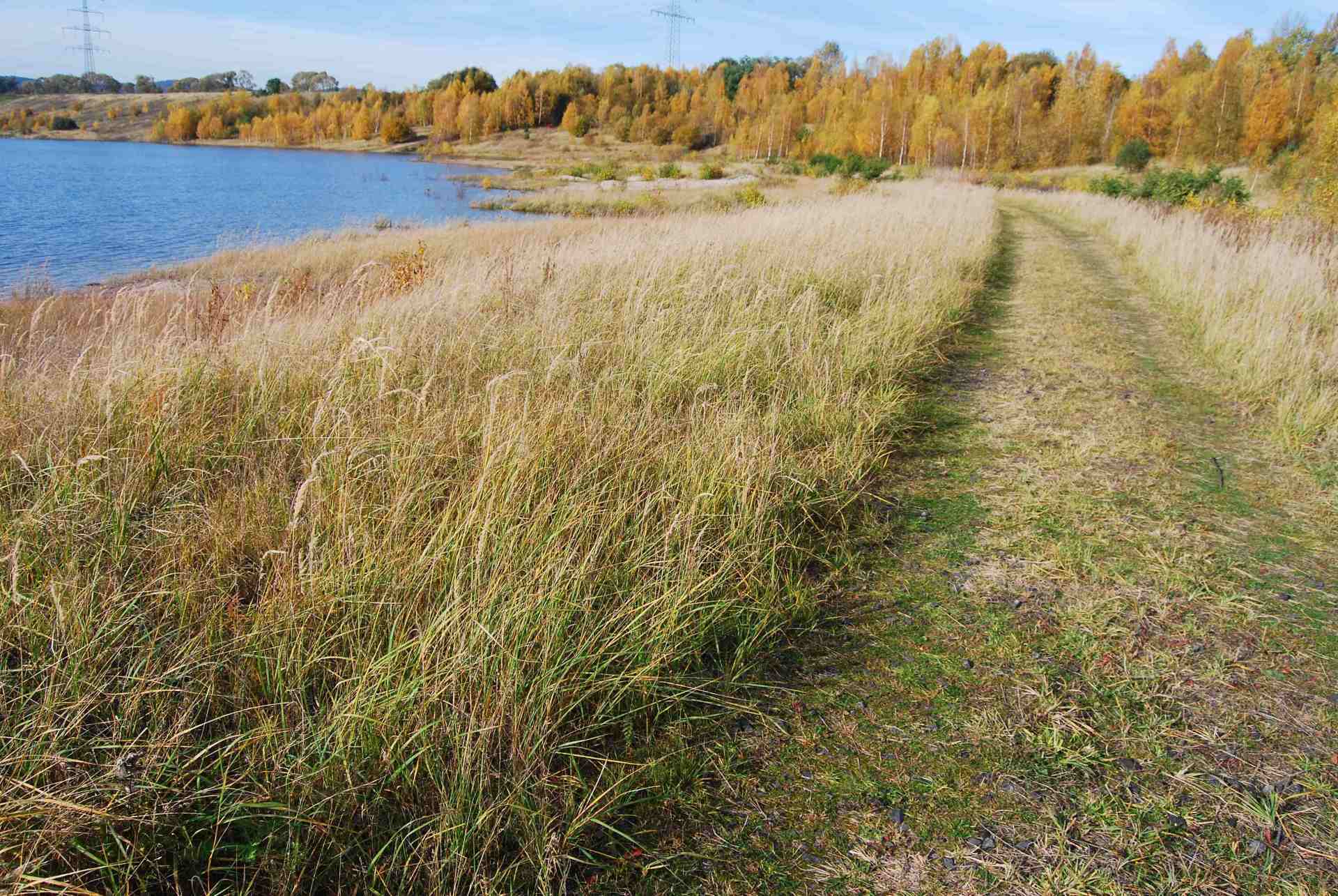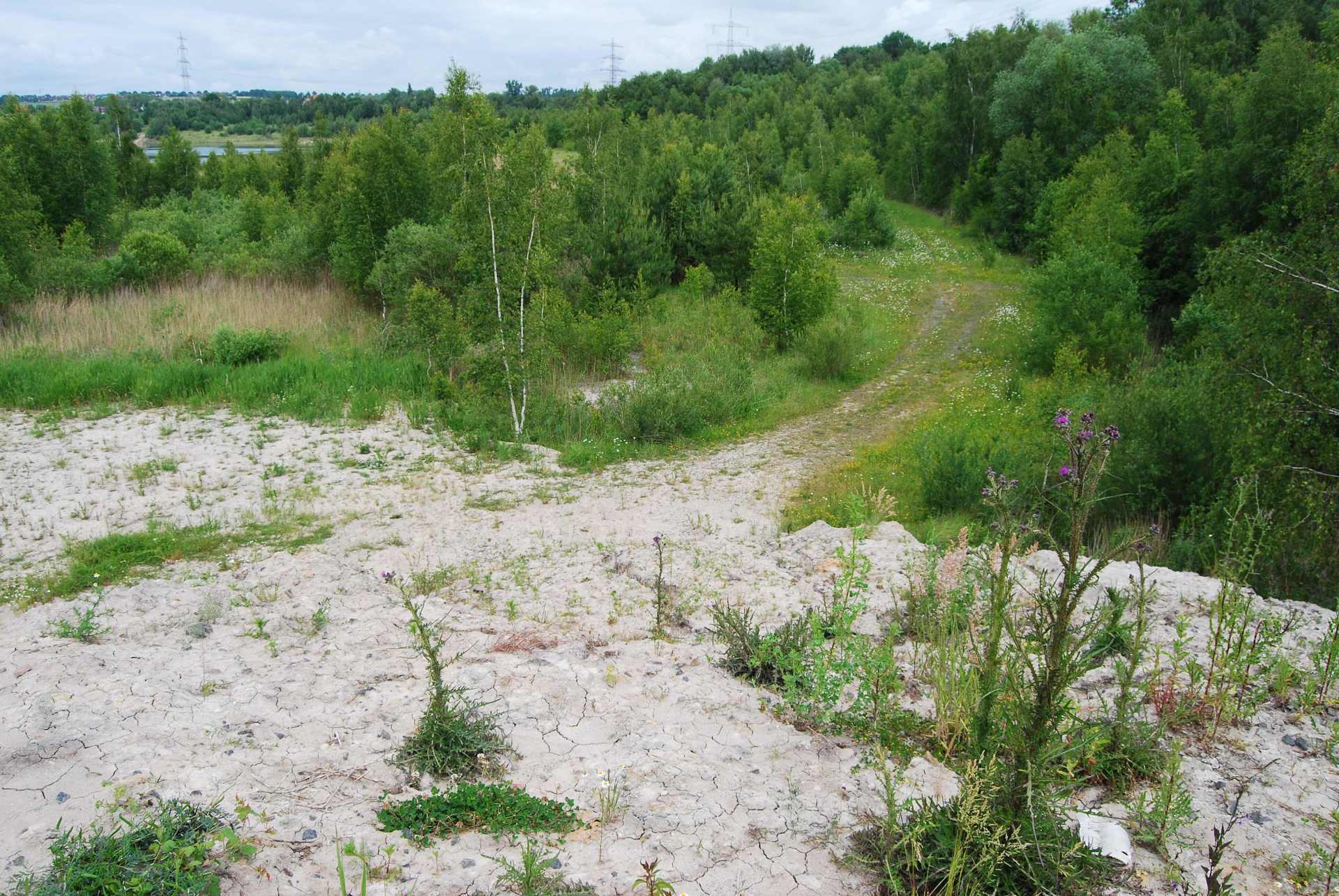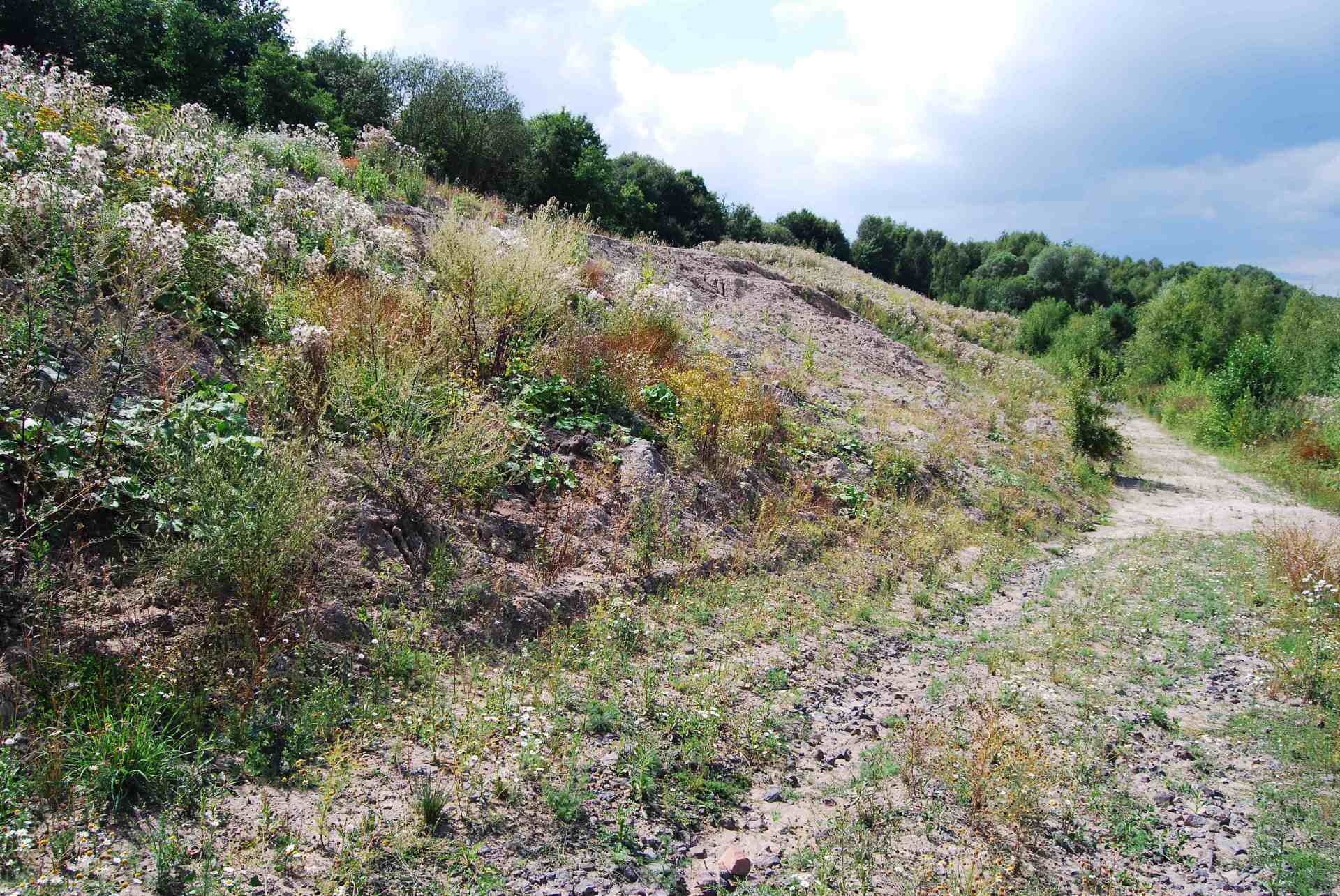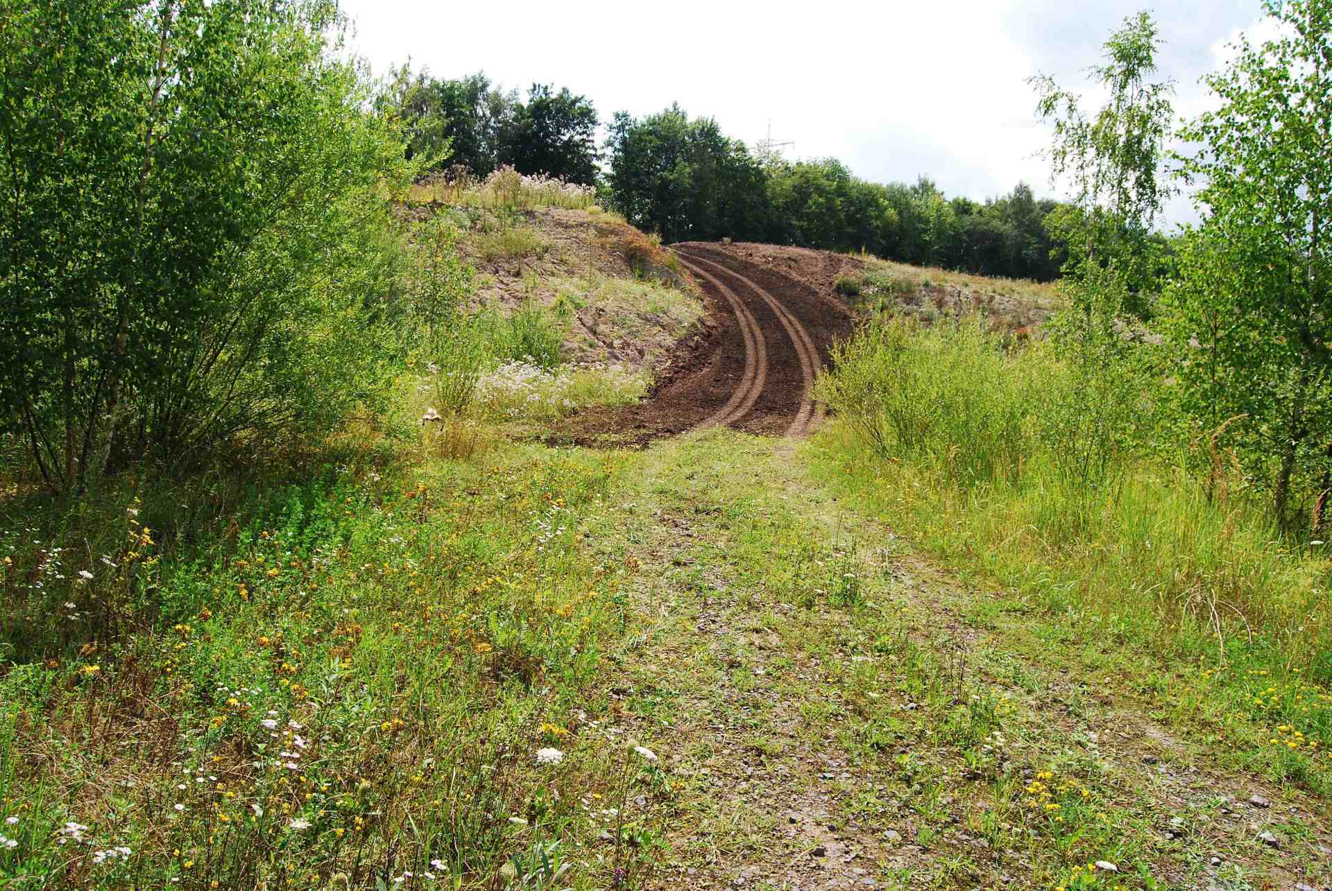 Mit diesem Ausbau hier oben wurde dann endgültig auch der alte Weg um den wachsenden GombethSee verändert.Da am Ende wo der Baumbestand anfängt ging der Weg sonst links unten vor dem Schilf um den See herum. Das wurde alles mit Bauschutt zugeschüttet und nun dieser neue nach oben verlegte Weg gebaut.