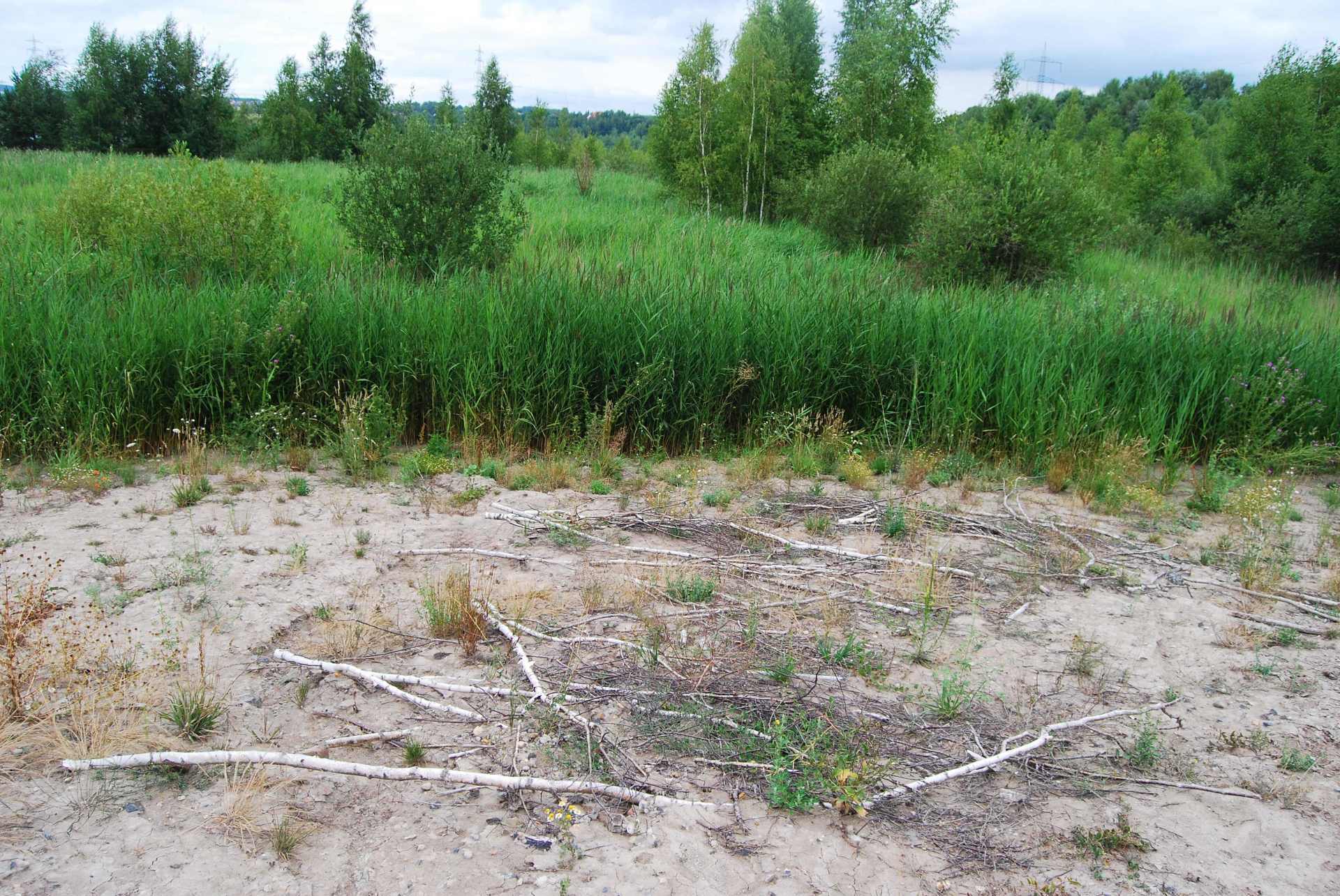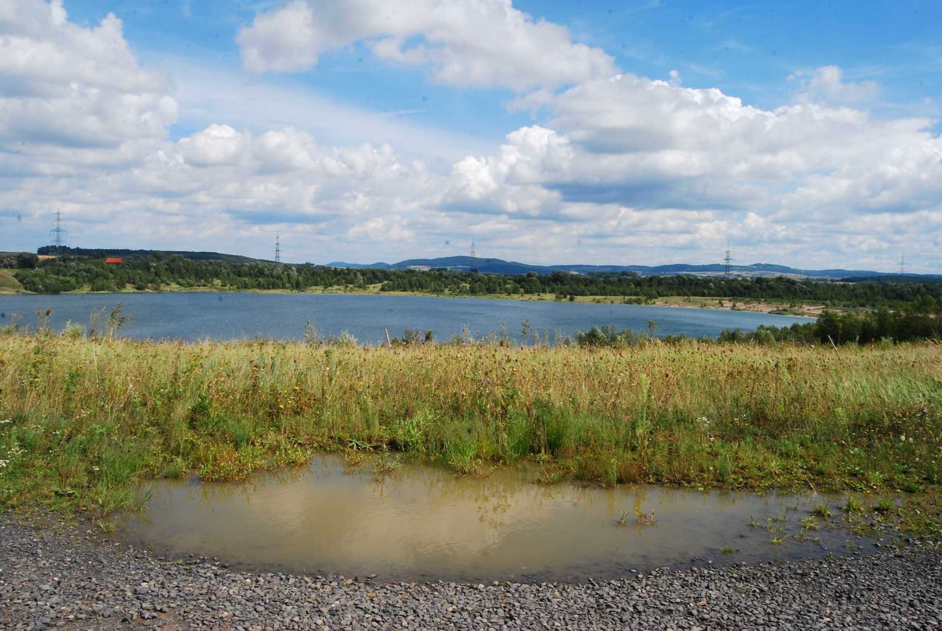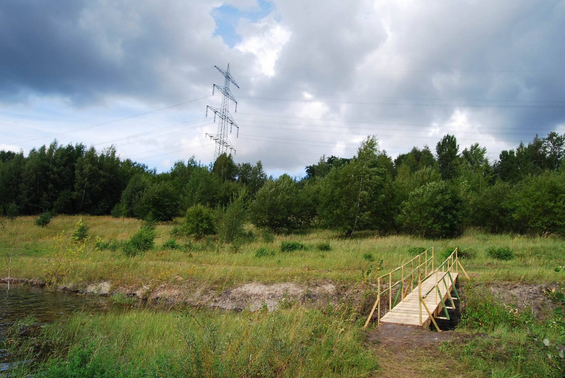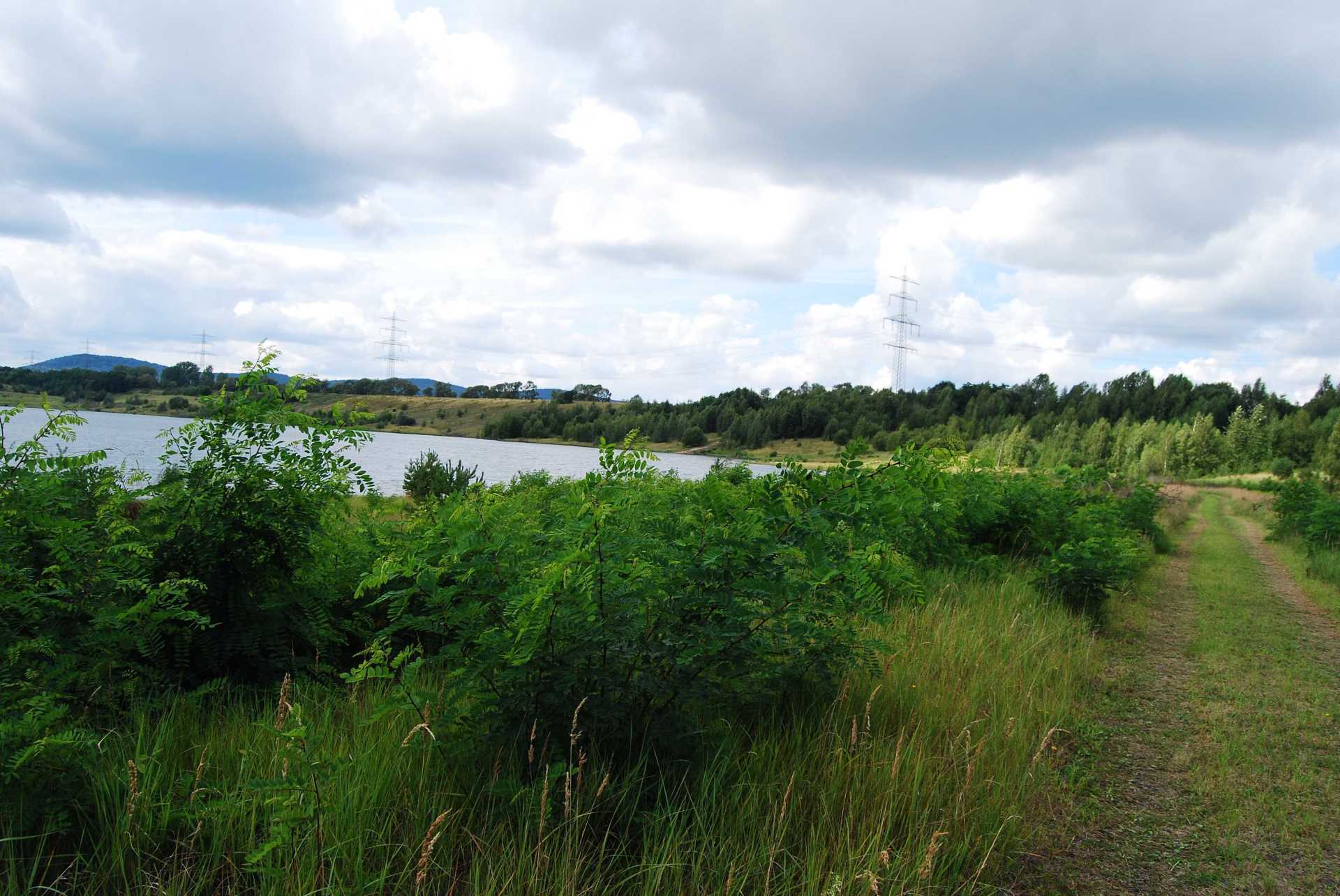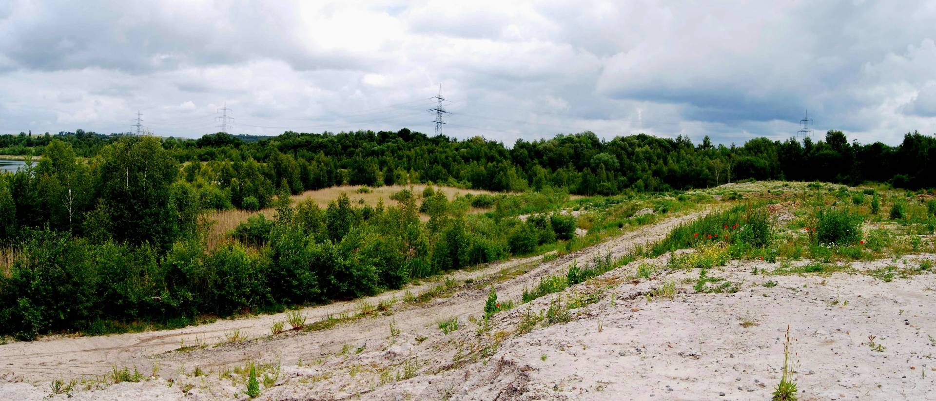 Mit diesem Ausbau hier oben wurde dann endgültig auch der alte Weg um den wachsenden GombethSee verändert.Da am Ende wo der Baumbestand anfängt ging der Weg sonst links unten vor dem Schilf um den See herum. Das wurde alles mit Bauschutt zugeschüttet und nun dieser neue nach oben verlegte Weg gebaut.