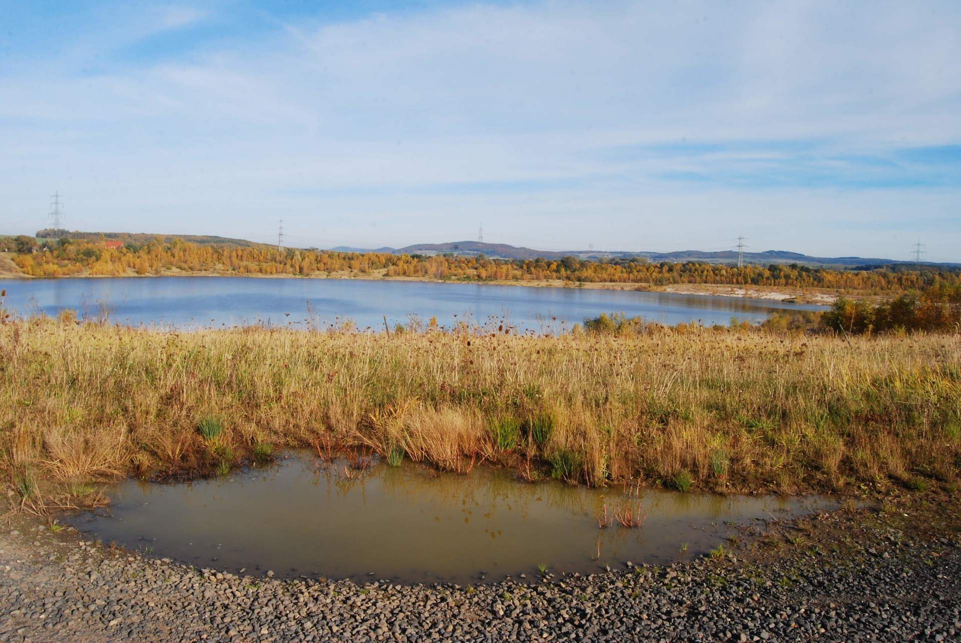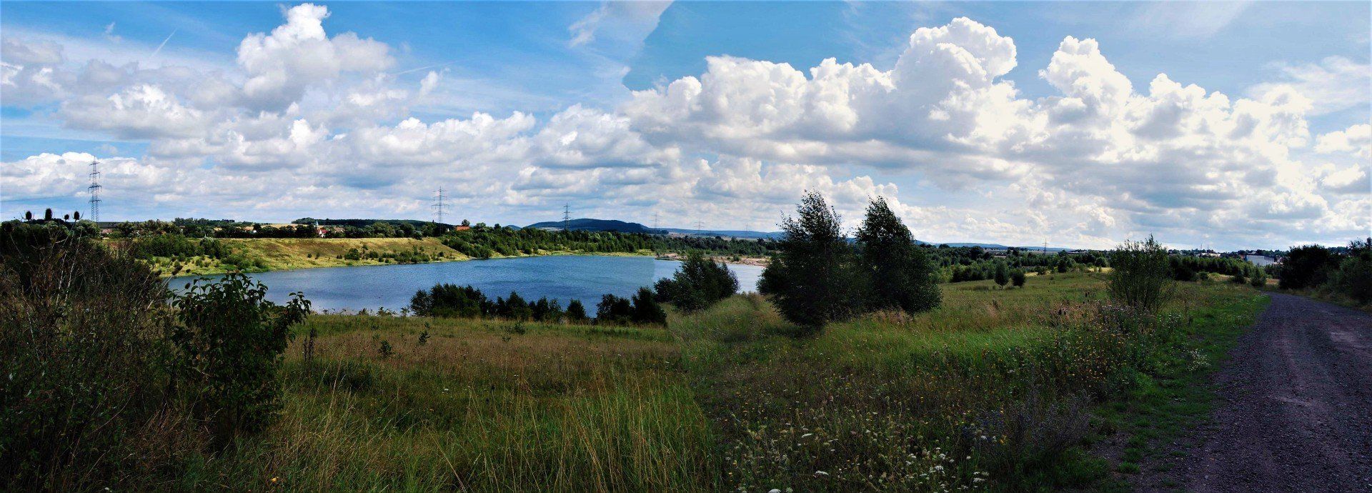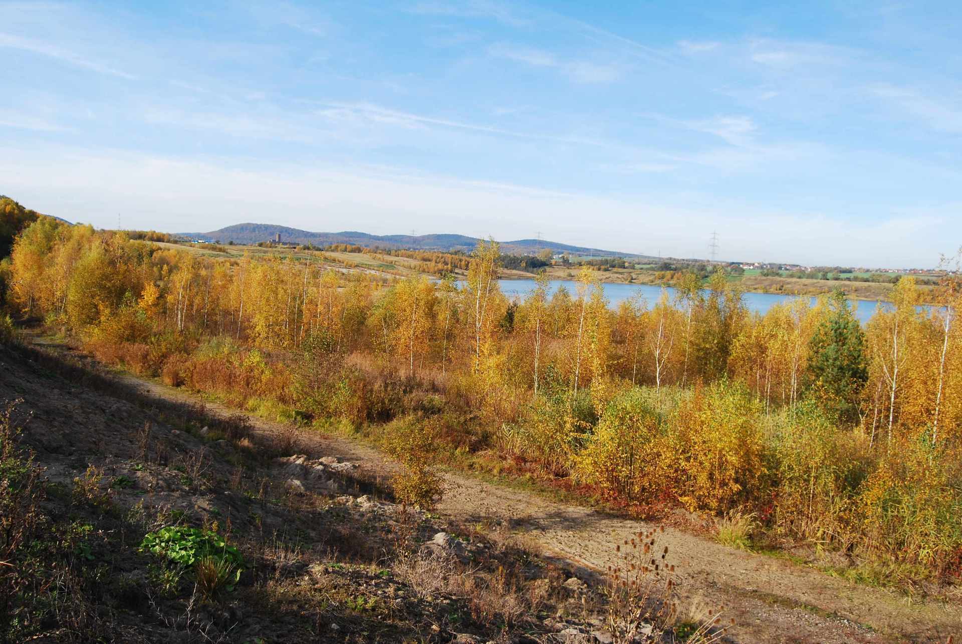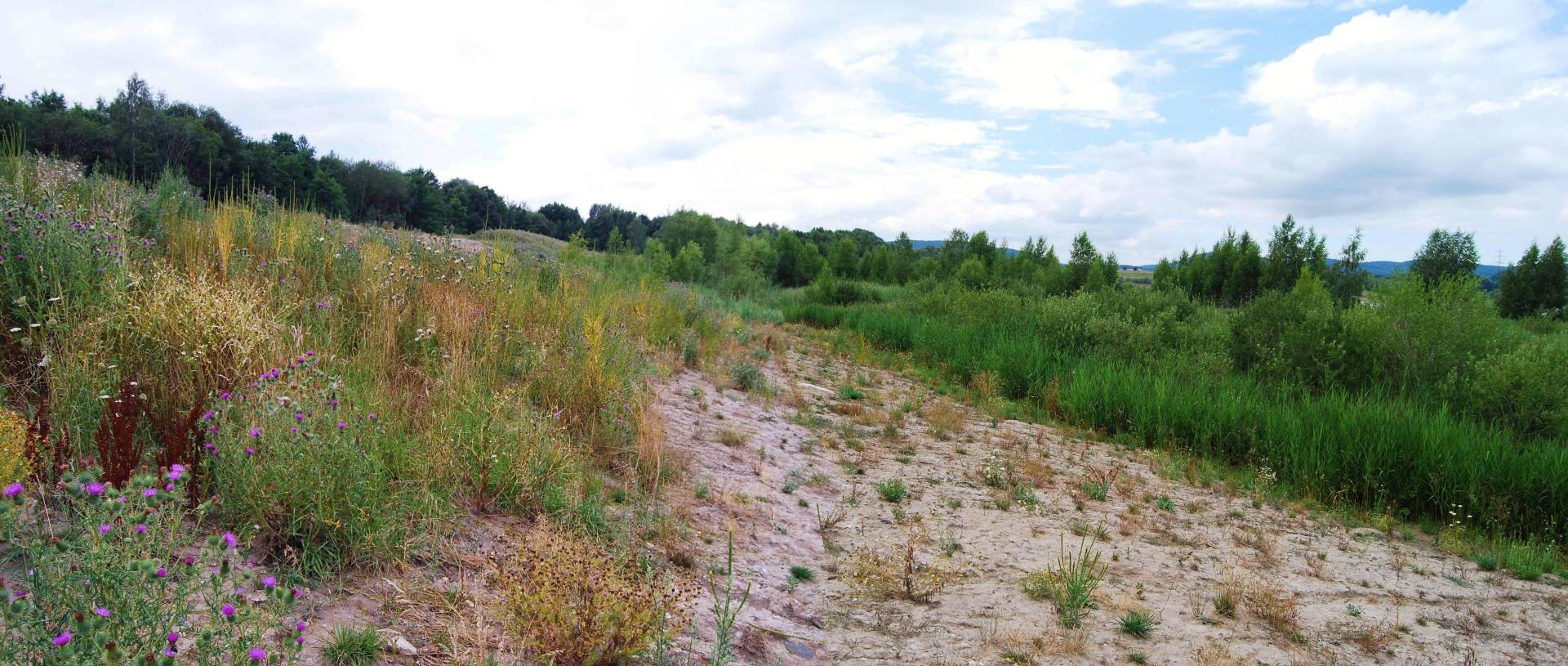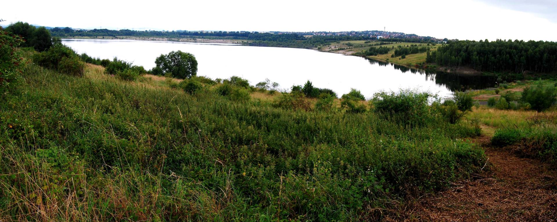 Mit diesem Ausbau hier oben wurde dann endgültig auch der alte Weg um den wachsenden GombethSee verändert.Da am Ende wo der Baumbestand anfängt ging der Weg sonst links unten vor dem Schilf um den See herum. Das wurde alles mit Bauschutt zugeschüttet und nun dieser neue nach oben verlegte Weg gebaut.