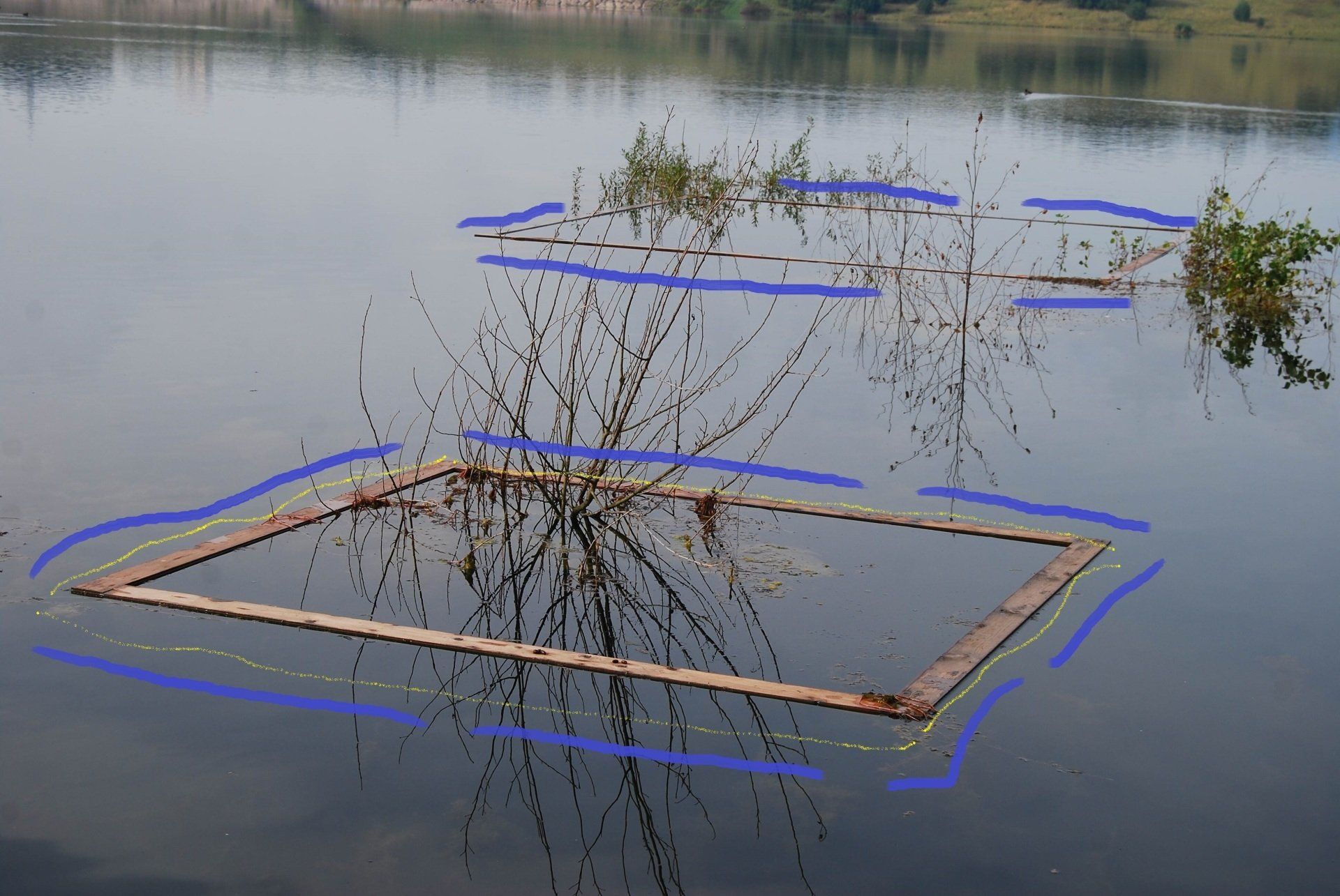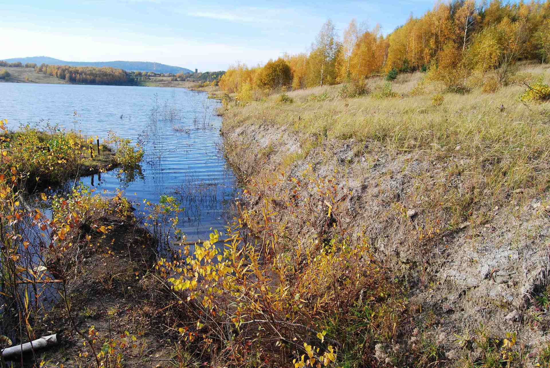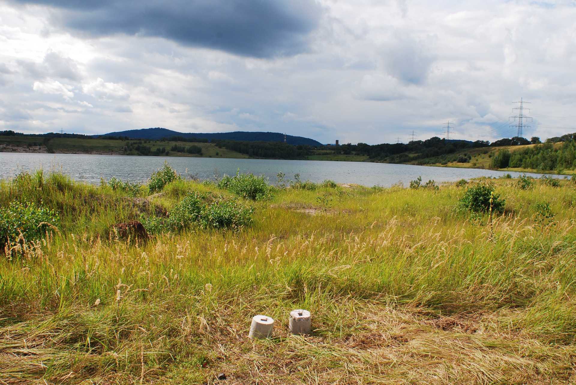 Hier rechts unten verlief der alte Weg um den wachsenden See.Das wurde aber alles mit Erde zugeschüttet und dieser Hang gebaut als Schutz gegen den kommenden Druck des Wassers wenn der See diesen Bereich erreicht hat.