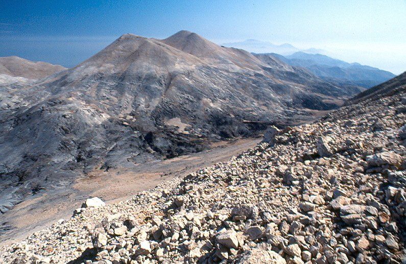 Es ist auch möglich, diese Tour ein wenig anspruchsvoller zu gestalten: Wenn wir am ersten Tag von Agios Ioannis starten, bringt uns ein Fahrzeug hoch zum Plateau von Kroussia, wo wir um den Fuß des Zaranokefala über der Schlucht von Eligias auf einem Muli-Pfad wandern, wo sich unglaubliche Ausblicke auf das Meer (1900 m unter uns!) bieten. Dann durchqueren wir eine mondähnliche Landschaft, bevor wir an der Südseite des Pachnes zu seinem Gipfel aufsteigen. Die ist eine etwas längere Tour, aber mit Sicherheit die schönste Wanderung, die die "Weissen Berge" zu bieten haben. (Ca. 8 Stunden Wanderung bis zu Schäfer-Hütte).