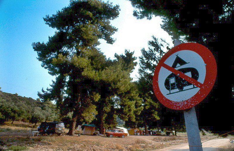 An einem der schönen Waldparkplätze sah ich dann diese entspannte Situation. Menschen hatten Melonen ins kalte Quellwasser gelegt um sie dann später gekühlt dort zu vernaschen. Ja, Ich war in Griechenland angekommen. Entspanntheit. Ich war als ich noch in West-Berlin wohnte mehrmals auf griechischen Inseln gewesen, auch länger, auf Paros, oder Mykonos, oder auf der Katzen Insel Hydra. Aber nun hier diese Waldlandschaft wunderbare Luft, genau das richtige nach dieser Rüberfahrt nach Wien und dann durch das rasende Rumänien und Bulgarien, aber nun hier. Genau das was ich brauchte Erholung. Erholung von Menschen und ihren Machenschaften. Meditation. Ja. Meditation. Aber diese Wald Umgebung das war schon einatmen der Meditation denn Bäume, sie sind immer in Meditation, sie sind immer sehr still sehr gefasst sehr meditativ ruhig, genau das was ich brauchte.
