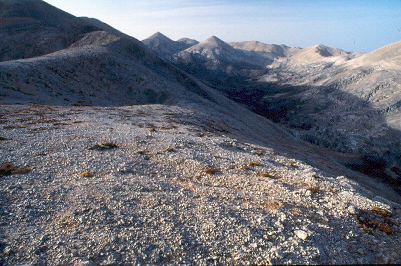 Hier befinden wir uns schon auf rund 2000 m, mitten in der "Hohen Wüste", wo wir unseren Aufstieg zum Pachnes, mit 2453 m der höchste Gipfel des Lefka-Ori-Massivs beginnen.