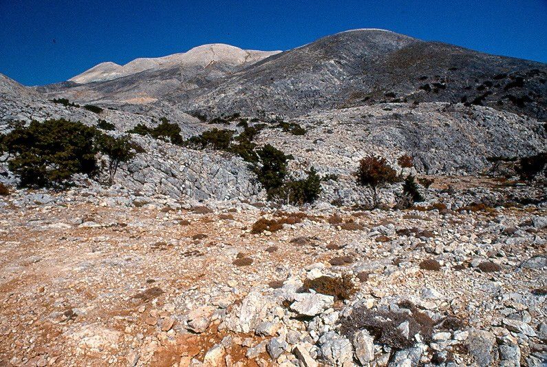 Ein verdammt heißer Platz im Sommer da zwischen den Feuerlöchern der erloschenen Vulkan Schlote ein wunderbarer Ort zum meditieren. So wie die alten tibetanischen Weisen und Heiligen da abgeschieden in den Gebirgshöhlen und Schluchten und meditierten yäääääääääää. prima wunderbare Tage Wochen Monate da auf Kreta. im Sommer 1992. Gänse Geier zischen Bartgeier segeln und rauben keine kleinen Kinder mehr weil sie bloß Knochen schlucken. Und der kleine Zaunkönig huscht tatsächlich hier oben zwischen den Kleinstbüschchen herum und schaut schräg den Kopf angelegt wenn ich vorbei kam und er unter dem winzigsten Gestrüpp hockte.