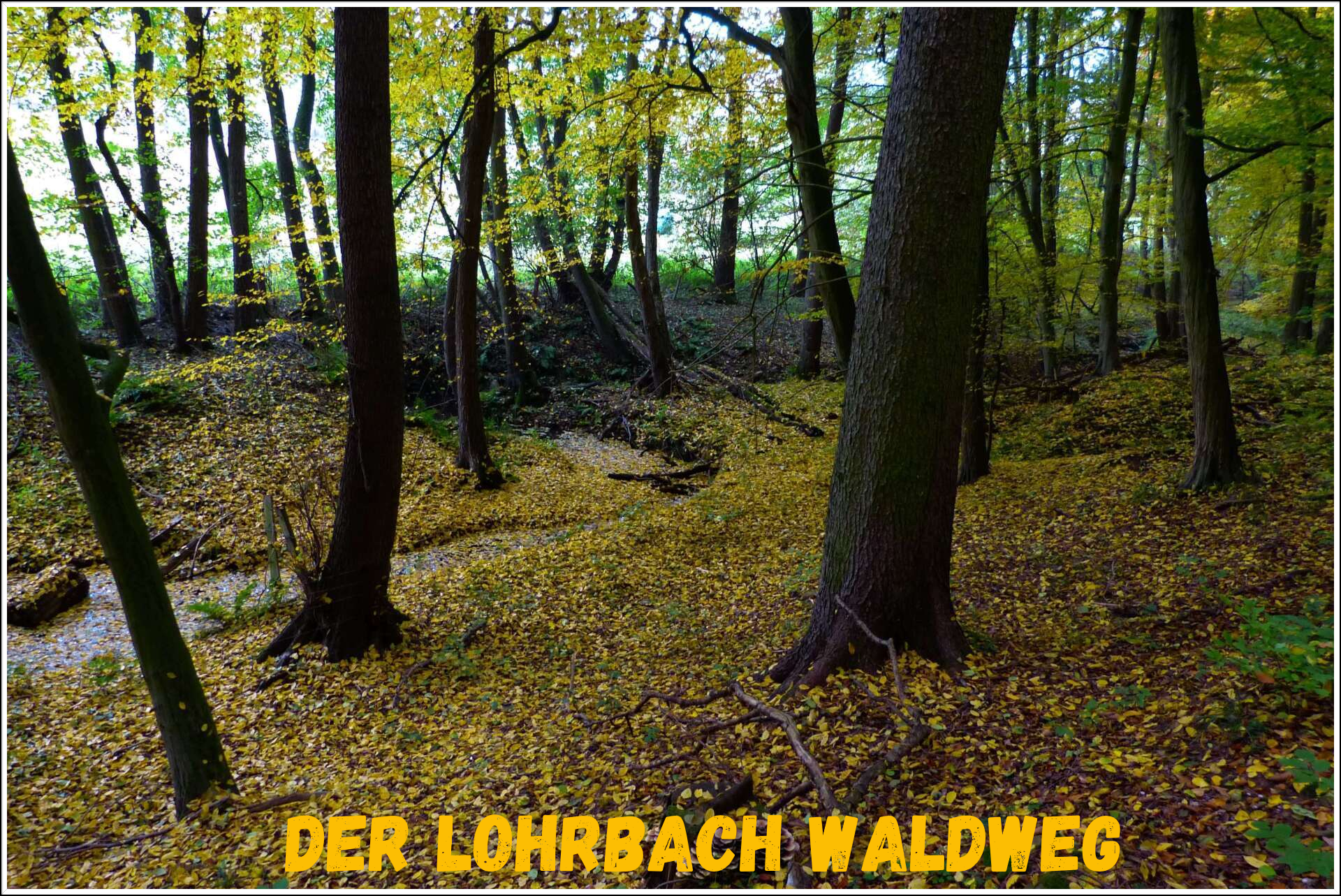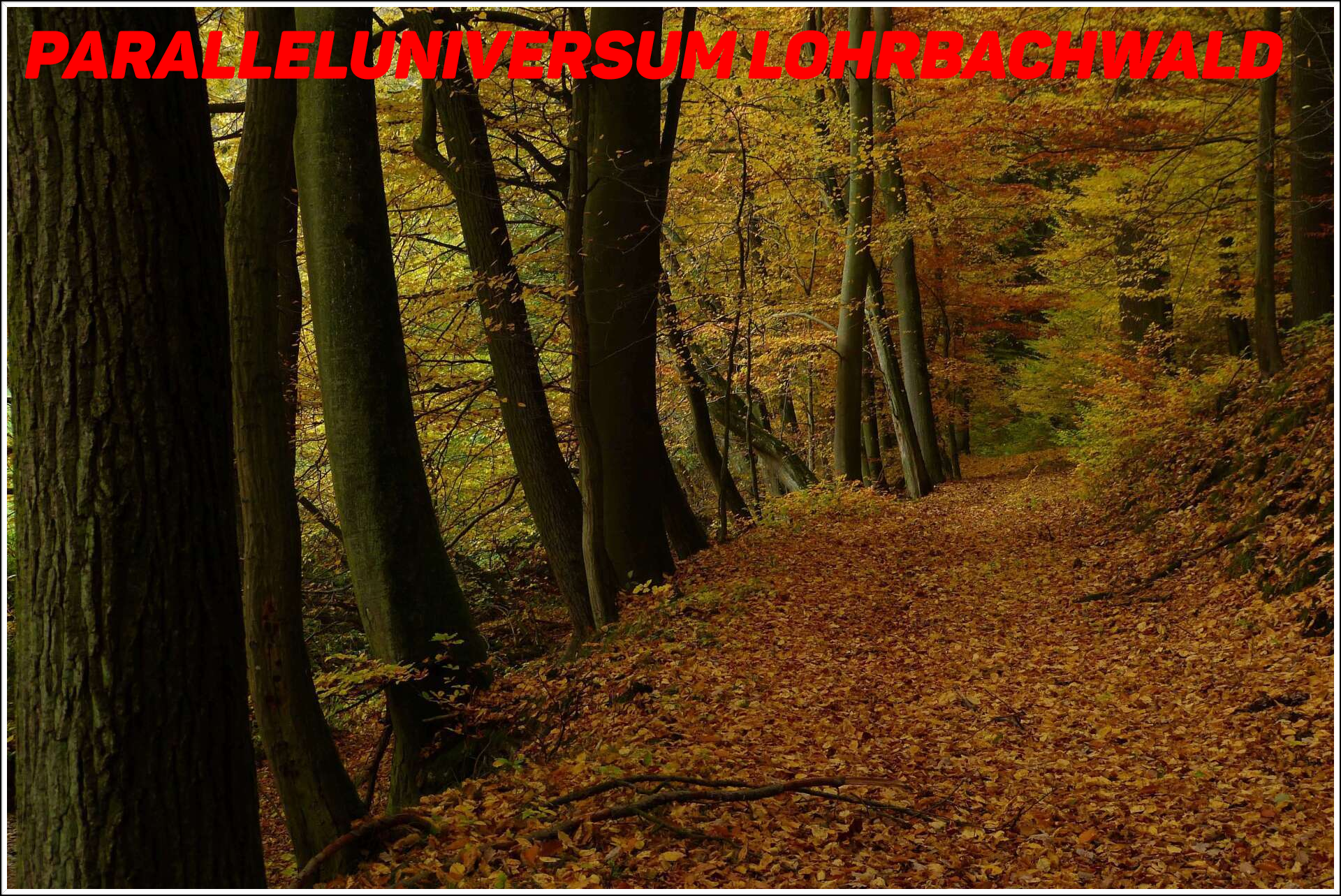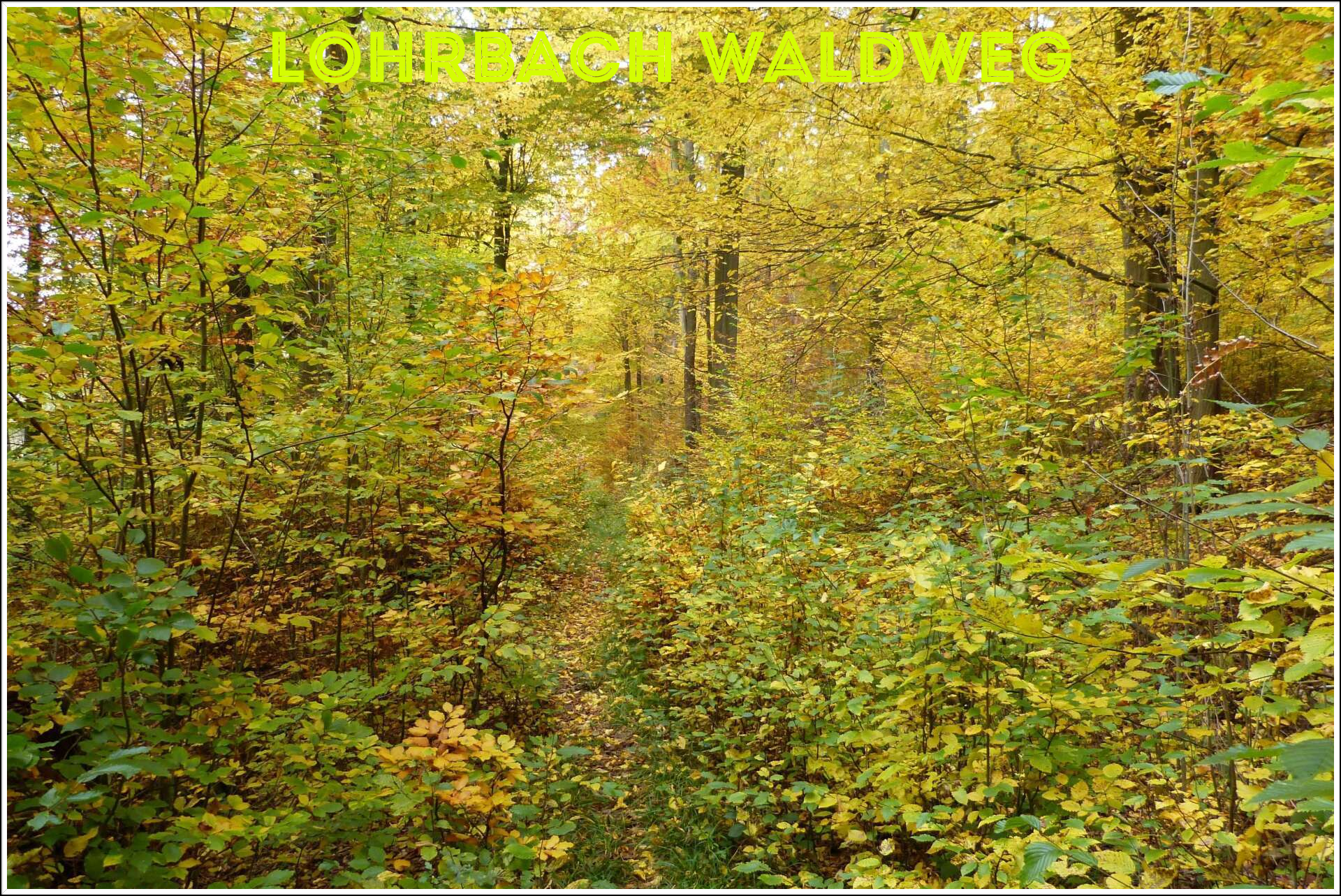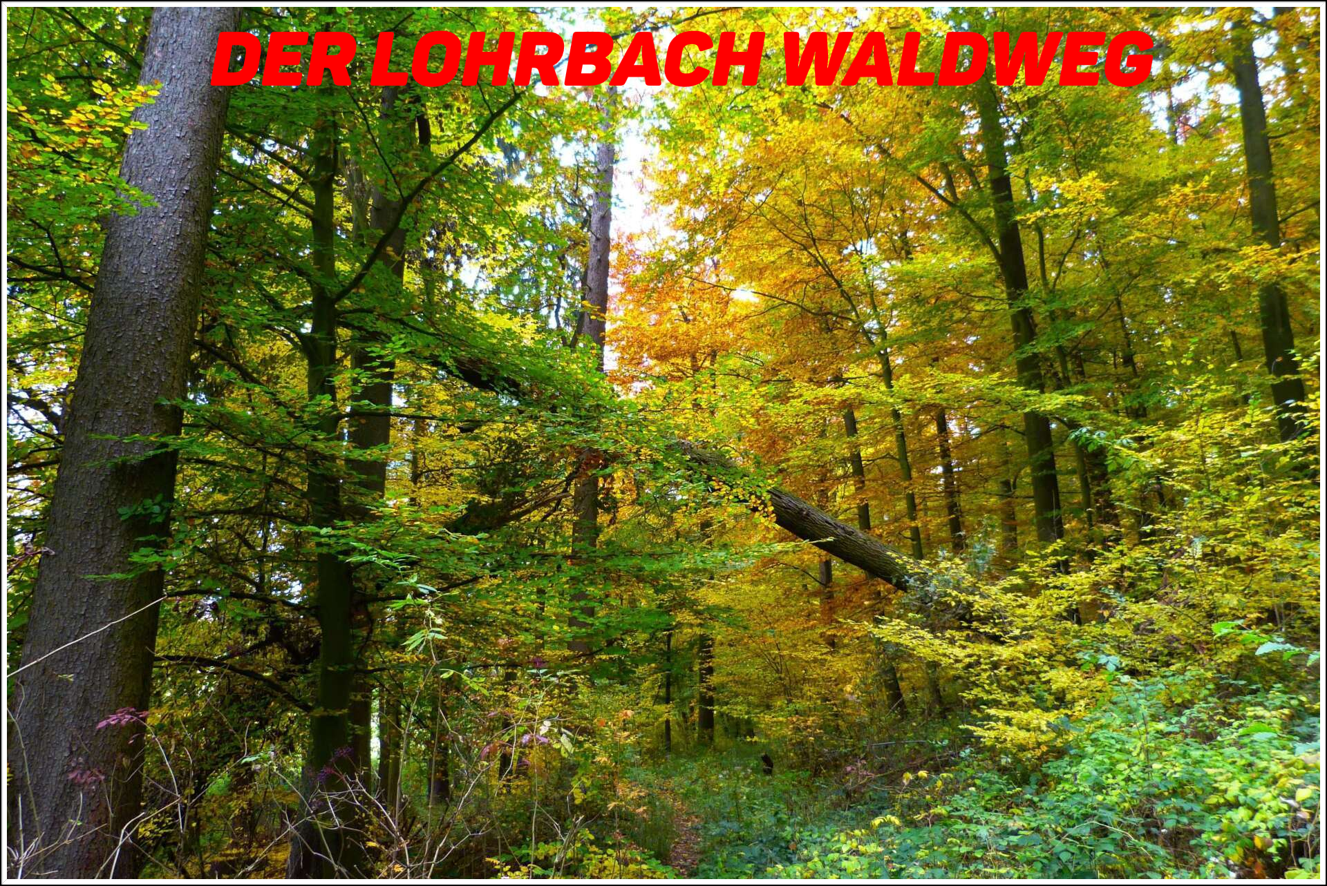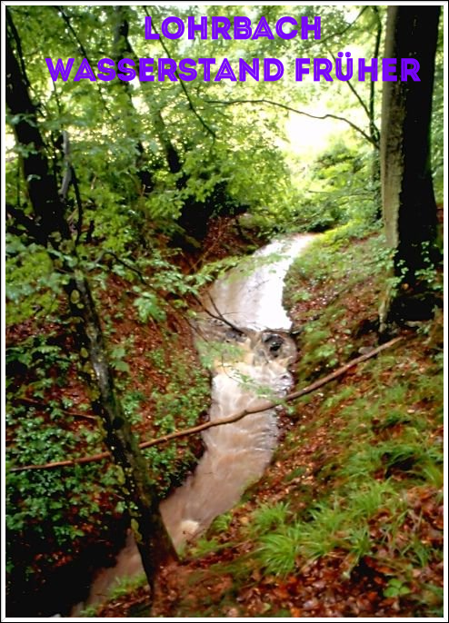 Oben im Foto eine Zusammenfügung von zwei Fotos unten dann die echte unverfälschte Umgebung.Damals war der Waldweg noch unbewachsen.Heute 2021 ist sehr viel zugewachsen mit jungen Buchen und einige schwere Fichten sind zerschmettert worden und liegen quer über diesen ehemaligen guten Waldweg entlang des Lohrbachs.Hier geht praktisch der berühmte "Niemand" entlang außer ich selber.
