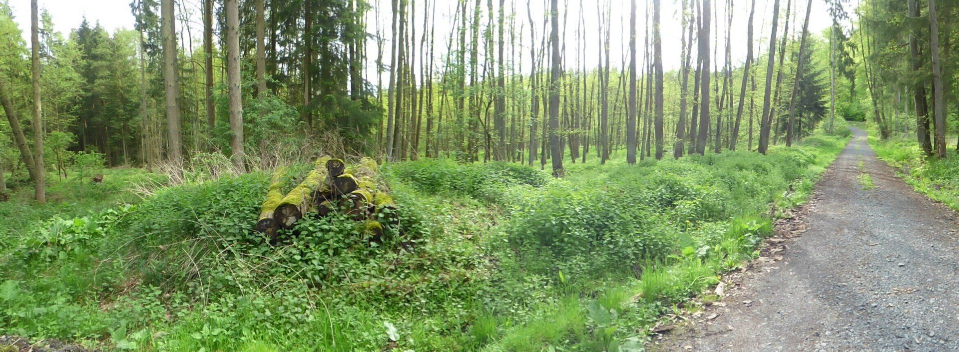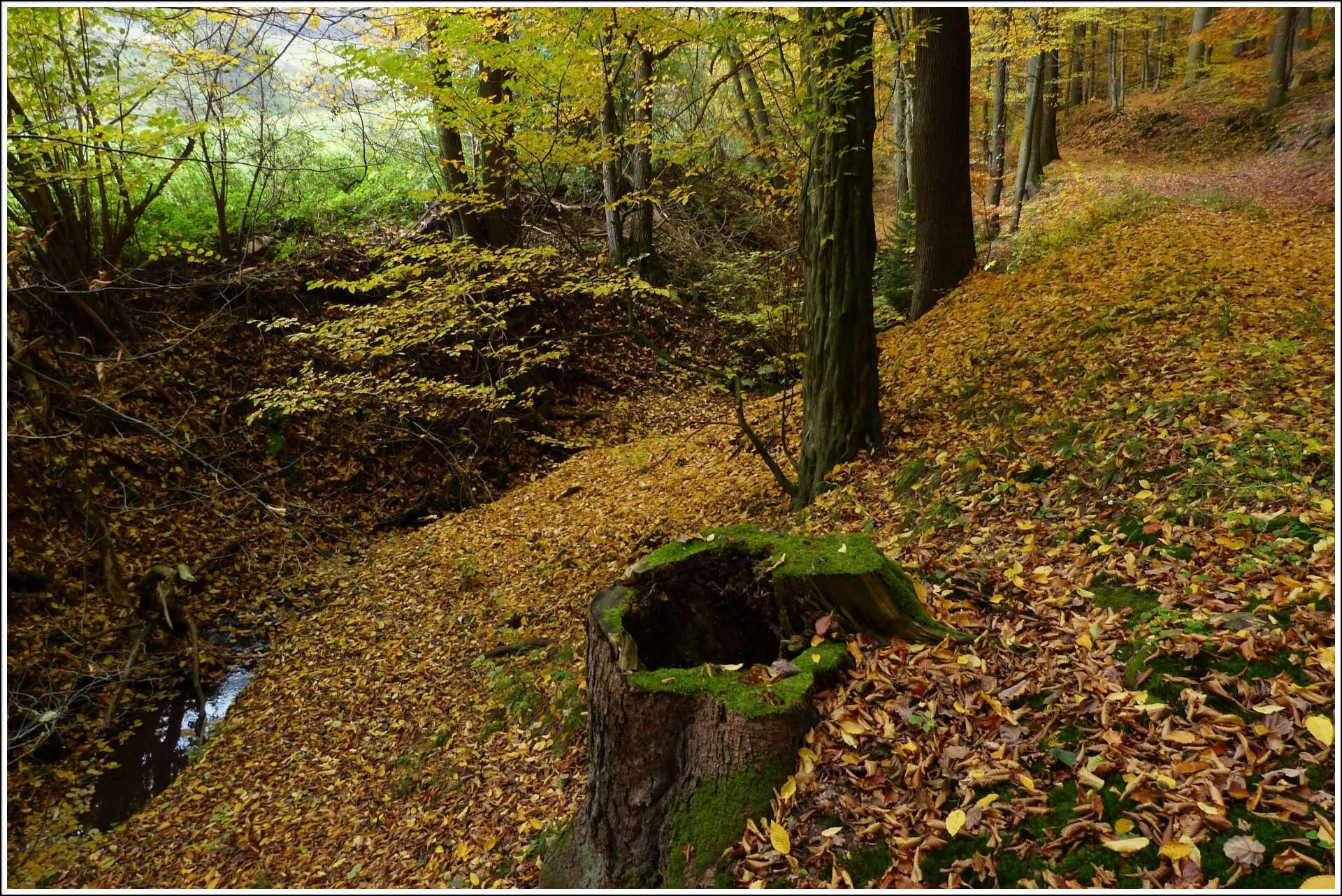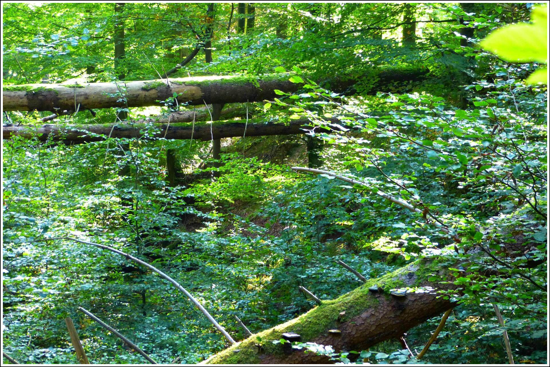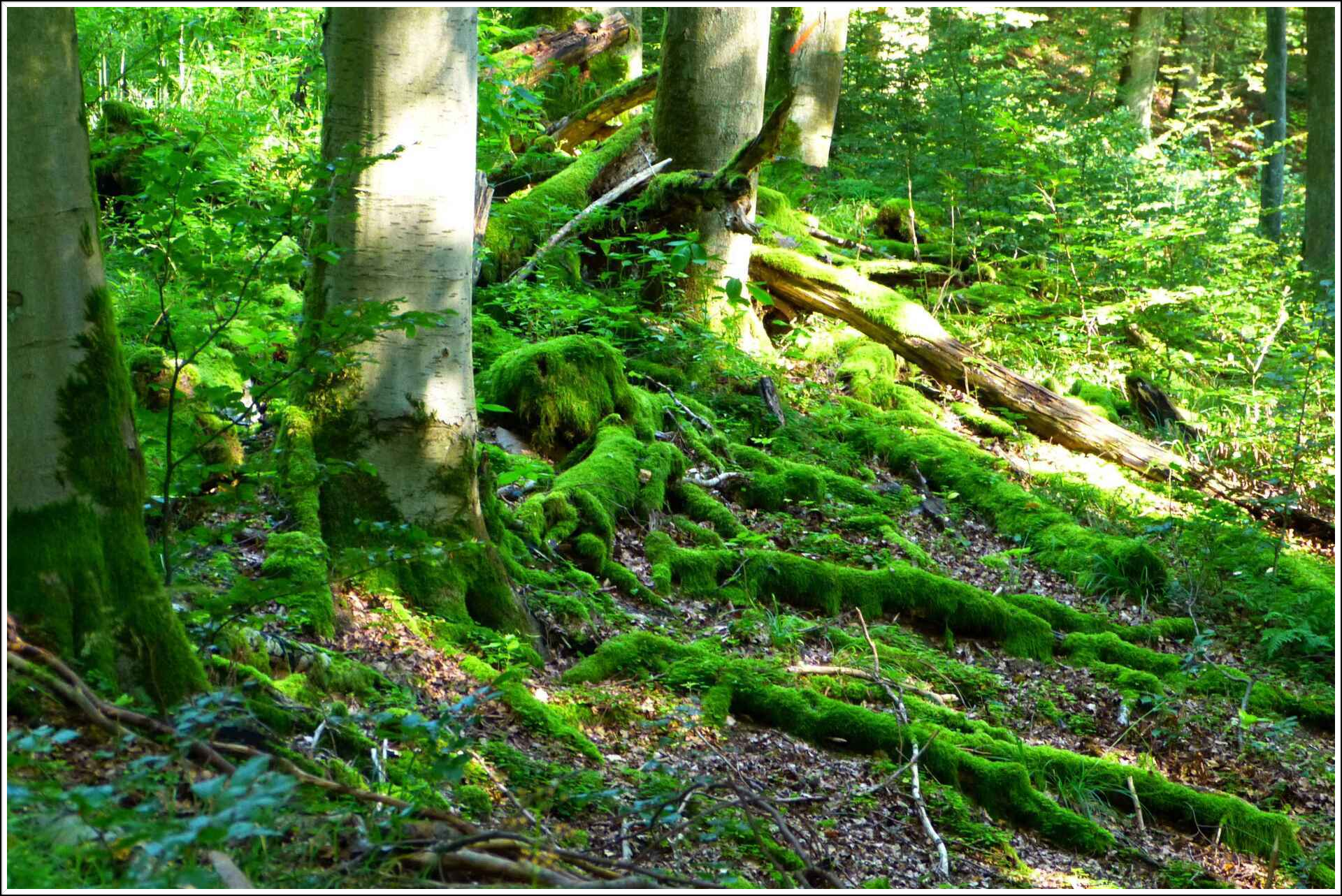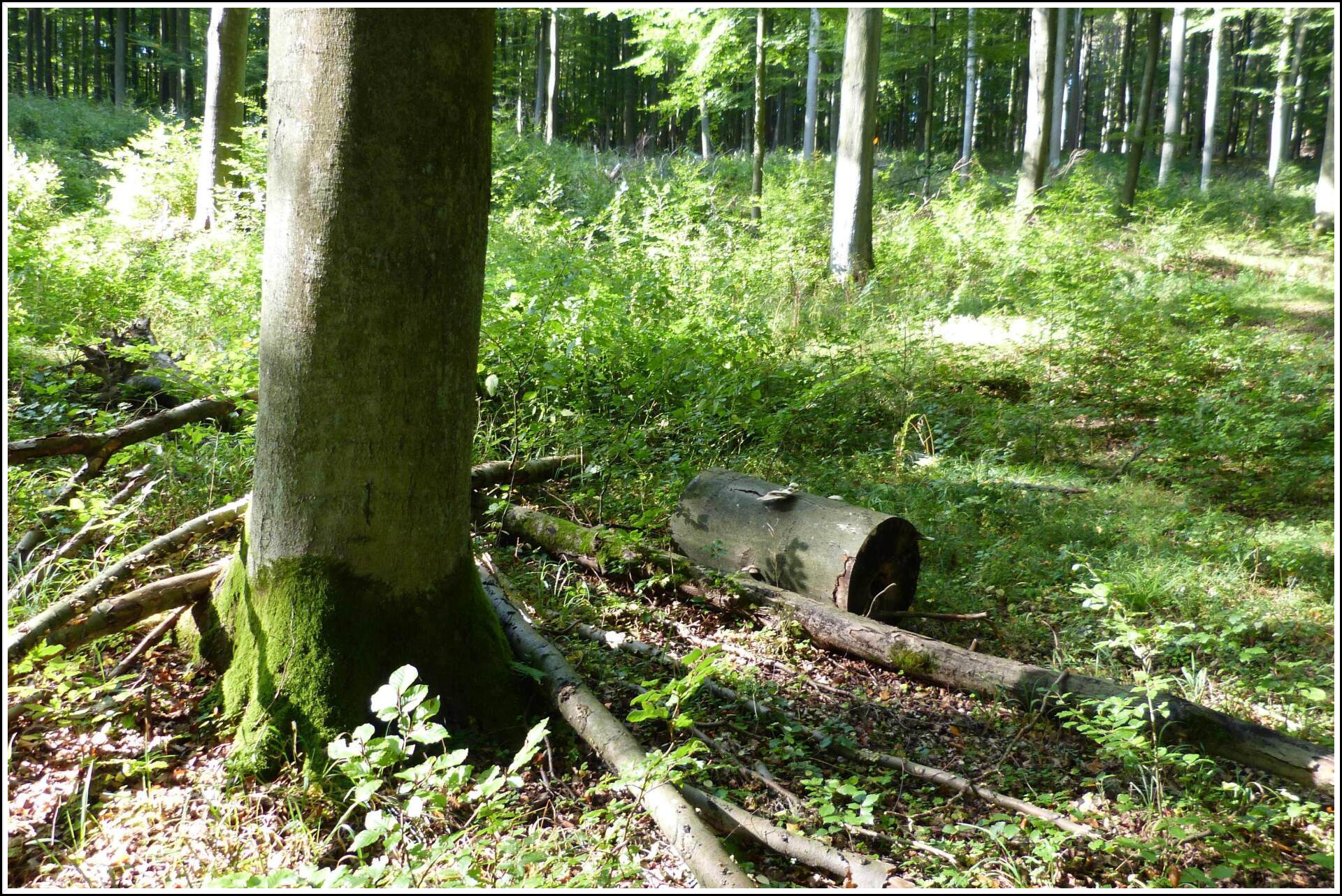Oben im Foto eine Zusammenfügung von zwei Fotos unten dann die echte unverfälschte Umgebung.Damals war der Waldweg noch unbewachsen.Heute 2021 ist sehr viel zugewachsen mit jungen Buchen und einige schwere Fichten sind zerschmettert worden und liegen quer über diesen ehemaligen guten Waldweg entlang des Lohrbachs.Hier geht praktisch der berühmte "Niemand" entlang außer ich selber.