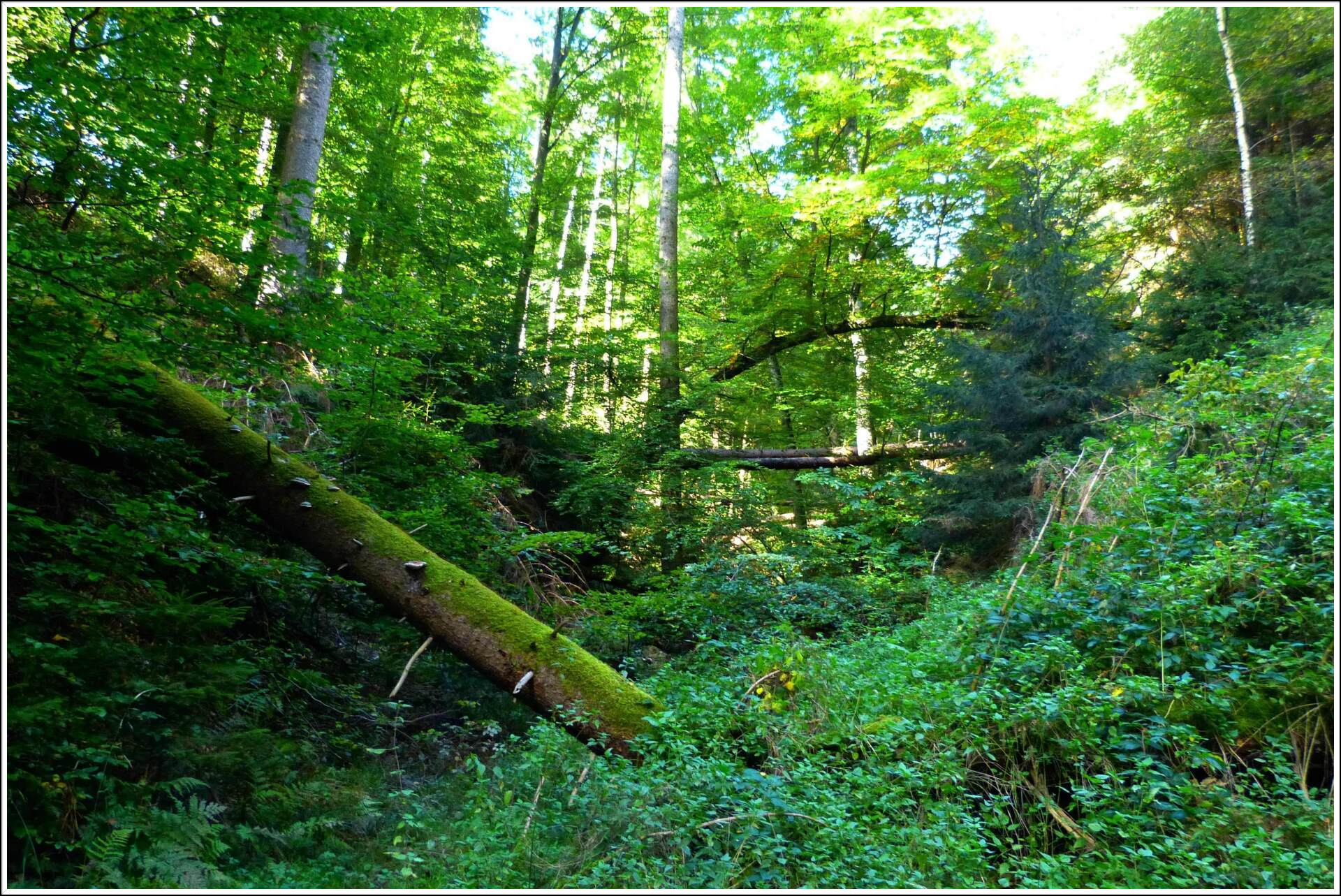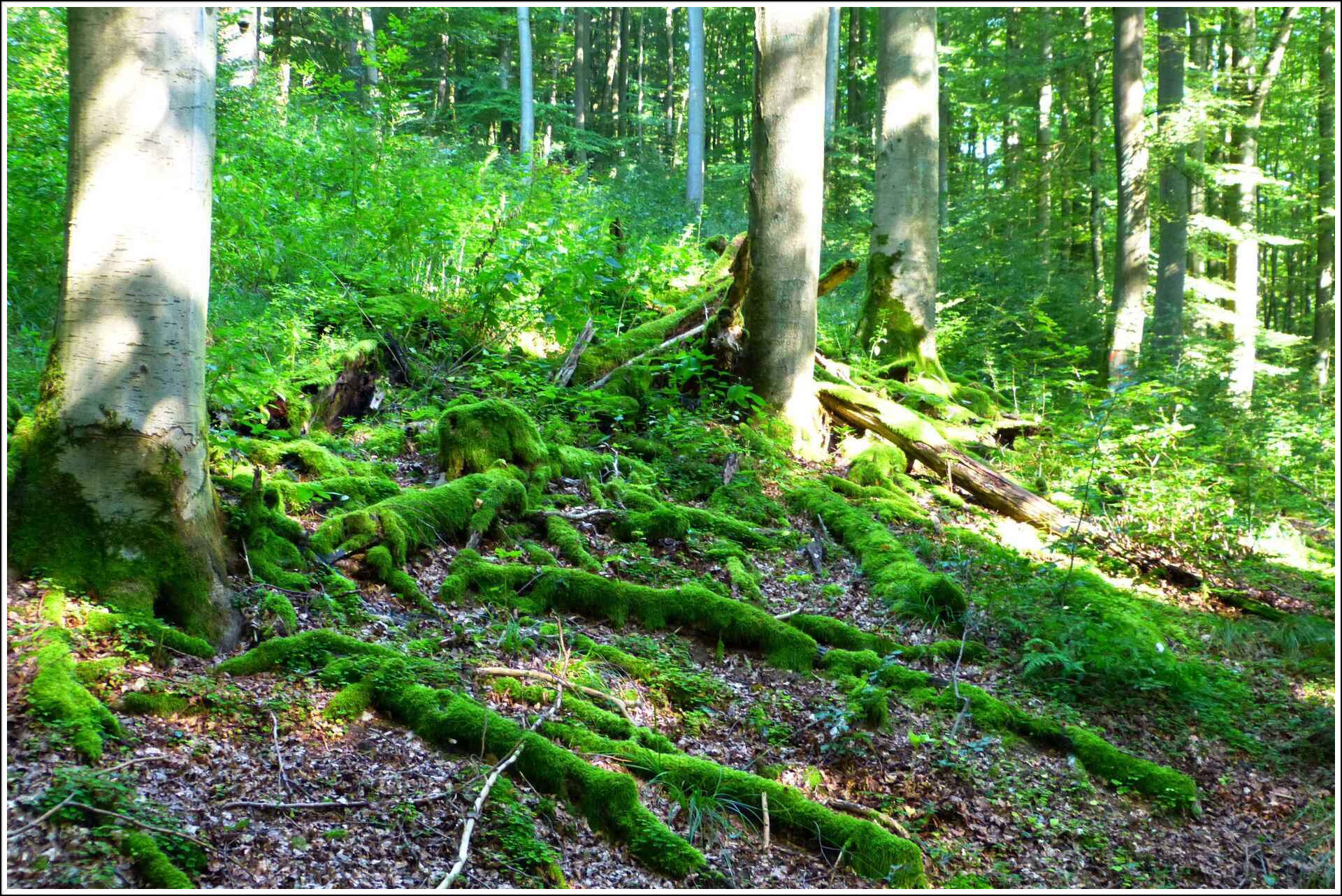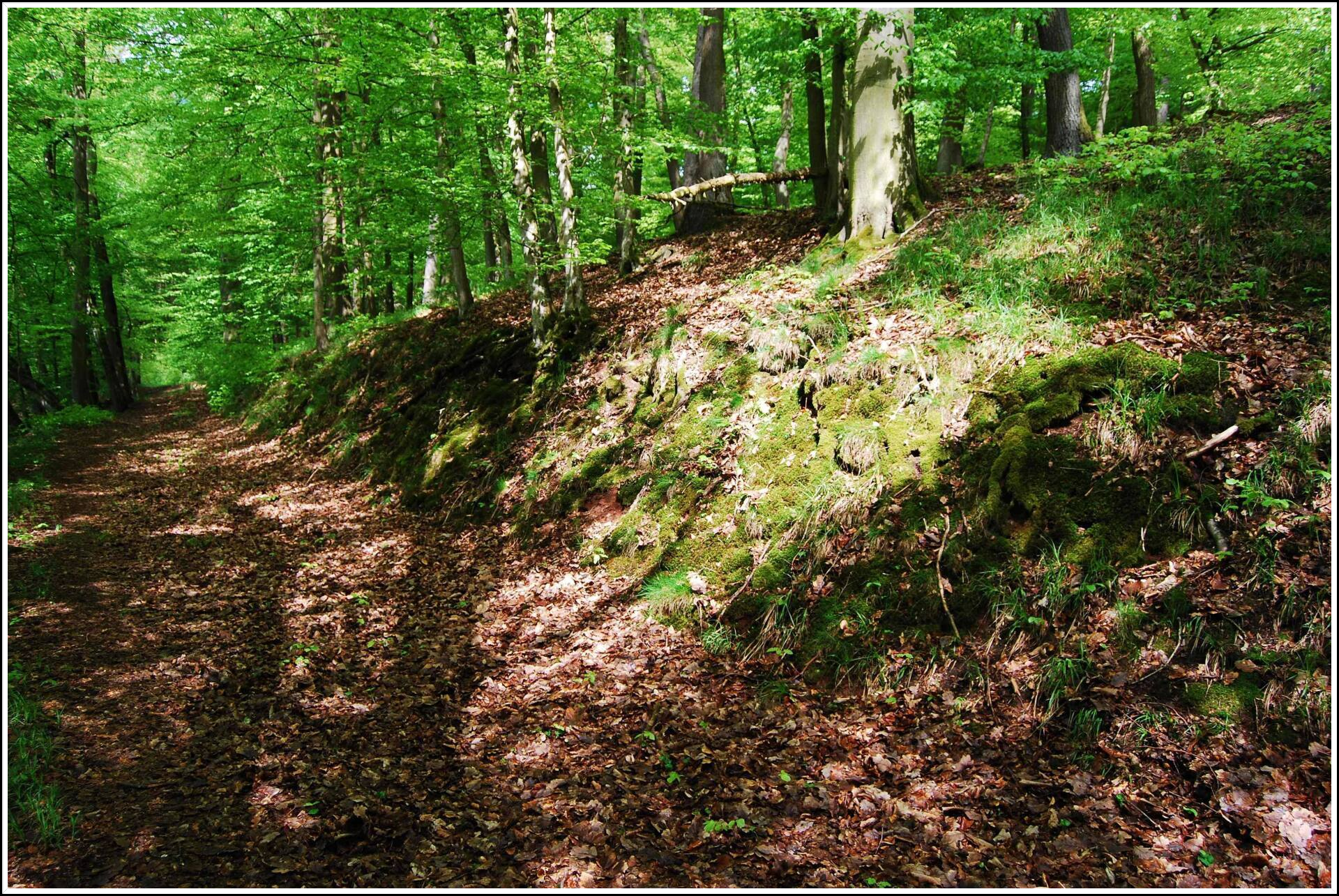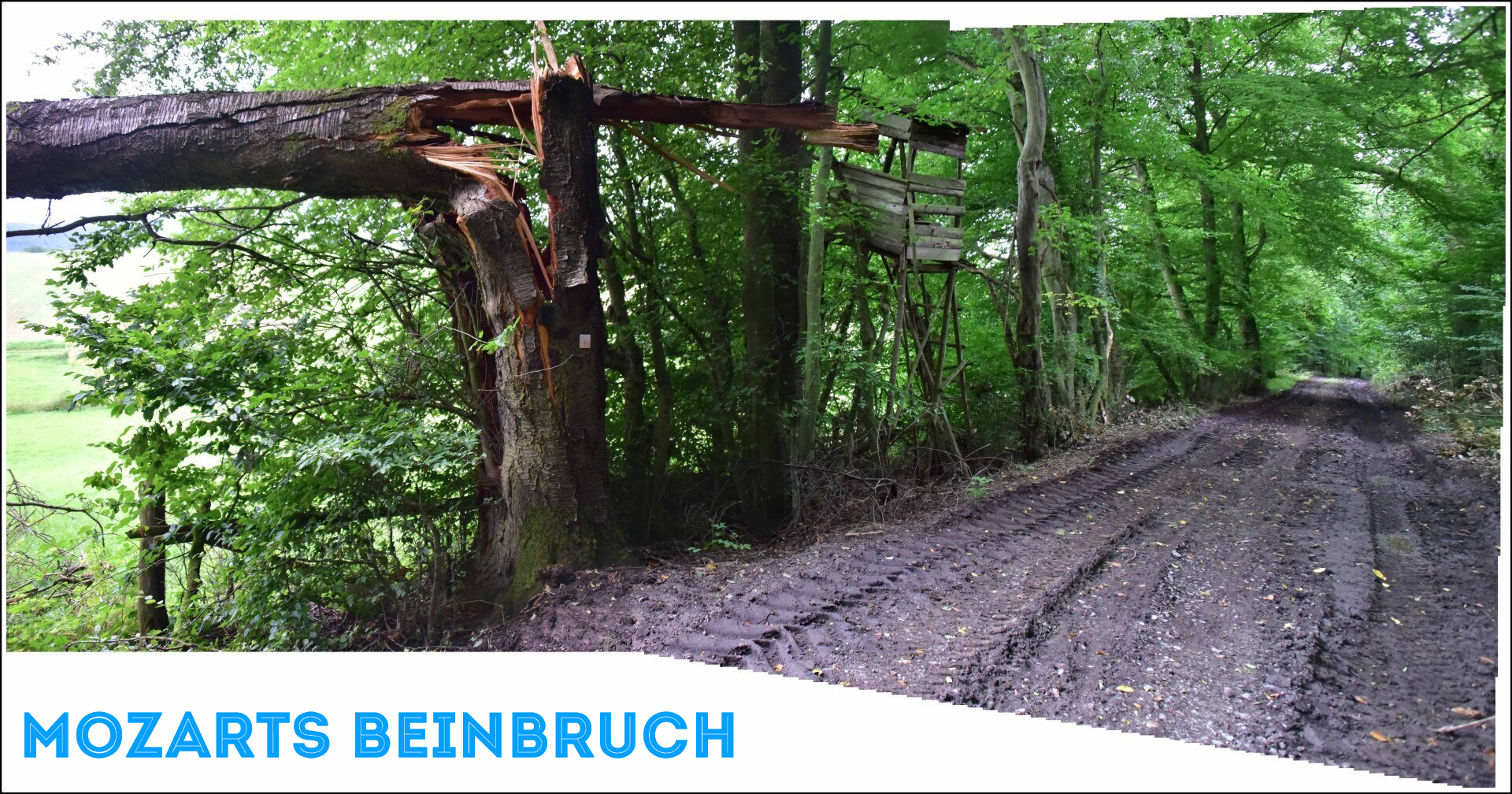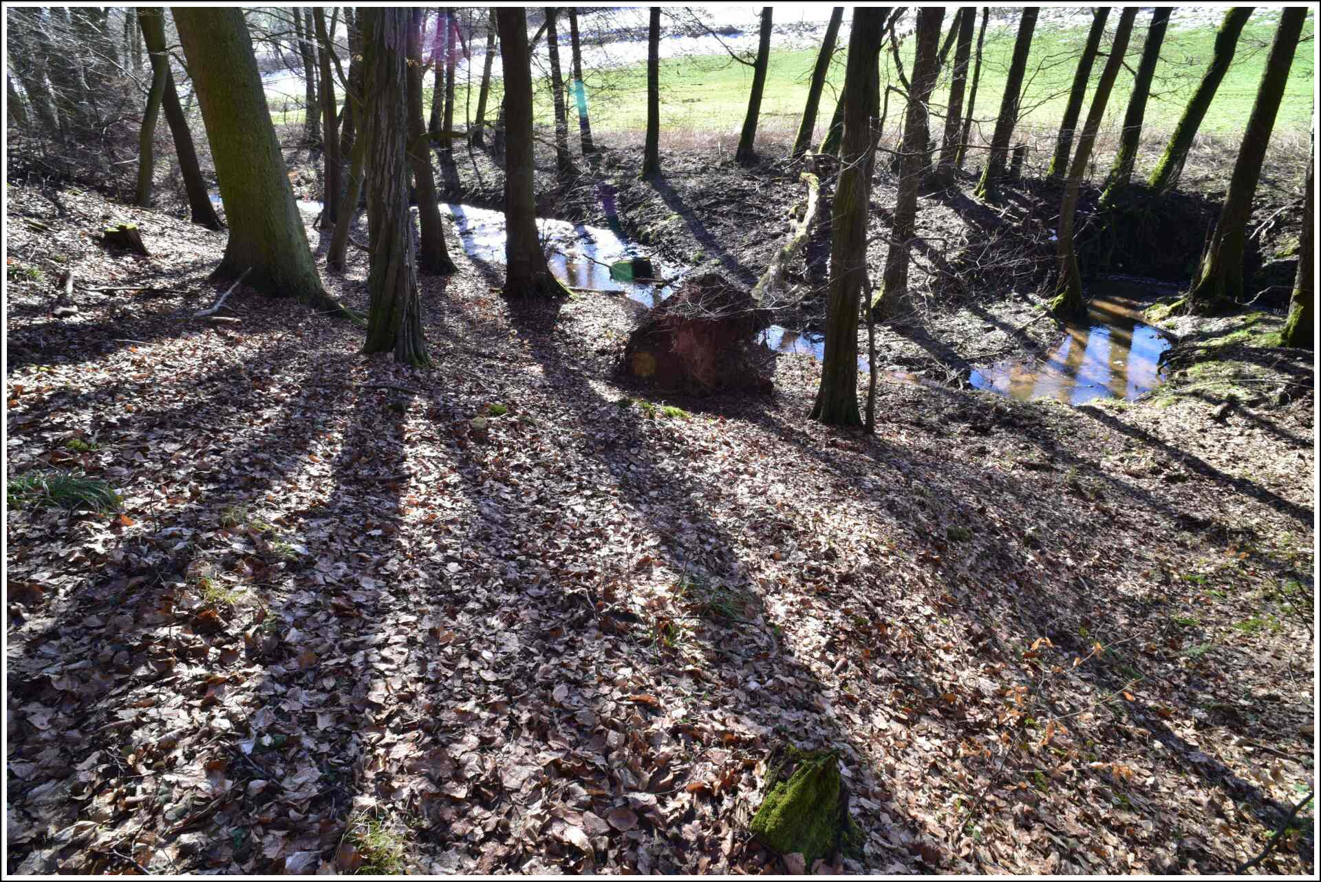 Oben im Foto eine Zusammenfügung von zwei Fotos unten dann die echte unverfälschte Umgebung.Damals war der Waldweg noch unbewachsen.Heute 2021 ist sehr viel zugewachsen mit jungen Buchen und einige schwere Fichten sind zerschmettert worden und liegen quer über diesen ehemaligen guten Waldweg entlang des Lohrbachs.Hier geht praktisch der berühmte "Niemand" entlang außer ich selber.