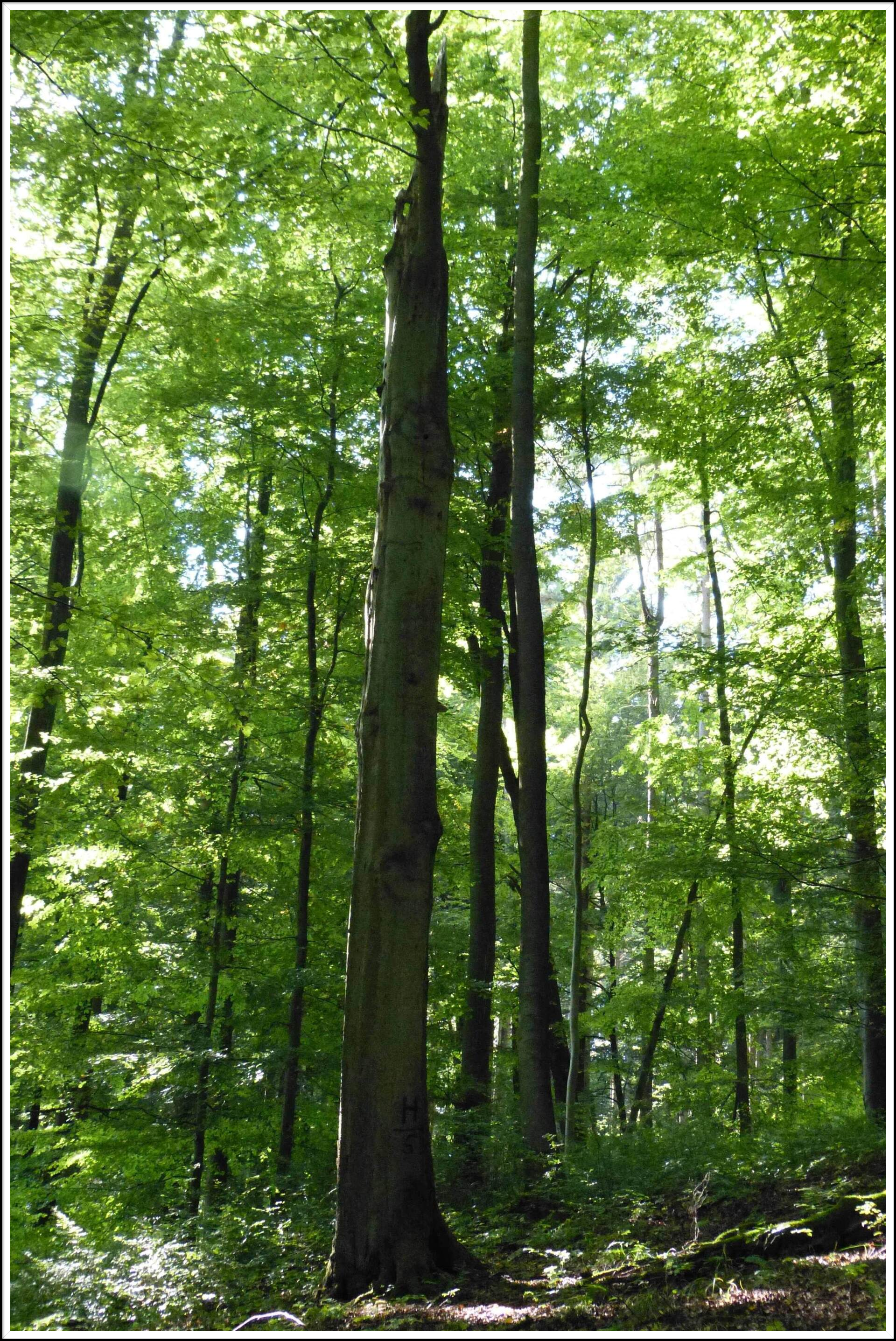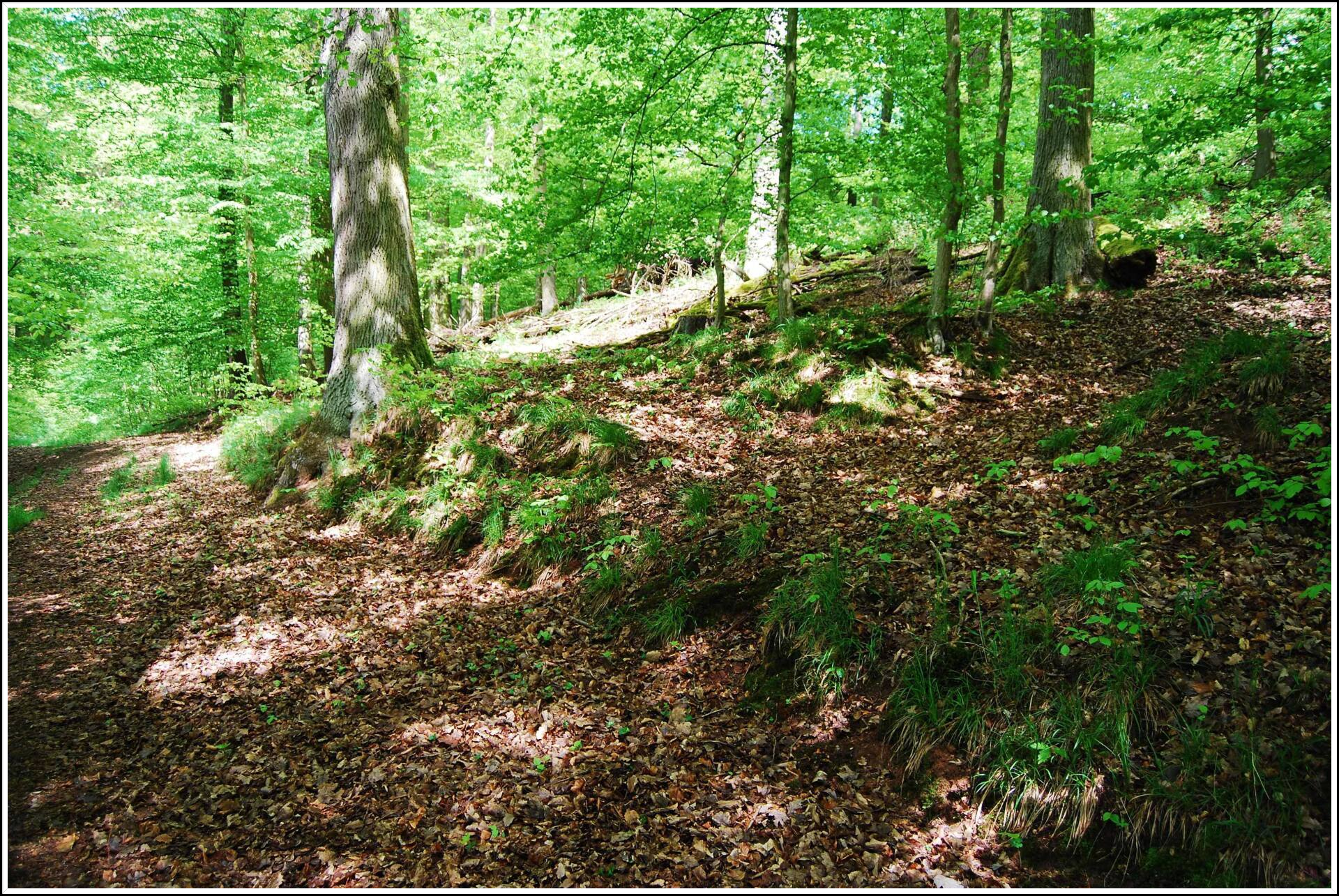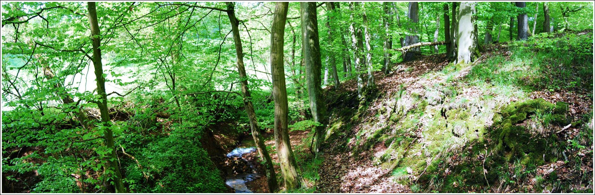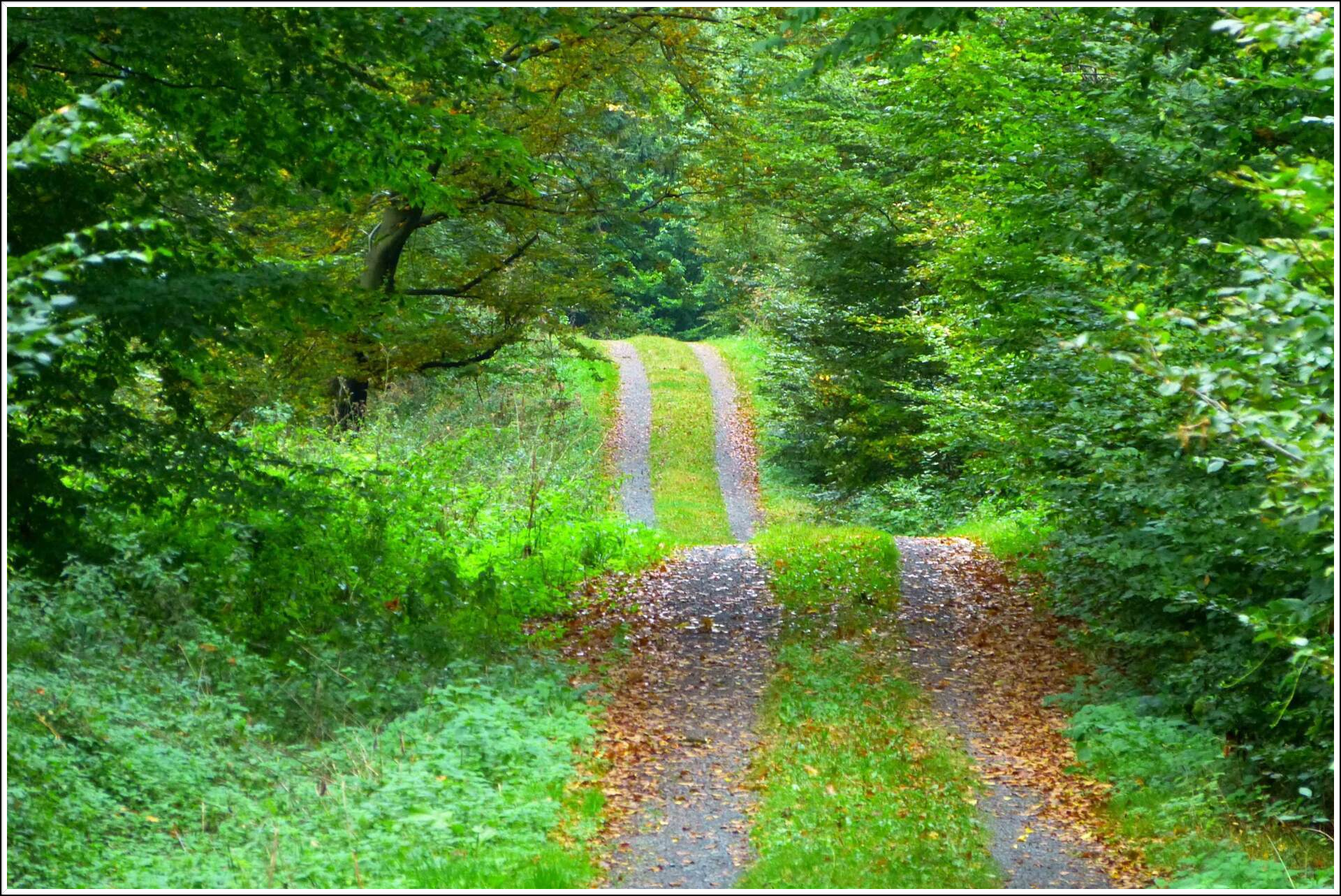 Oben im Foto eine Zusammenfügung von zwei Fotos unten dann die echte unverfälschte Umgebung.Damals war der Waldweg noch unbewachsen.Heute 2021 ist sehr viel zugewachsen mit jungen Buchen und einige schwere Fichten sind zerschmettert worden und liegen quer über diesen ehemaligen guten Waldweg entlang des Lohrbachs.Hier geht praktisch der berühmte "Niemand" entlang außer ich selber.