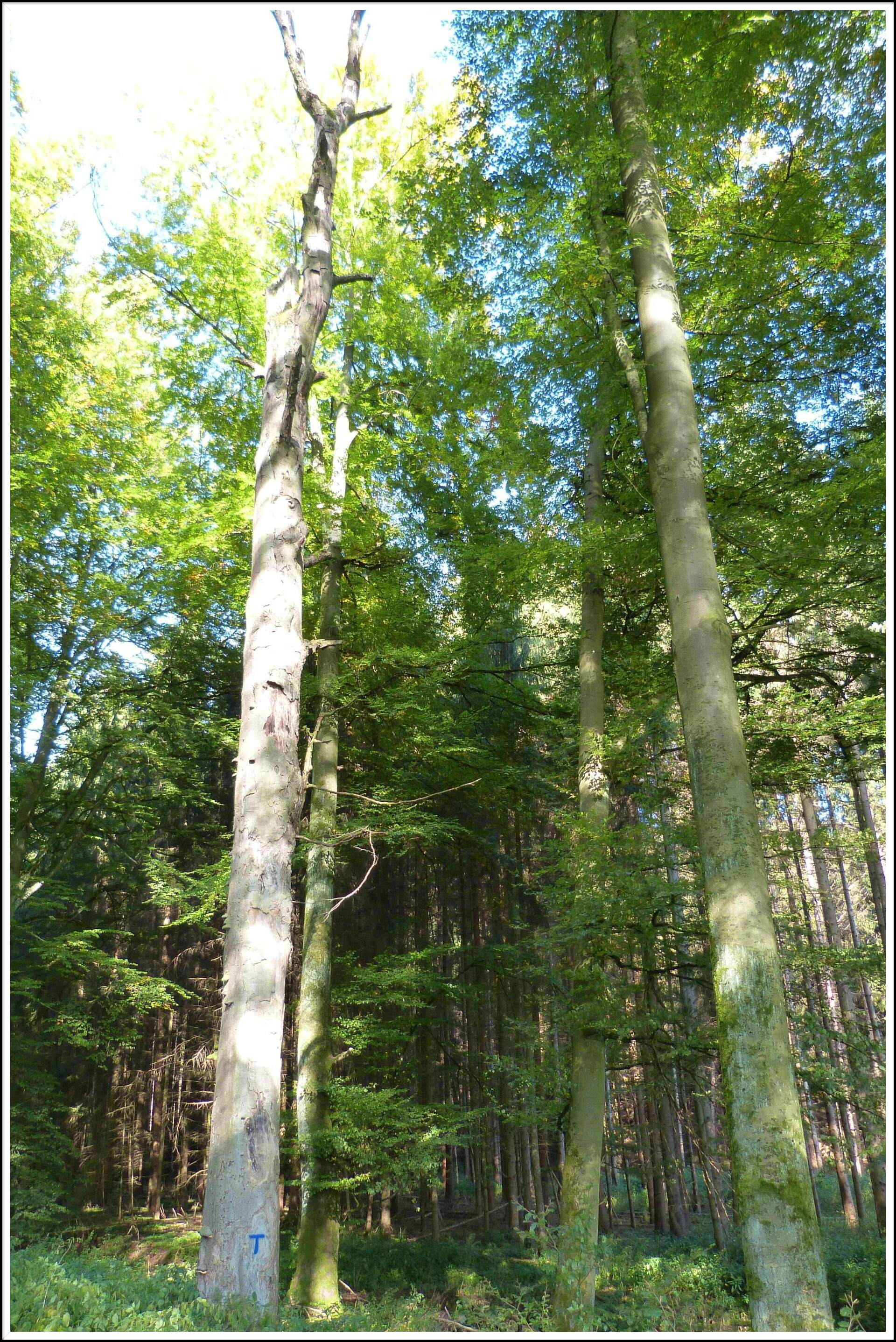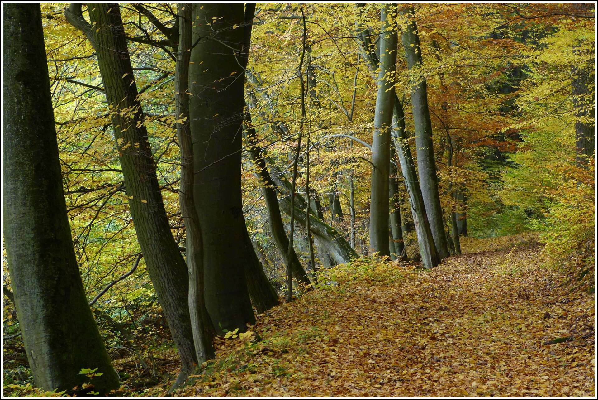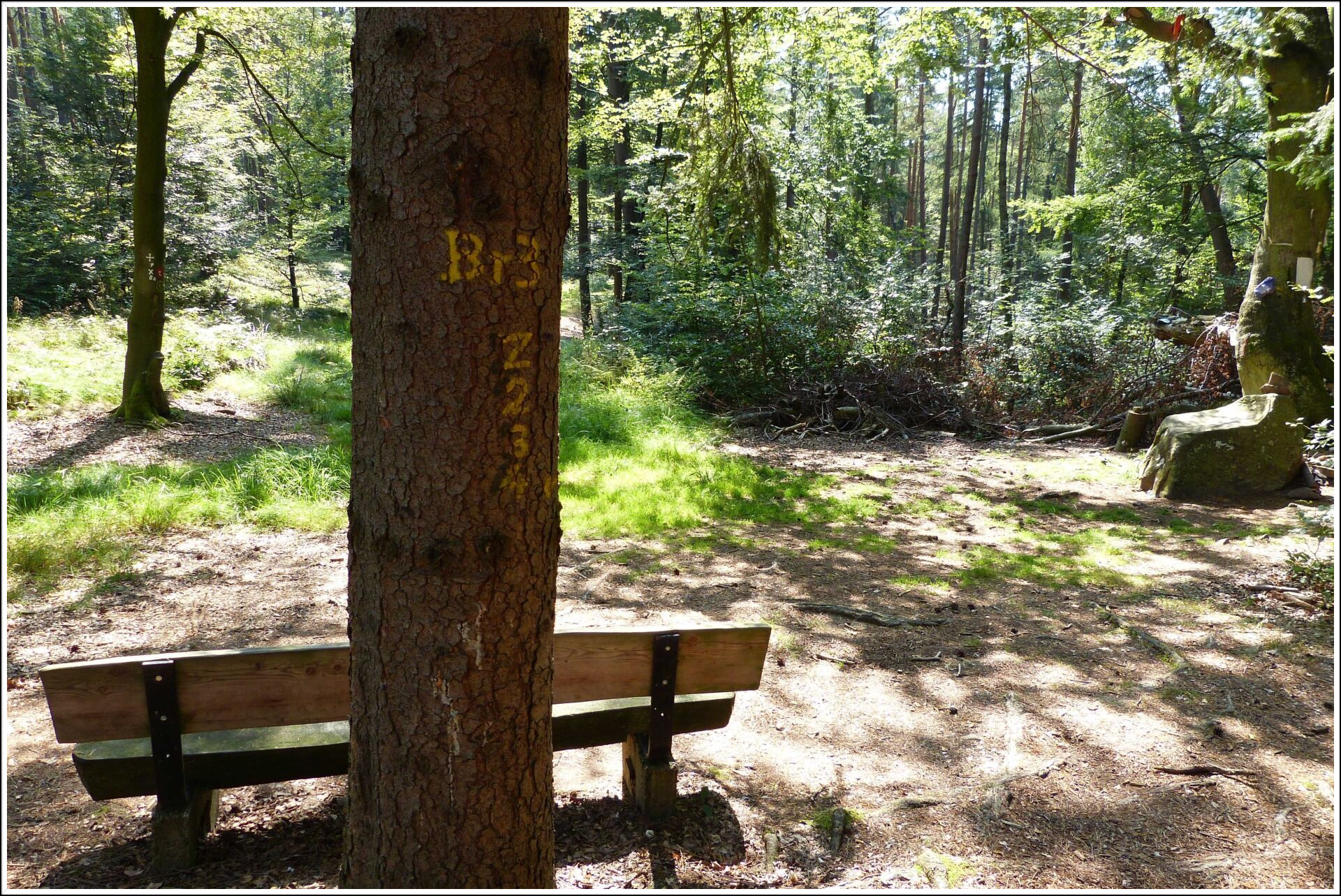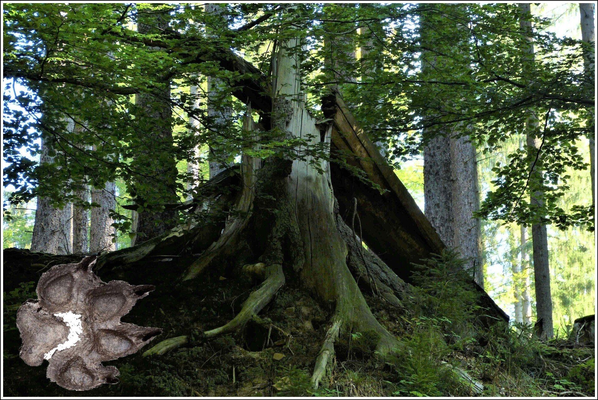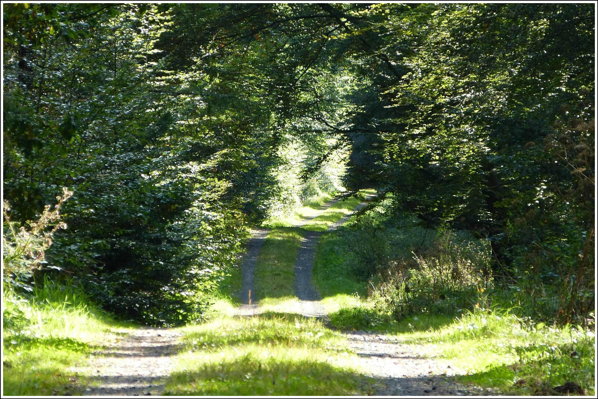 Oben im Foto eine Zusammenfügung von zwei Fotos unten dann die echte unverfälschte Umgebung.Damals war der Waldweg noch unbewachsen.Heute 2021 ist sehr viel zugewachsen mit jungen Buchen und einige schwere Fichten sind zerschmettert worden und liegen quer über diesen ehemaligen guten Waldweg entlang des Lohrbachs.Hier geht praktisch der berühmte "Niemand" entlang außer ich selber.