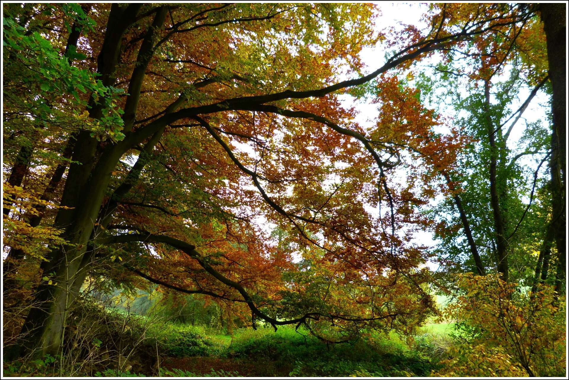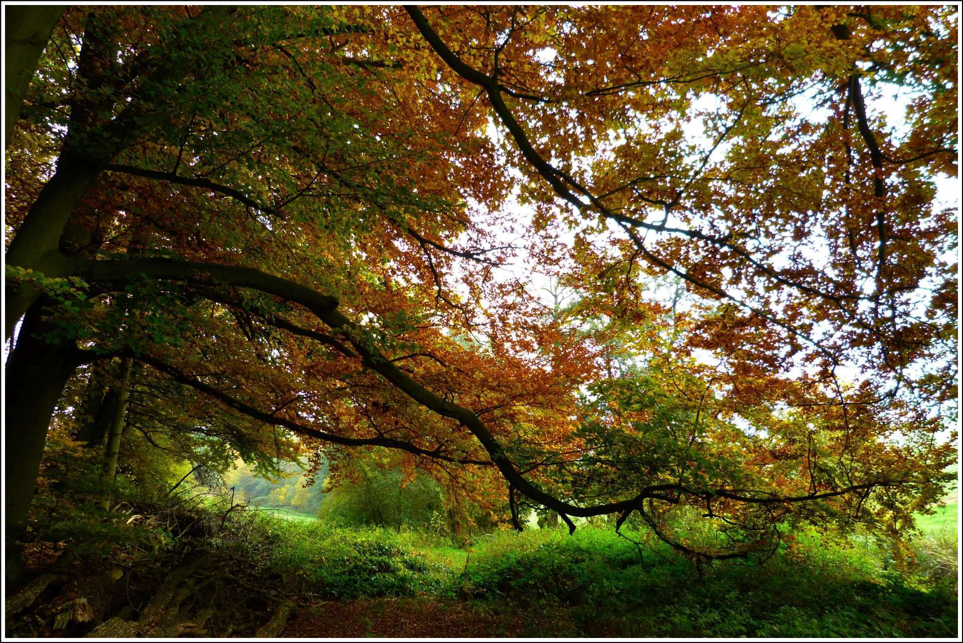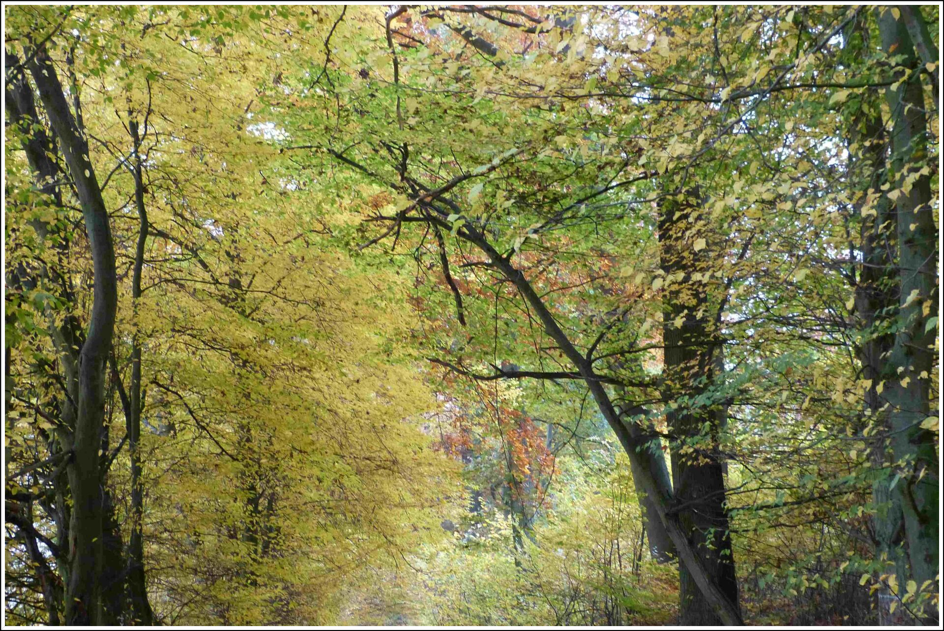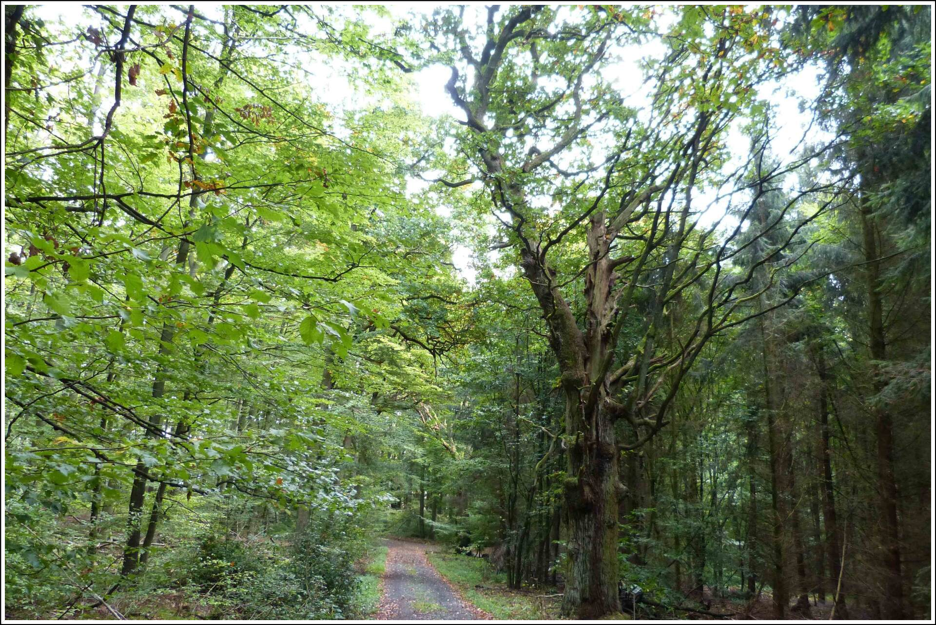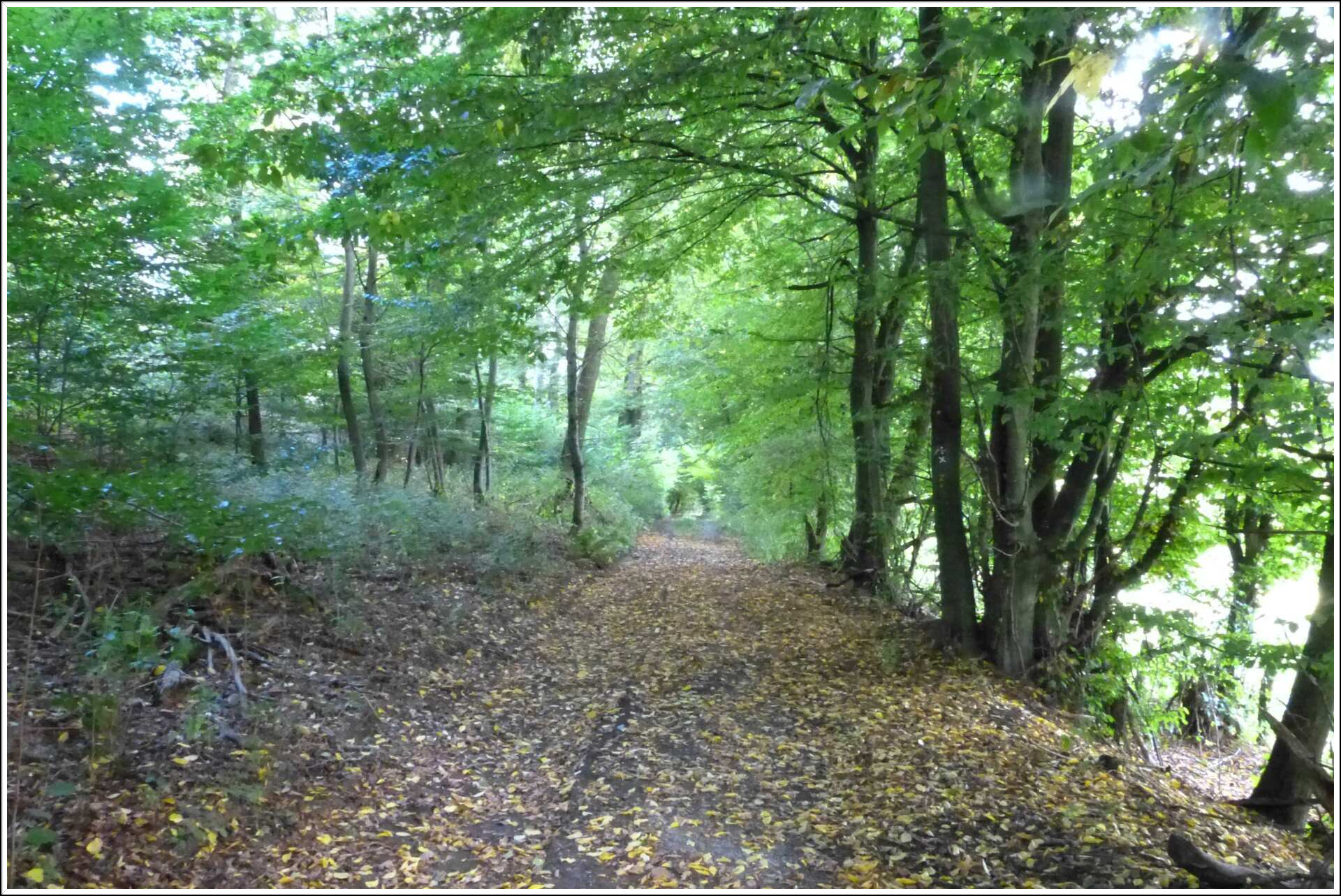 Oben im Foto eine Zusammenfügung von zwei Fotos unten dann die echte unverfälschte Umgebung.Damals war der Waldweg noch unbewachsen.Heute 2021 ist sehr viel zugewachsen mit jungen Buchen und einige schwere Fichten sind zerschmettert worden und liegen quer über diesen ehemaligen guten Waldweg entlang des Lohrbachs.Hier geht praktisch der berühmte "Niemand" entlang außer ich selber.