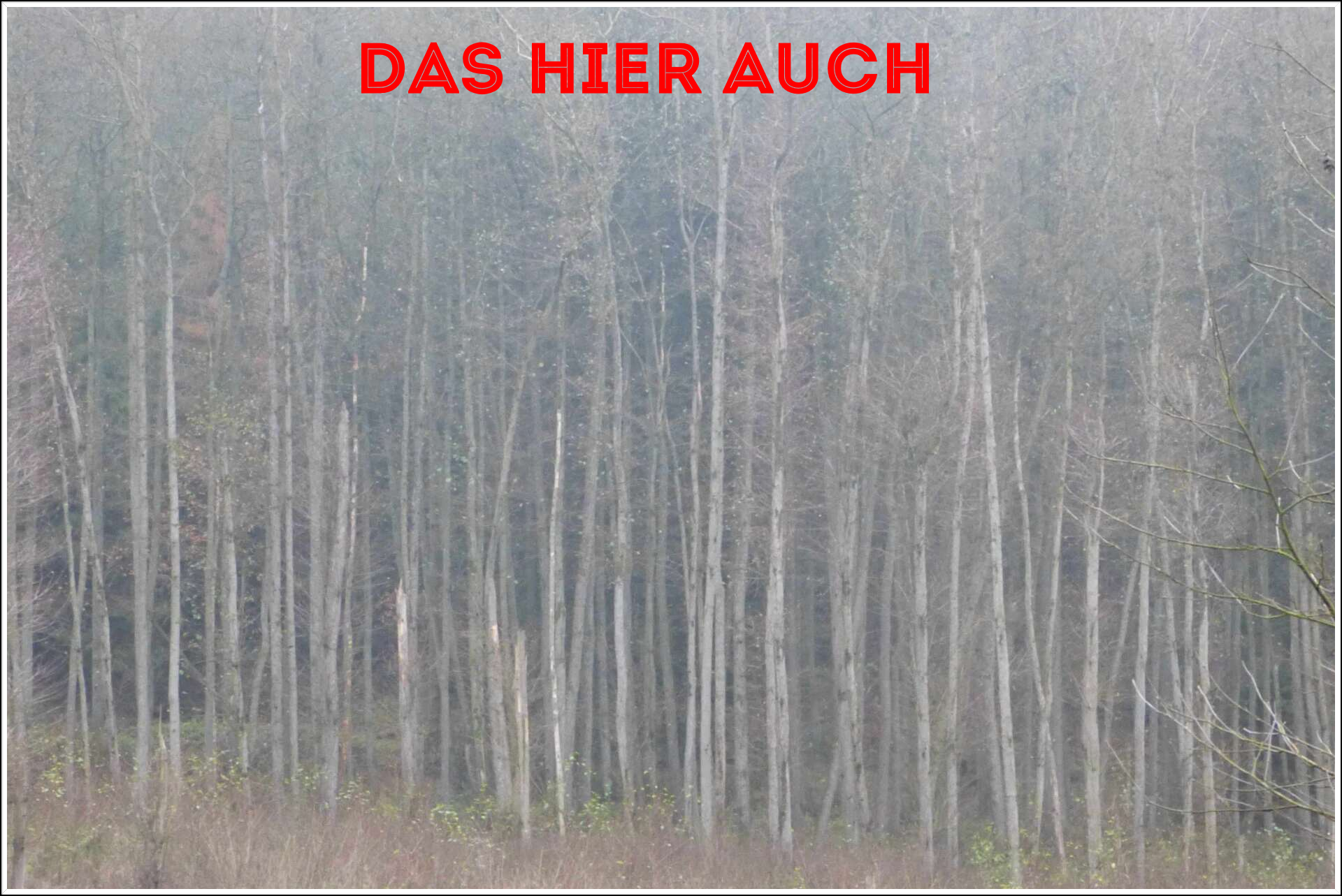 Auf dieser Seite ist eine Mischung aus Fotos Kollagen Doppelbelichtungen vom LohrBach und seinen LebeWesen die an und um ihn leben schreien rasen schlängeln oder wie die Kraniche Kranichen im hohen Flug über das Schwalm Eder Ländle. Im LangLauf der Lebensjahre hat sich die Natur verändern müssen wegen menschlicher Murks oder Wissenschaftsmurksereien und auch politischer Entscheidungen die dem Arbeitsplatzerhalten und anderen Dilemma Gehirn Strukturen passierten. Heute 2021 ist der Klima Wandel der Menschen gemachte gut sichtbar. Viele der Bäume und Waldstrecken die ich noch fotografierte sind längst abgeholzt wegen Borken und seinem Borkenkäfer. Und auch der Aussichtsturm an der AltenBurg ist seit einigen Monaten wieder sichtbar. Er war sichtbar als ich in diese Gegend zog 1993 und die schnell wachsenden Fichten um seinen Gipfel herum verdeckten nach einigen Jahren dann die Sicht auf den Altenburg Aussichtsturm. Bis dann der BorkenKäfer der gute der den Wald wieder renaturiert diese Fichten in den trocken Jahren erledigte und die Sicht wieder auf den Aussichtsturm gegeben war. Der LohrBach hatte zwischendurch schon sehr enge Wasser Verhältnisse und sämtliche natürlichen Winzlings Bachforellen sind nicht mehr vorhanden. Die es auch nur auf einer gewissen Strecke des LohrBachs gab. Der Tiefenbach der Zufluss des LohrBachs hat überhaupt keine Bachforellen. Er ist inzwischen auch mehr ein leeres BachBett und kein Wasserbehälter durch die heißen Sommer ist er erledigt worden.Außer heute 2021 da trägt das Bachbett wieder Wasser hinunter in den Lohrbach.