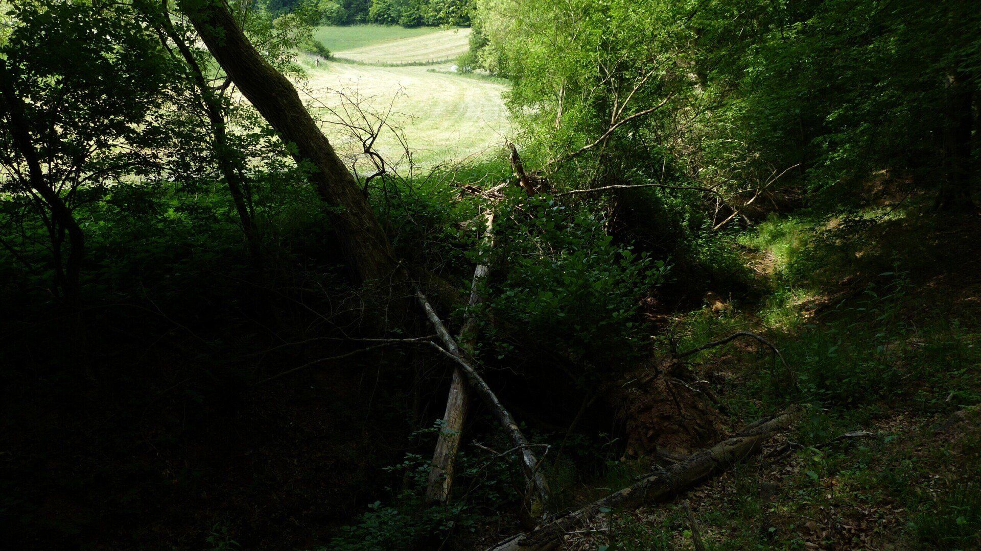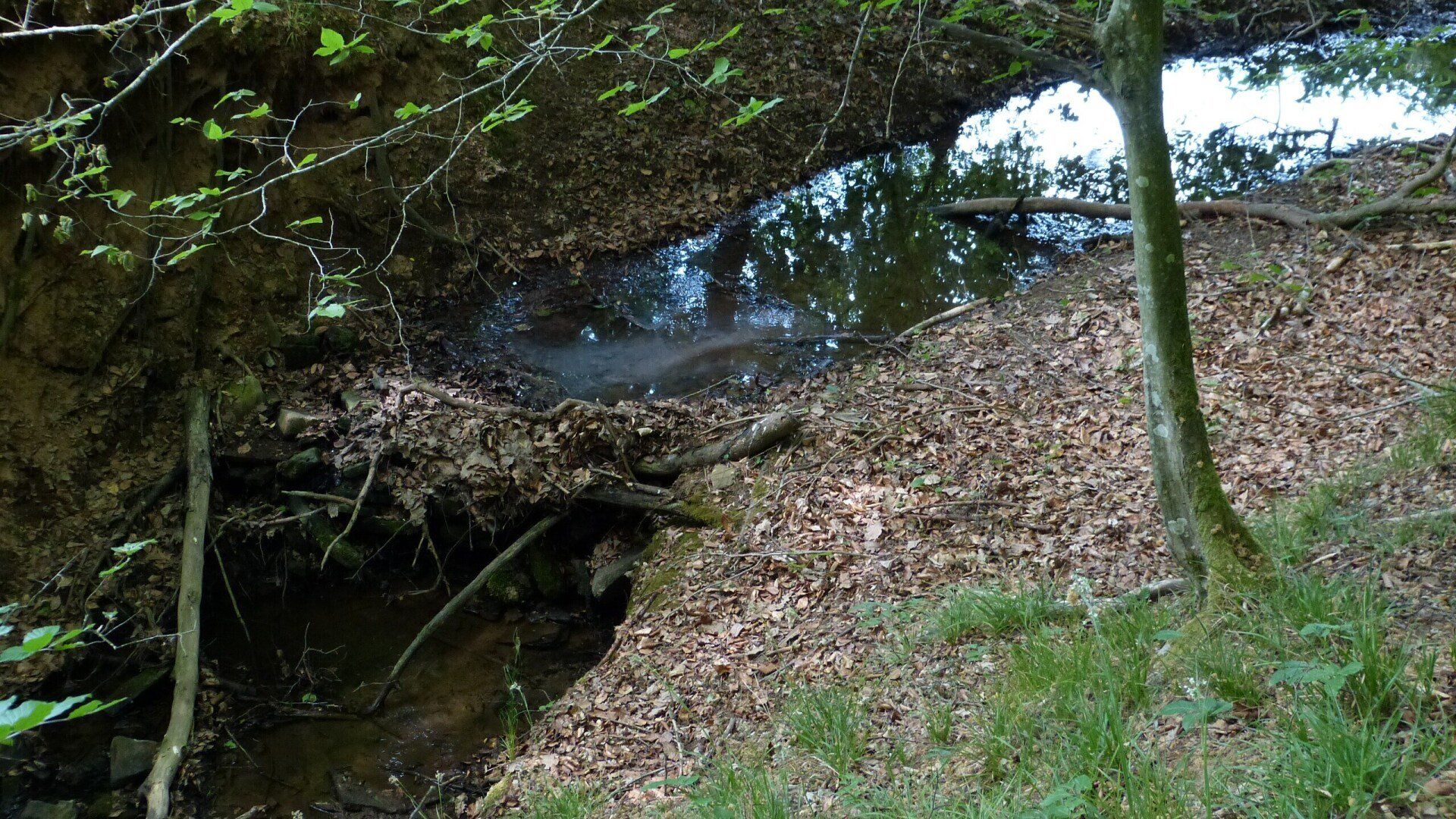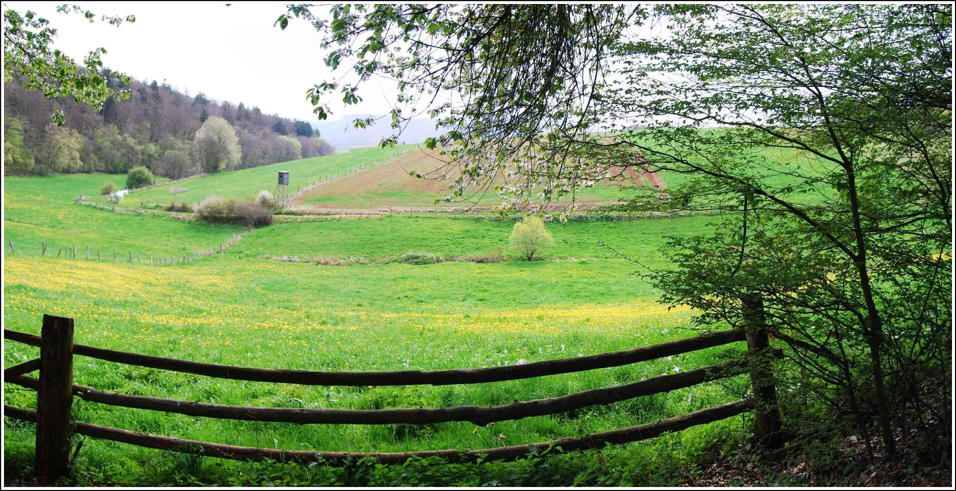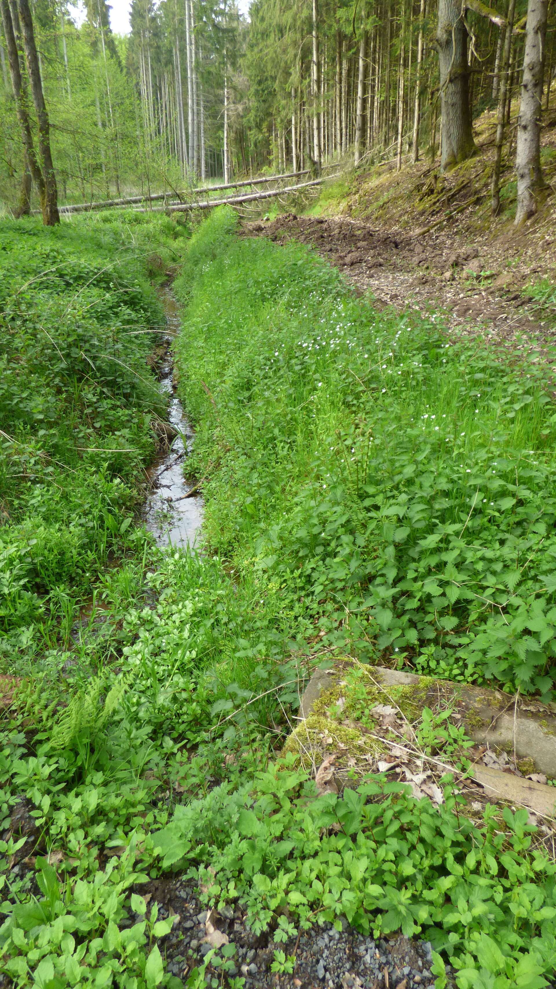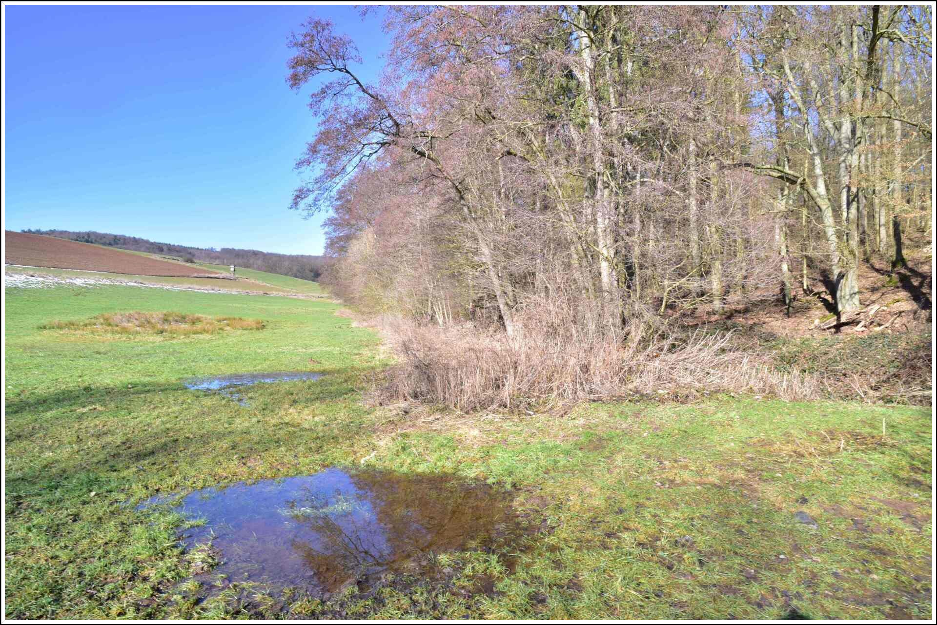 Dort auf der Wiese fängt der Lohrbach an Wasser zu sammeln und wird dann der Bach