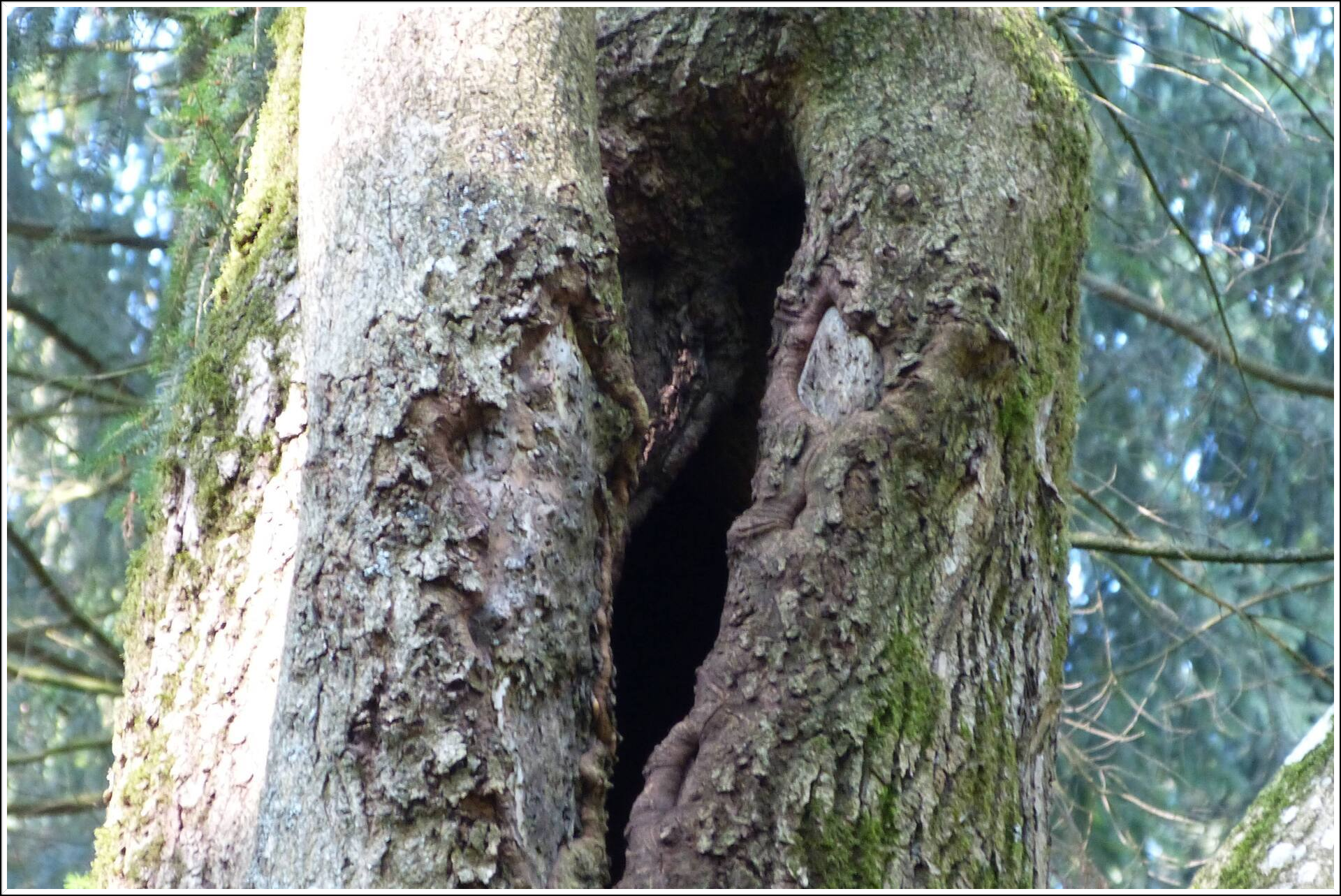 Der Stamm sah so aus als ob ein Gigatwister sich den Baum einverleibt hatte und ihn sehr stark nach links drehen wollte, was dann auch erfolgreich war. Der Baumstamm hatte mehrere sehr tiefe Risse die alle diesen Linksdrall hatten. Wirbelstürme auf der nördlichen Erdkugel haben ja auch diesen Linksdrall. Tropische Wirbelstürme der Nordhalbkugel werden Hurrikan genannt, auf der Südhalbkugel heißen sie Zyklon. Sie unterscheiden sich auch in ihrer Drehrichtung: Die so genannte Corioliskraft sorgt dafür, dass Tiefdruckgebiete auf der Südhalbkugel im Uhrzeigersinn wirbeln, auf der Nordhalbkugel gegen den Uhrzeigersinn. Und dieser sehr alte sehr große, schöne Kirschbaum war nun seinem Ende ziemlich nahe.