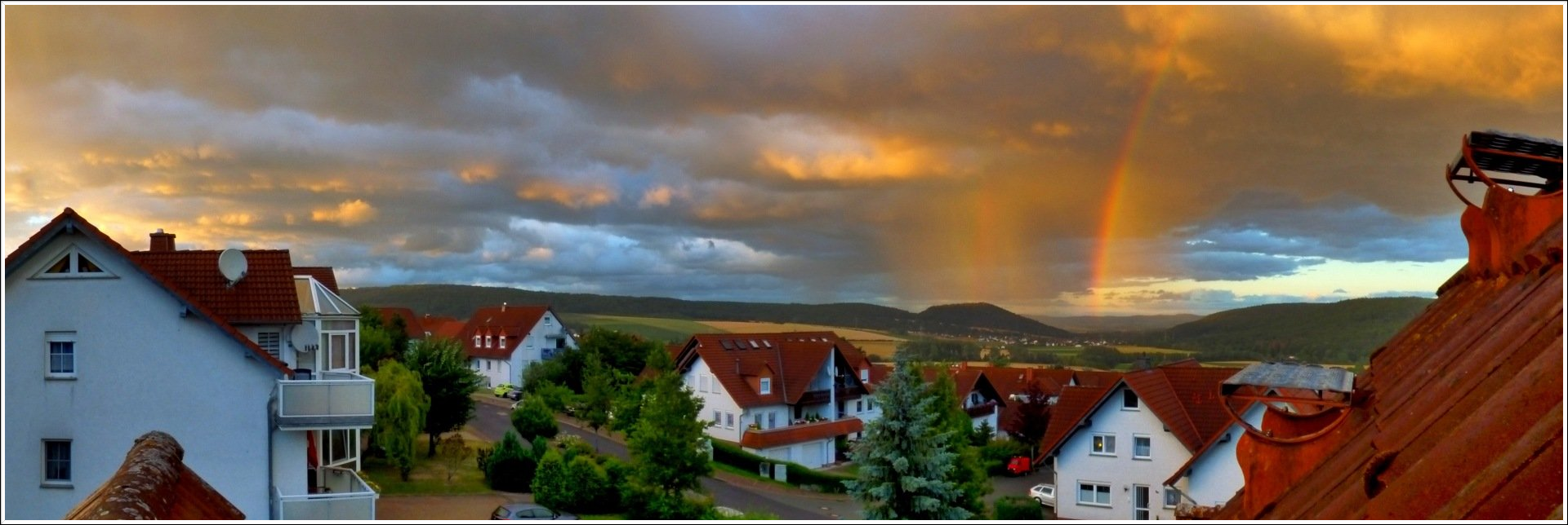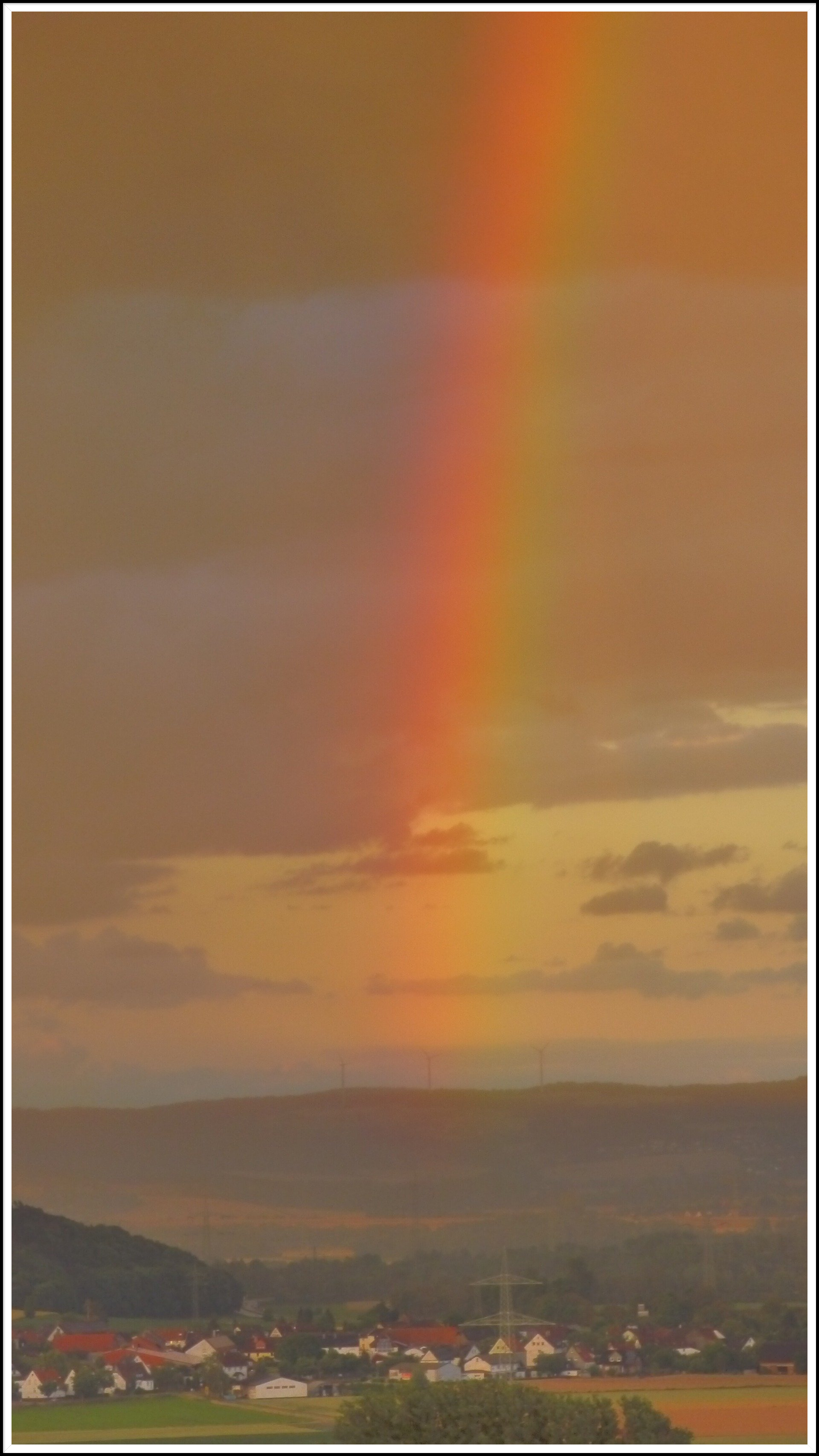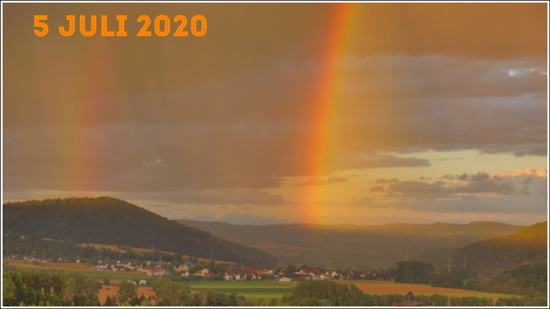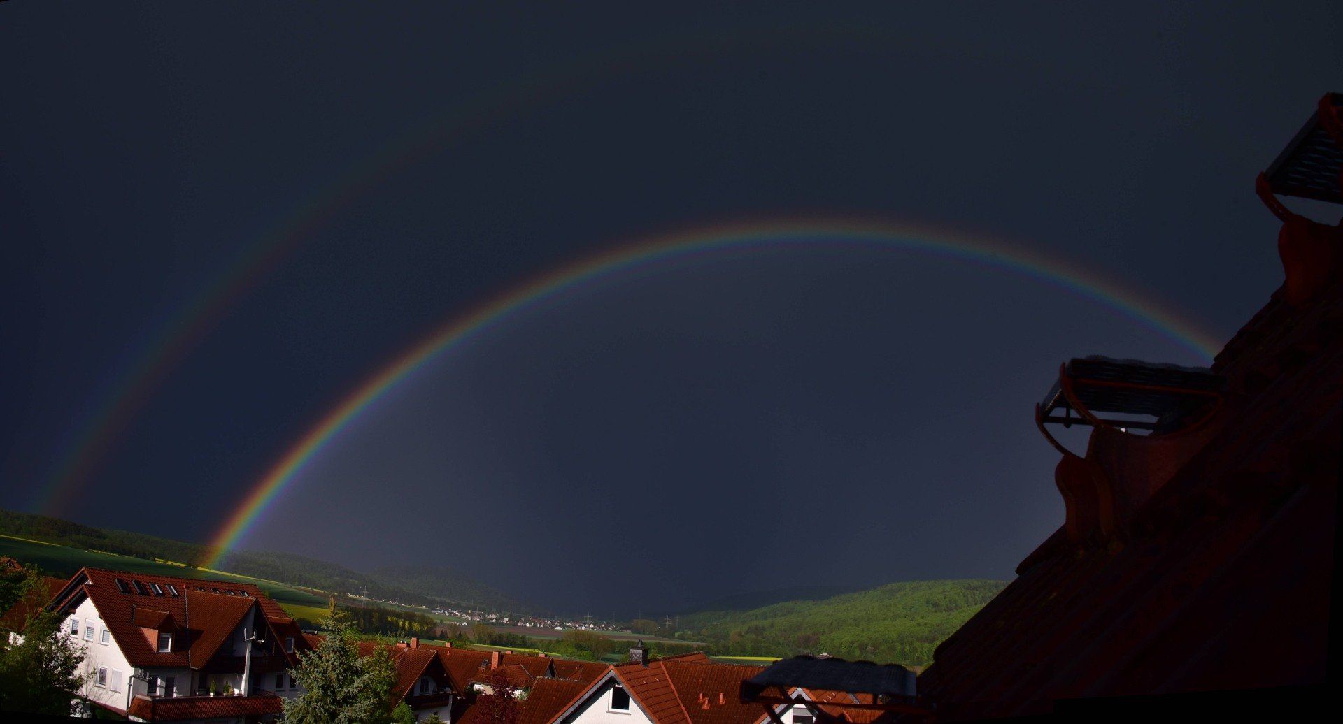 Bis dann der August Regenbogen erschien in einem dunkelblauen Hintergrund um den Abgang der Lohrbach Kirschbaum Wirbelsturm Erhabenheit zu unterstreichen