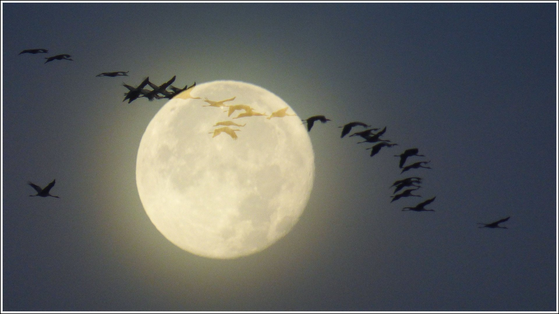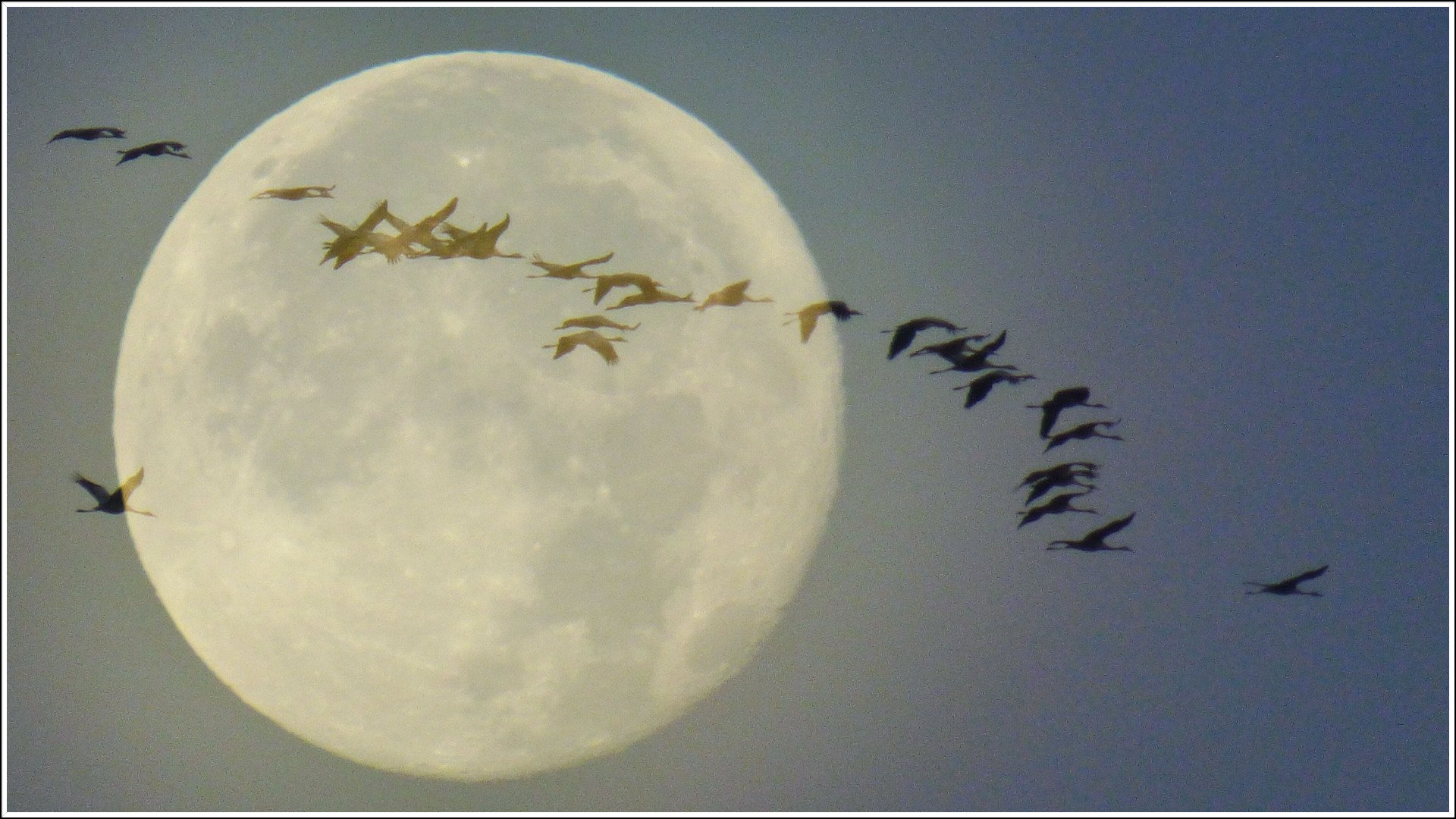Und auch die Kraniche segelten vor der Augustsonne und sangen ihren Kranich KirschbaumBlues mal Heiter mal Traurig