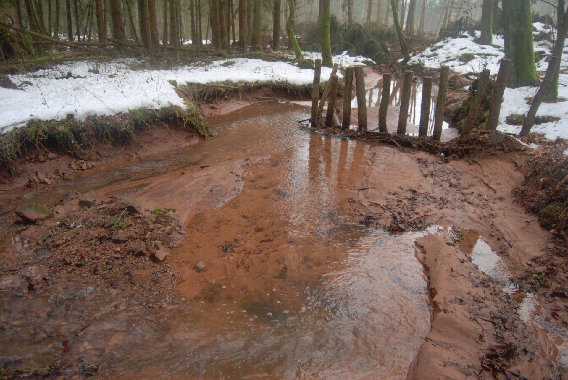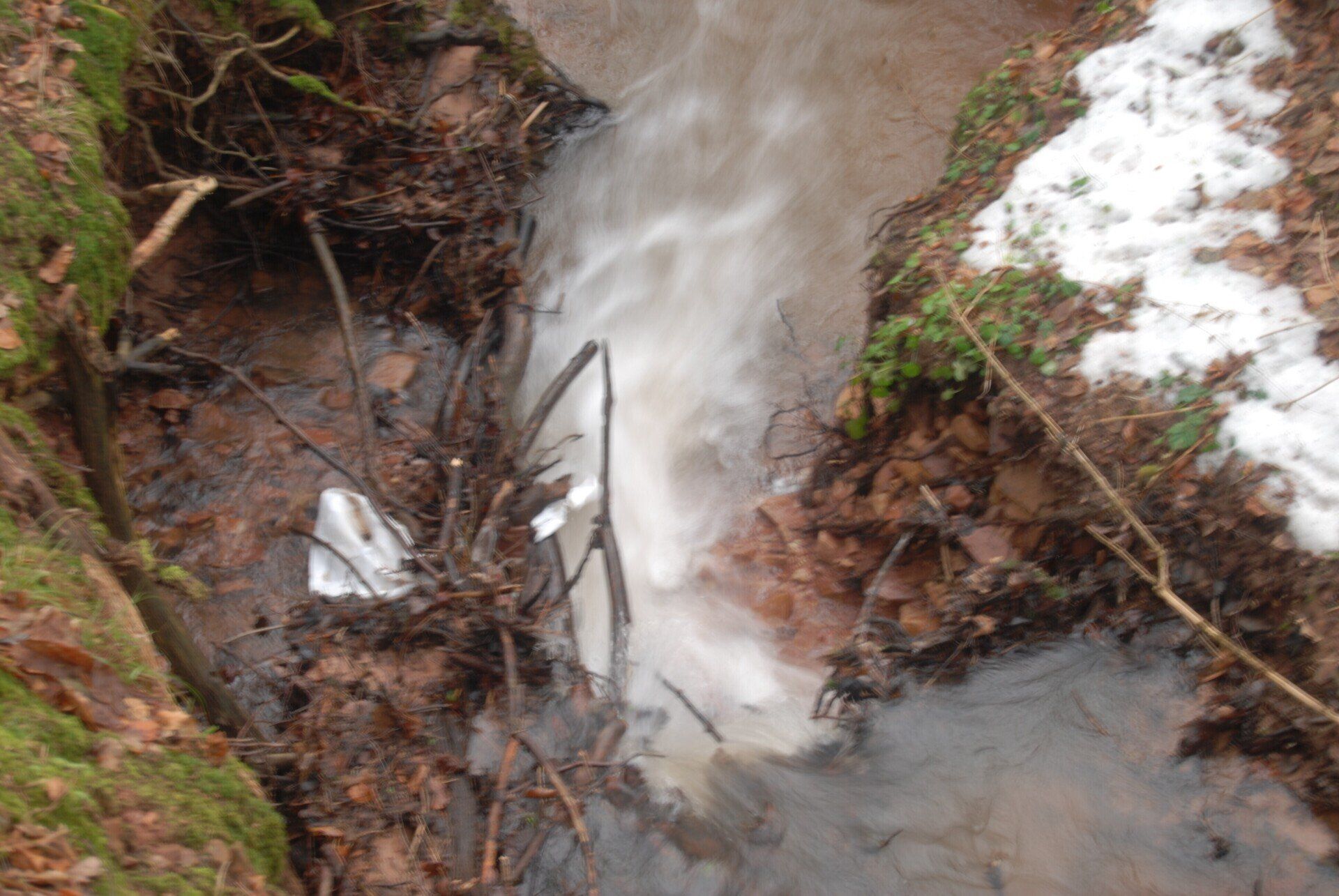 Er hat hier zwei Durchflüsse unter den Waldweg.