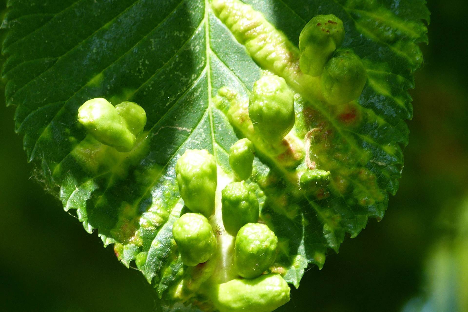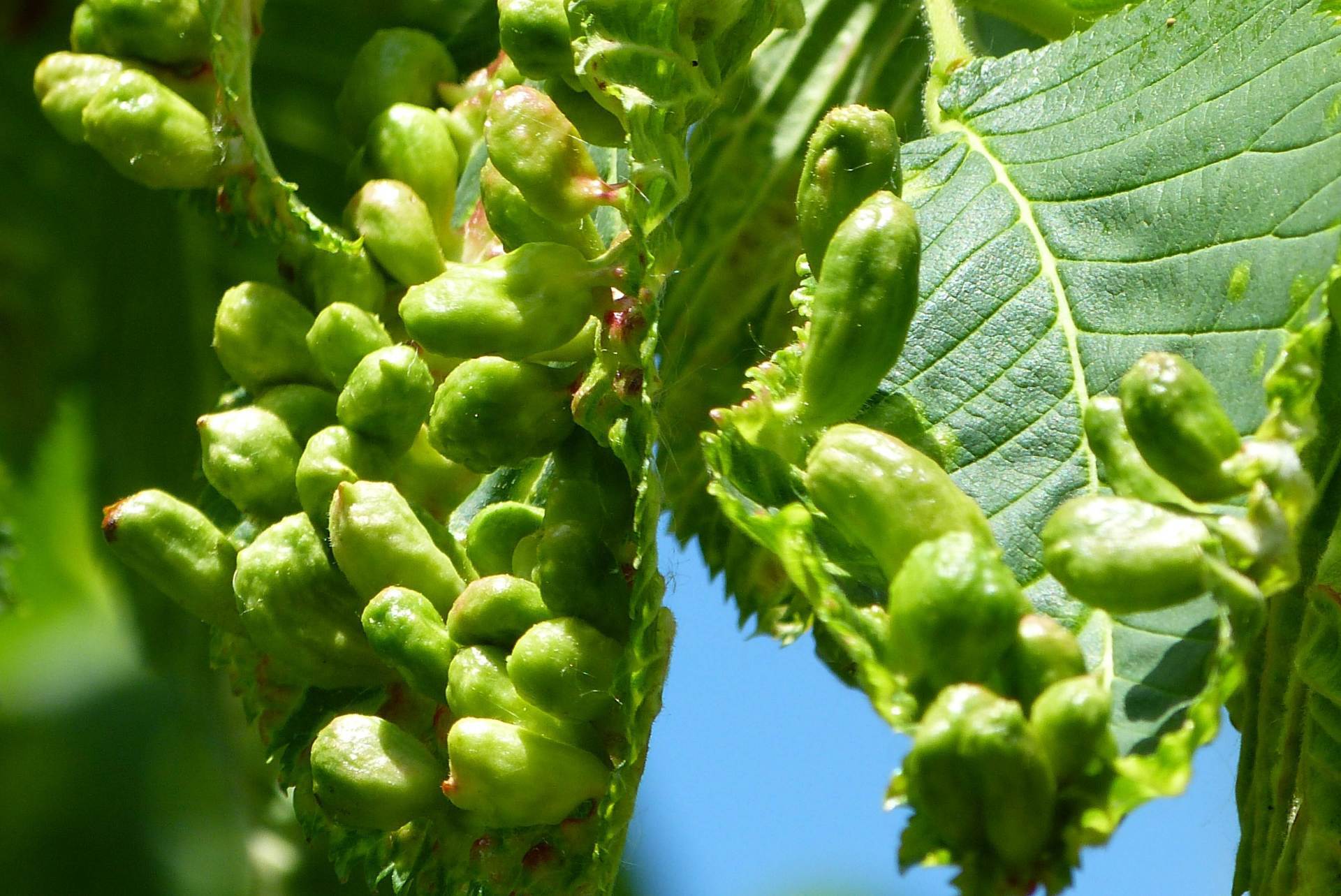In diesem jahr waren sehr viele Laubbäume voller Parasieten die Gallen.Gallen werden häufig durch Gallmilben verursacht. Befallen werden die Blätter der Bäume, seltener die Knospen, Triebe, Blüten oder Zweige. Die entstehenden Verformungen des Blattes sehen nicht schön aus sind aber für den Baum ungefährlich. Neben den Gallmilben gibt es noch andere Gallenerreger z. B. die Gallwespe.