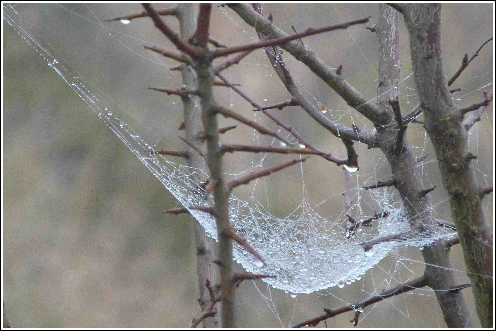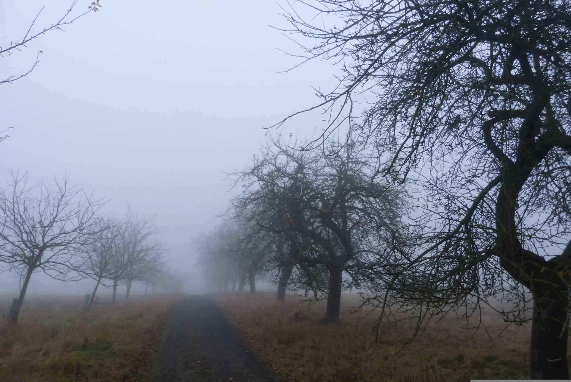 Dann ging's wieder durch die feuchte Benetzung der NebelSpinnenNetze hoch zum Rundweg dem an der Ostseite, in der Nähe der Abbruchkante der dramatischen. Kaum Töne waren zu hören. Wattemäßig schwang der fast lautlose Ton umher. Still war sein Nachbar. Auch die Mineralien und die Moleküle und die Atome sind Töne. Das Weltall singt sozusagen. Eisen hat einen Ton. Zink hat einen. Auch die Atome der Hölzer haben Töne. Und wann sind Töne Licht und wann wird Licht zu Tönen. Das ist abhängig von der Intensität der Schnelligkeiten. Langsam wird zu Ton und schneller wird zu Licht. Aber heute war BenebelLicht angesagt.