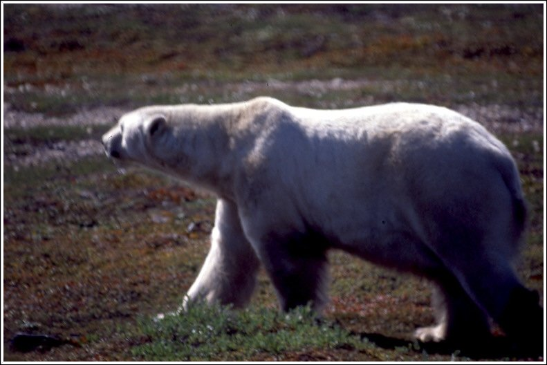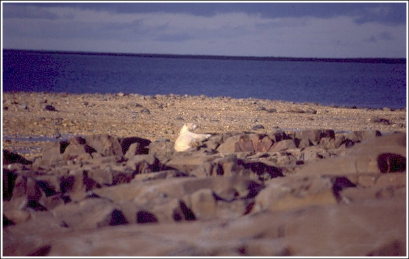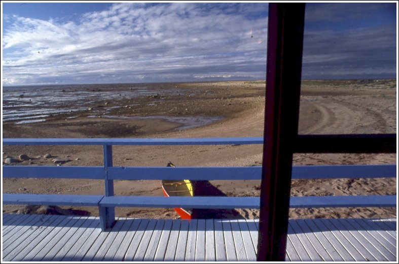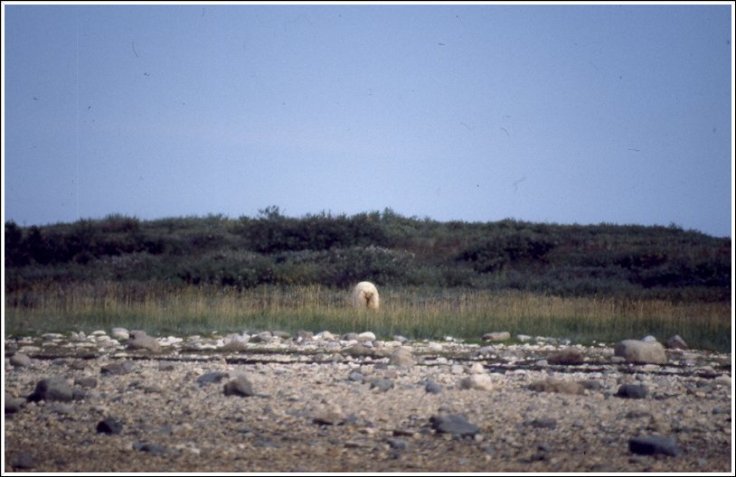Der August 1991 war noch heiß. Aber die Winde wurde heftiger. An manchen Morgen war es sehr stürmisch. Während ich durch Churchill wanderte ging ich zu den Stellen wo ich meine Verkaufszettel angebracht hatte und strich Gewehr aus. In der Bücherei sprach mich dann jemand auf die Nikon an die ich mit mir hatte. Wir hatten ein langes Gespräch. Wir verabredeten uns für den nächsten Tag um die Küste abzufahren und Polar Bears zu fotografieren.