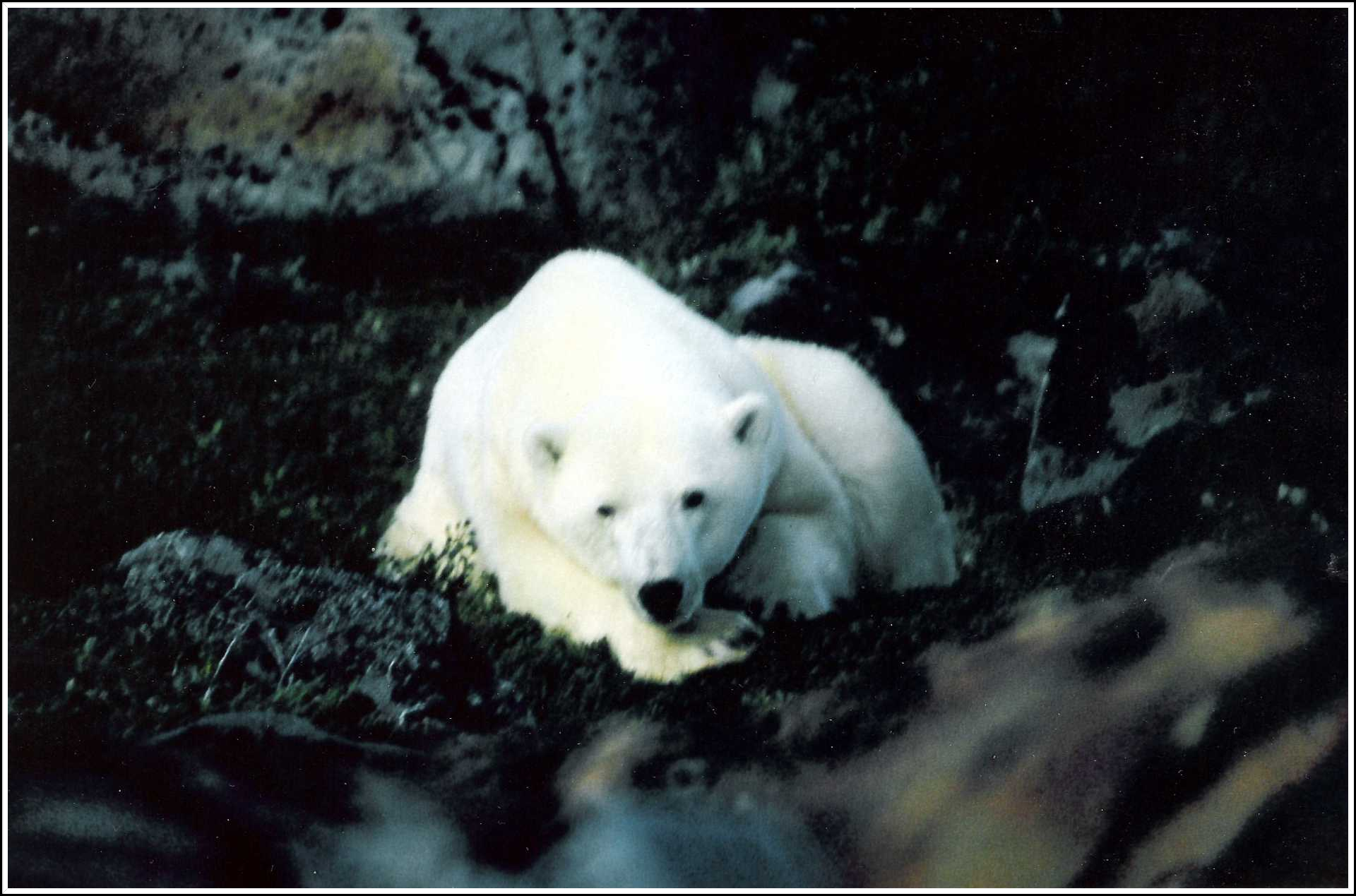Dieses obige Foto mit dem Eisbär war der Erfolg für die beiden deutschen Biologie Studenten. Ich fuhr sie am späten Nachmittag zum Wrack und es lagen zwei Eisbären in der Nähe. Die sehr aufmerksam waren. Als wir sie uns etwas näher ansehen wollten stand einer auf und ging mit Tempoverschnellerung auf uns drei zu. Das war dann die Erfahrung der beiden Studenten mit Eisbären. Sie fuhren am folgenden morgen weiter. Ach ja das Girl das mein Zelt kaufen wollte war auch noch dabei. Das nervöse unsichere Girl. Sie war sehr ängstlich. Denn der Eisbär nahm Tempo auf und so waren wir bald wieder im Auto und fuhren zurück zum Beluga Hotel..