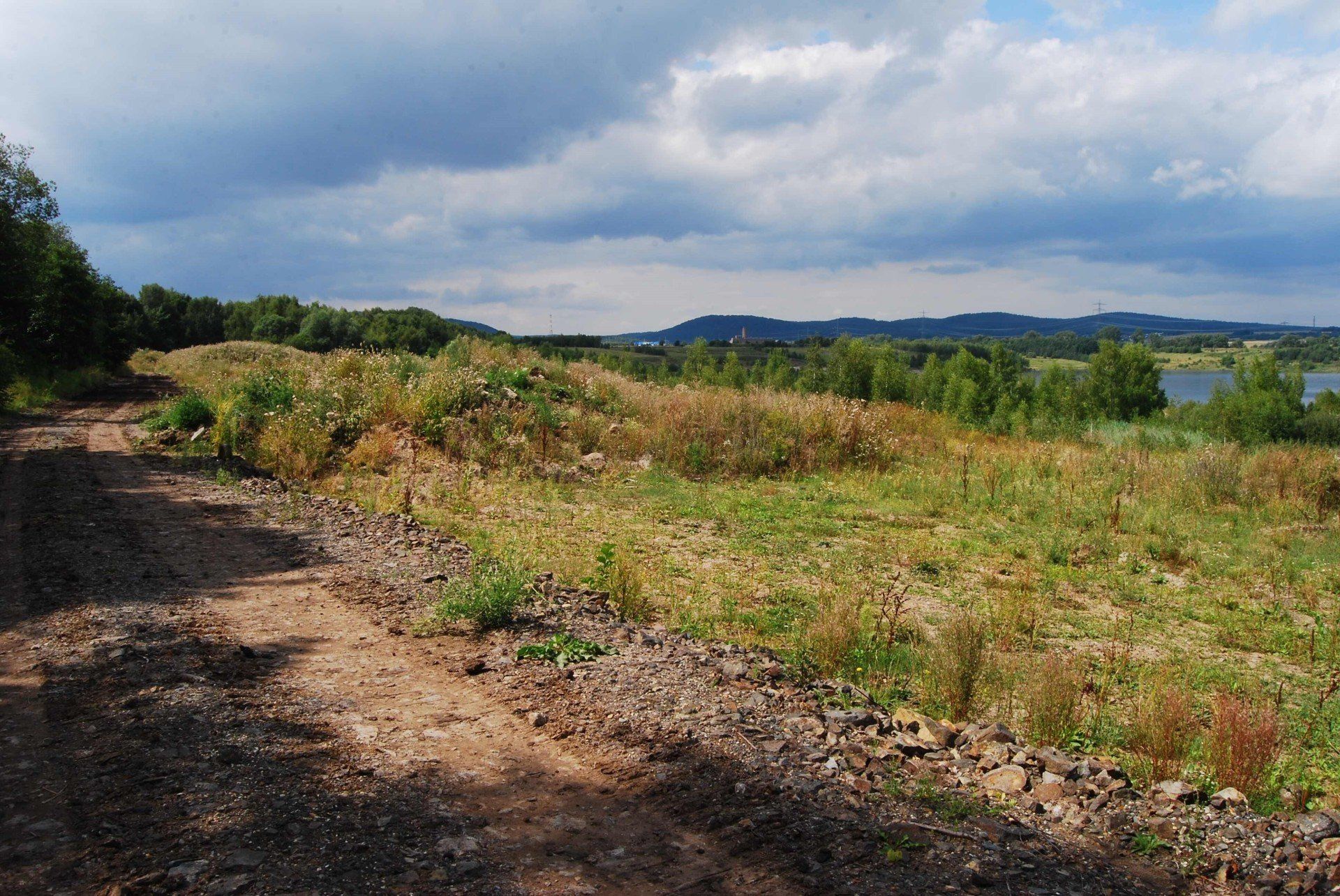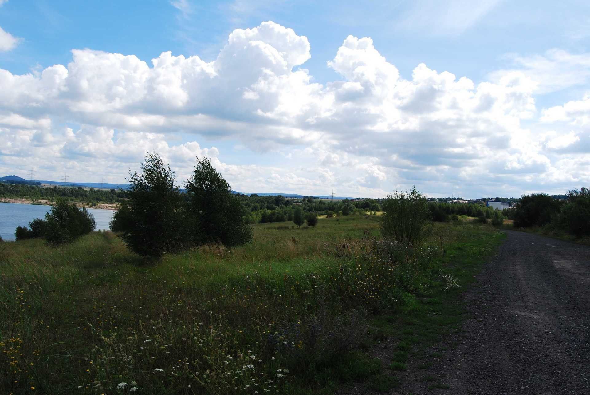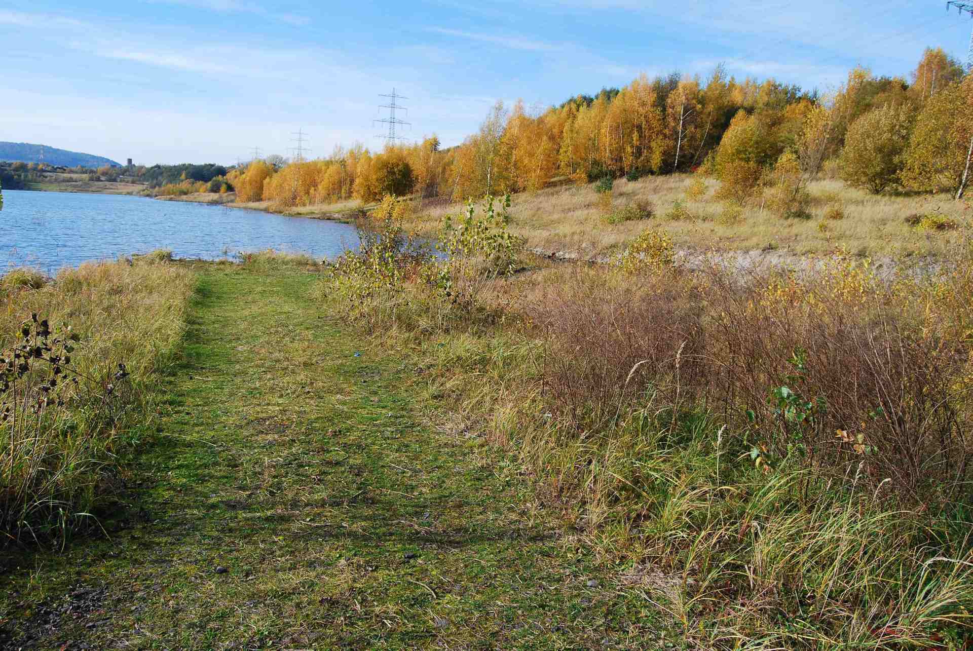 Mit diesem Ausbau hier oben wurde dann endgültig auch der alte Weg um den wachsenden GombethSee verändert.Da am Ende wo der Baumbestand anfängt ging der Weg sonst links unten vor dem Schilf um den See herum. Das wurde alles mit Bauschutt zugeschüttet und nun dieser neue nach oben verlegte Weg gebaut.
