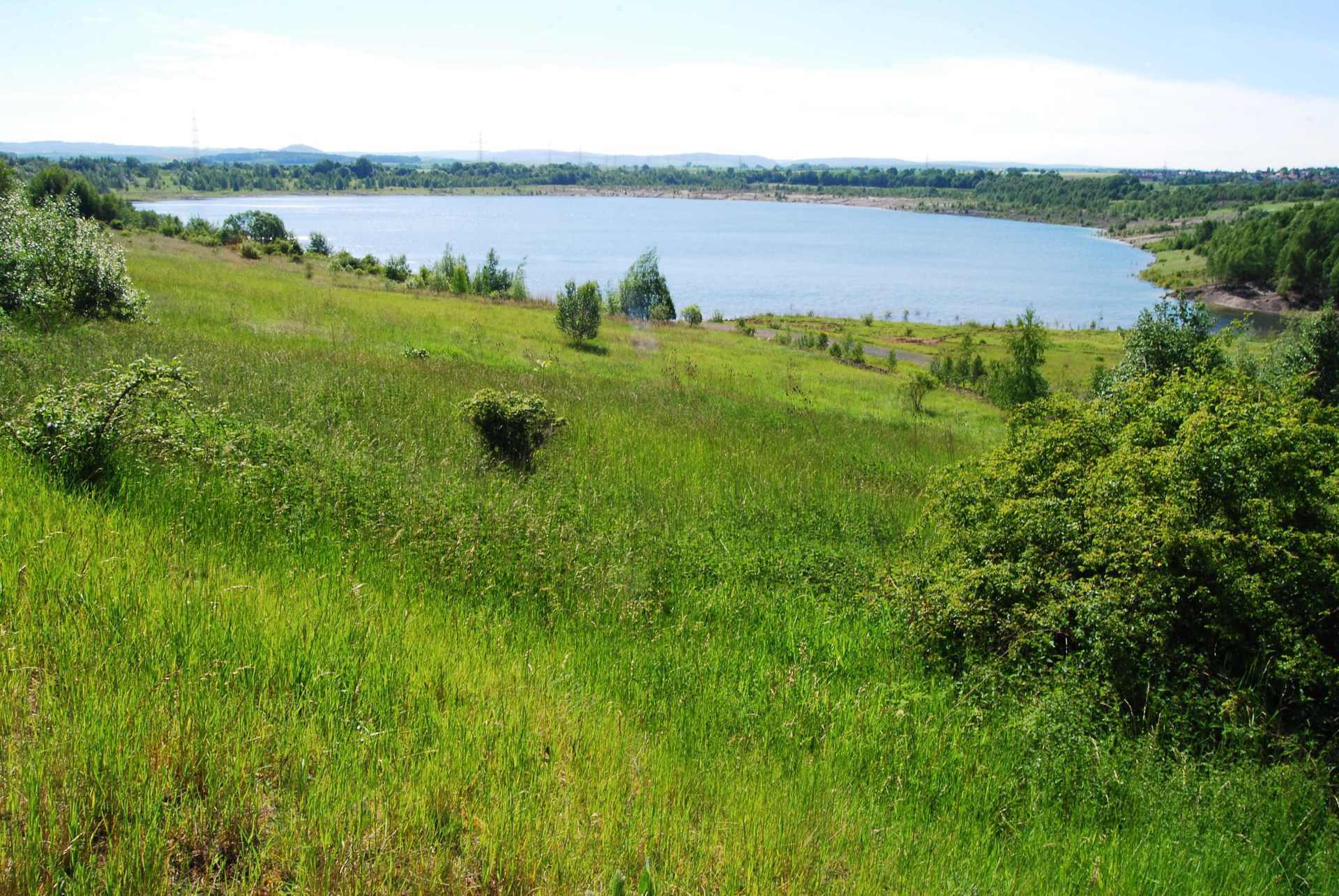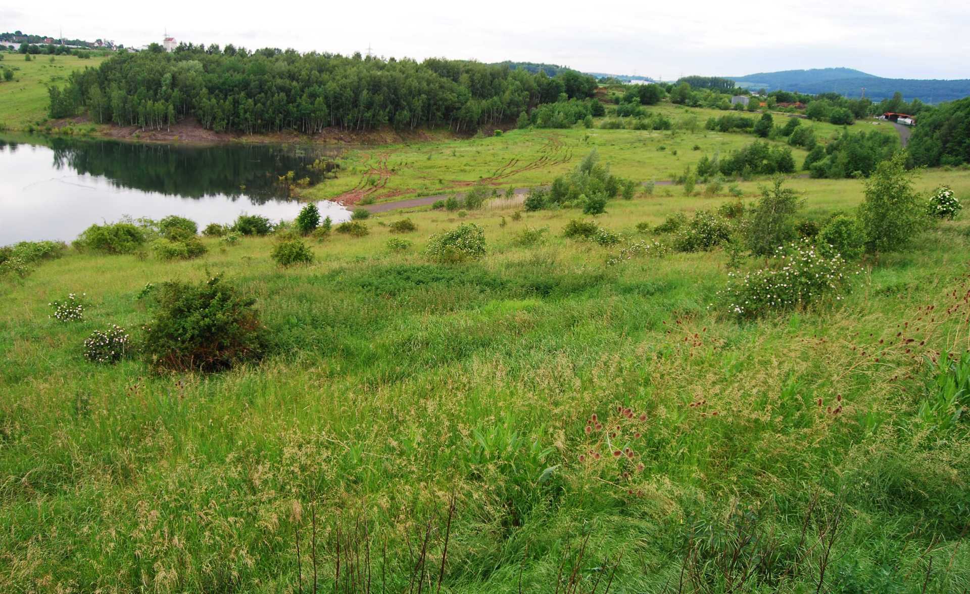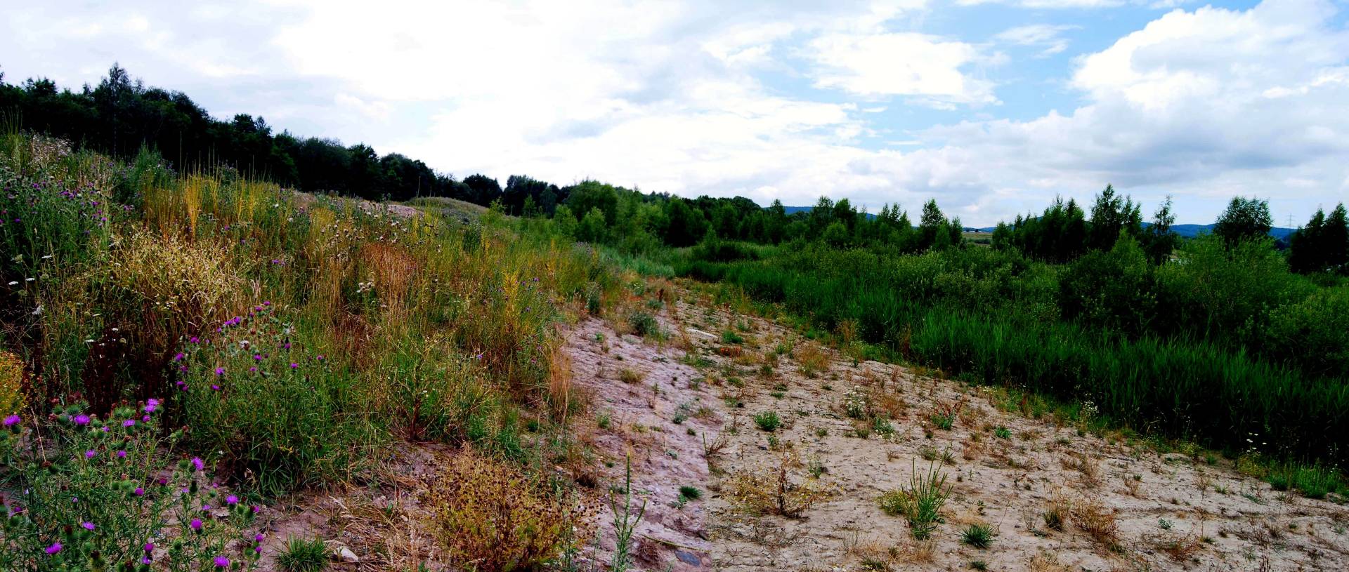 Mit diesem Ausbau hier oben wurde dann endgültig auch der alte Weg um den wachsenden GombethSee verändert.Da am Ende wo der Baumbestand anfängt ging der Weg sonst links unten vor dem Schilf um den See herum. Das wurde alles mit Bauschutt zugeschüttet und nun dieser neue nach oben verlegte Weg gebaut.