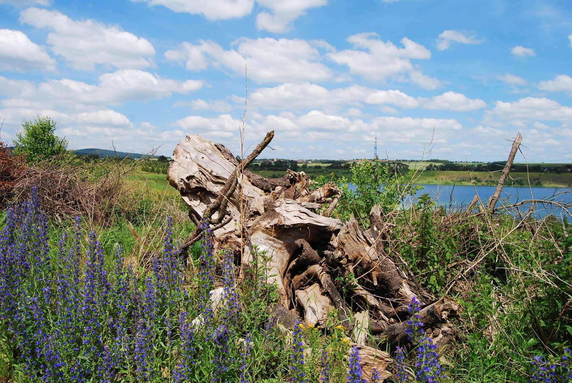 Hier rechts unten verlief der alte Weg um den wachsenden See.Das wurde aber alles mit Erde zugeschüttet und dieser Hang gebaut als Schutz gegen den kommenden Druck des Wassers wenn der See diesen Bereich erreicht hat.