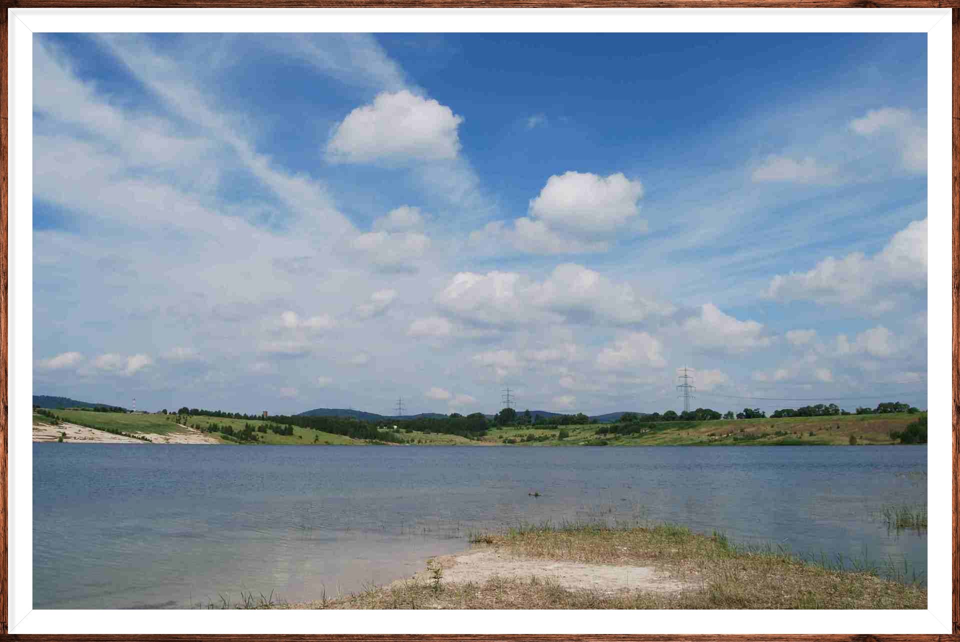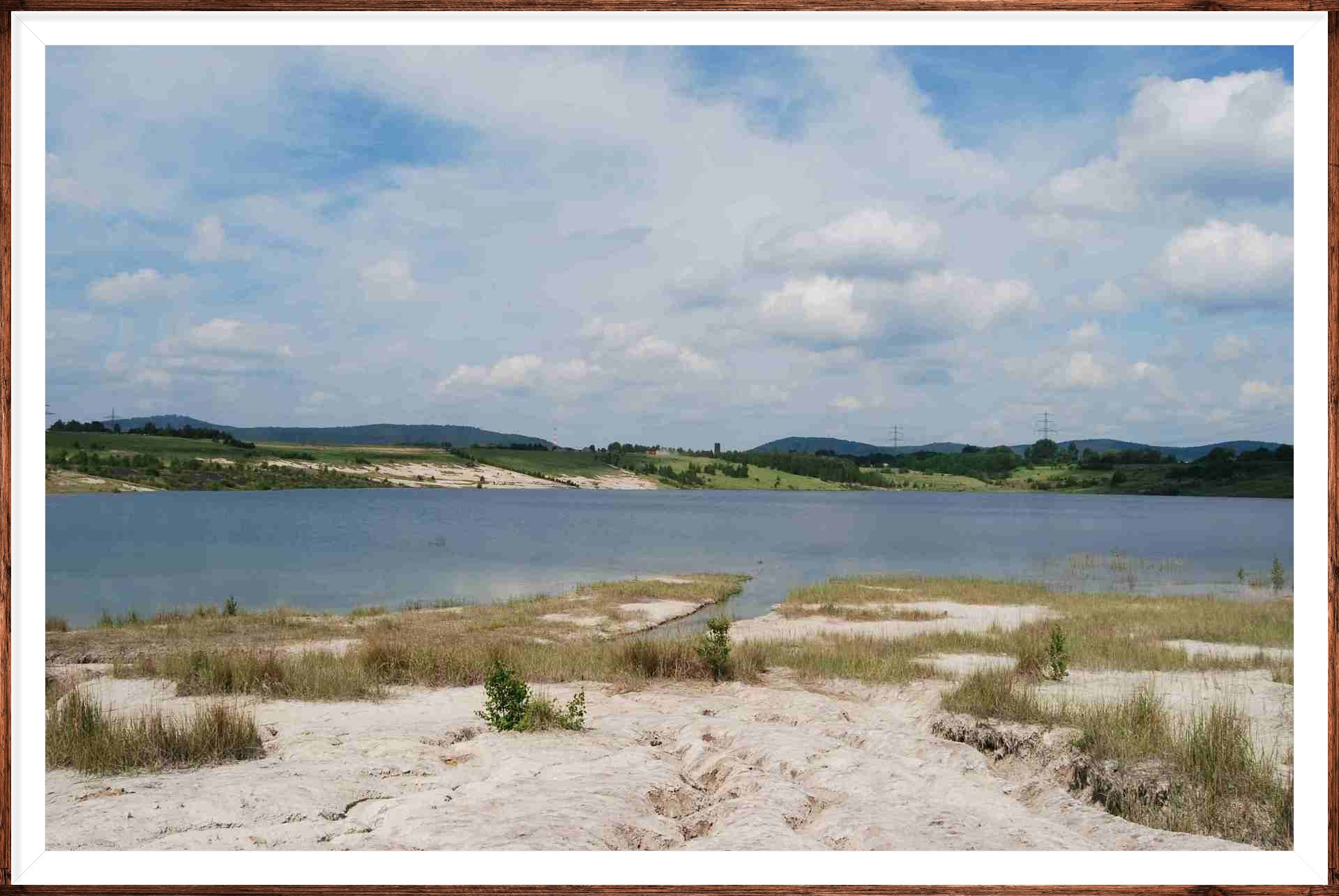 Der Blick von der Straße neben der Schwalm über den See nach Borken in NordHessen, im Mai 2008. Hauptsächliche Grasflächen und unten auf diese Straße die Haupt Toilette der Kaninchen. Bis heute sind die fast alle weg, heute 12.9.19, denn der See sieht viel größer, viel tiefer,aus.