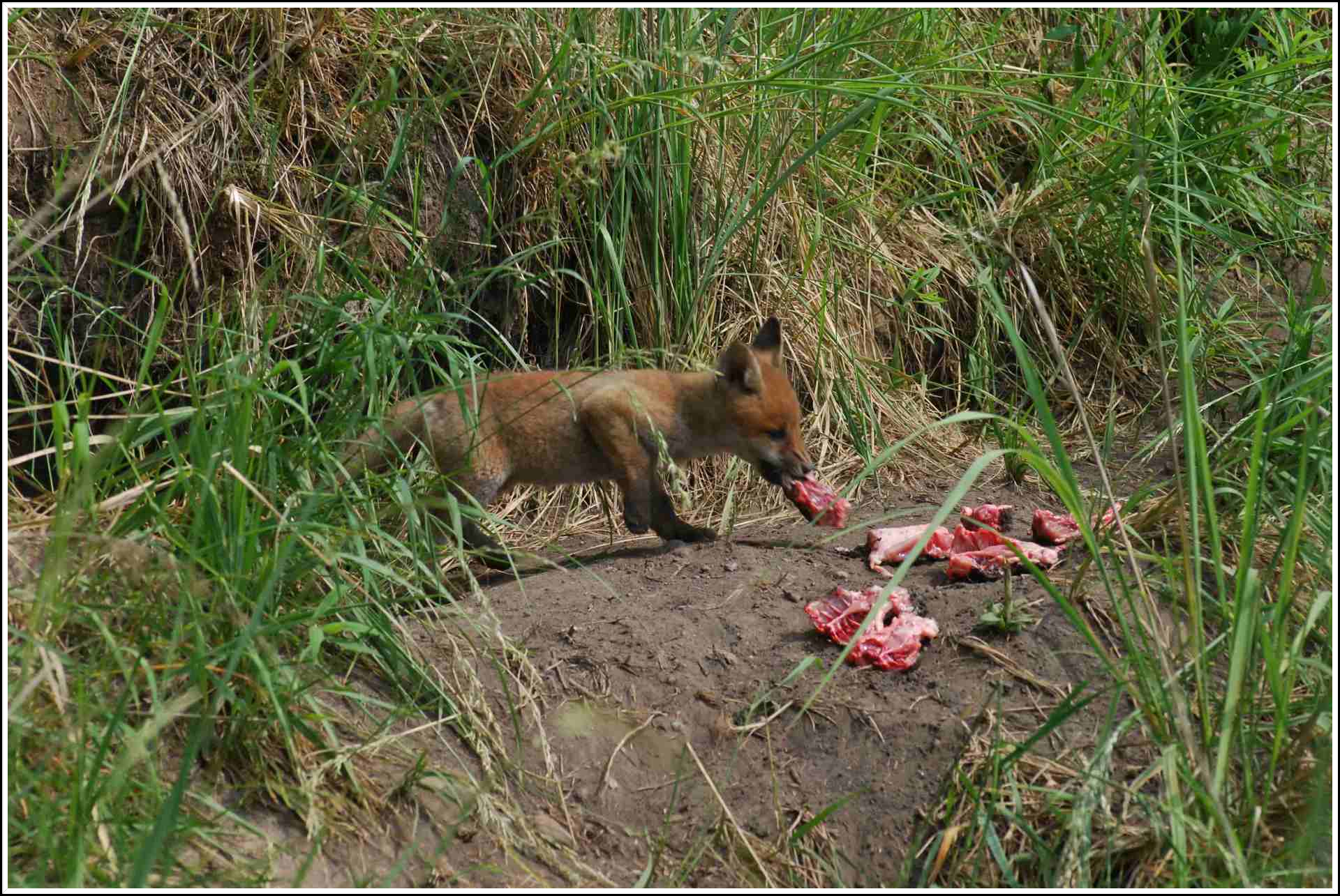 Die Füchse hatten mehrere Bauten. Es gab Jungrehsteaks vom See und Hühnerhälse von Rewe.