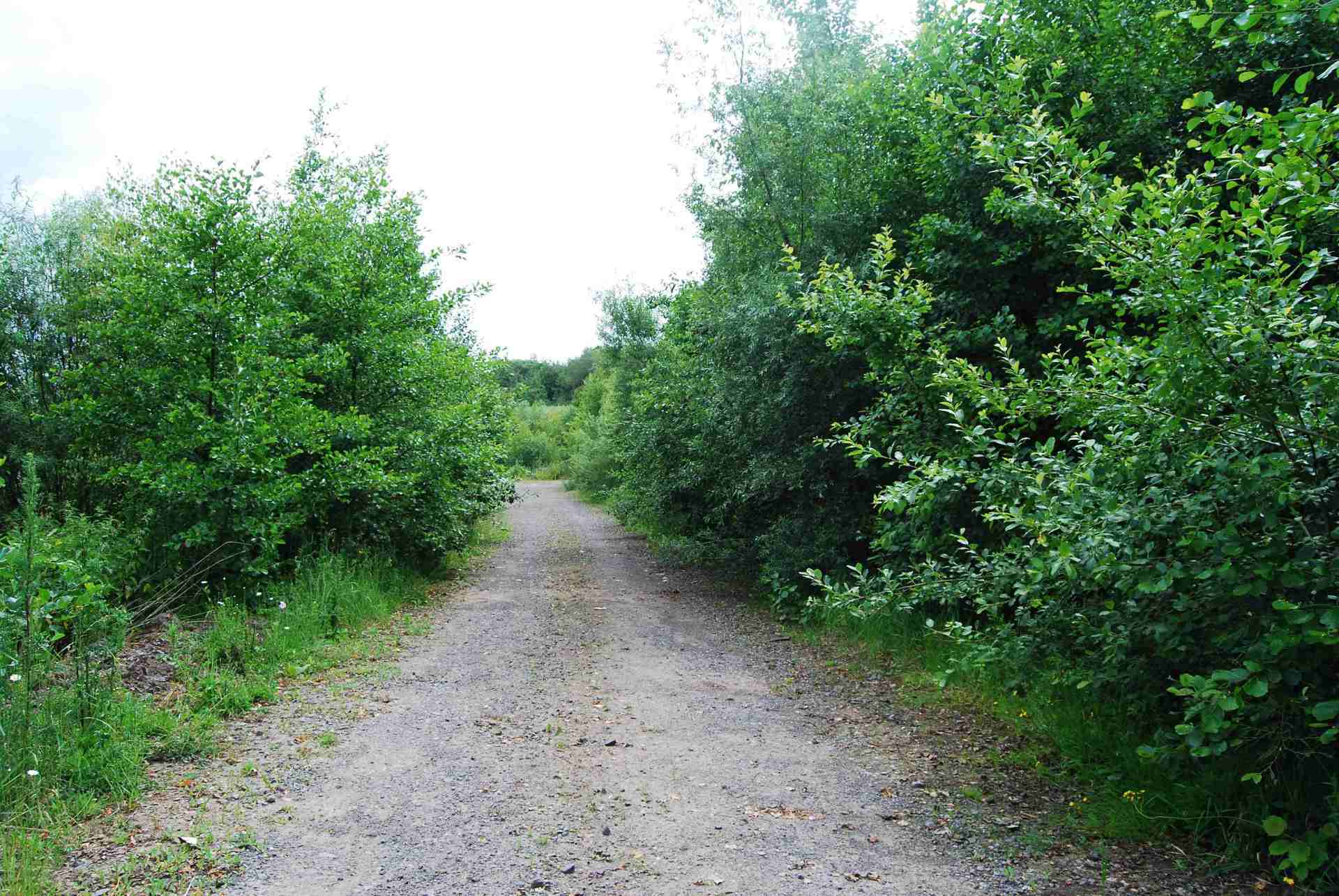Hier ist der Weg entlang der NordSeite des GombethSees. Links fließt die Schwalm und rechts liegt der wachsende GombethSee der KunstSee oder KunschtSee in NordHessen Schwalm Eder Kreis.